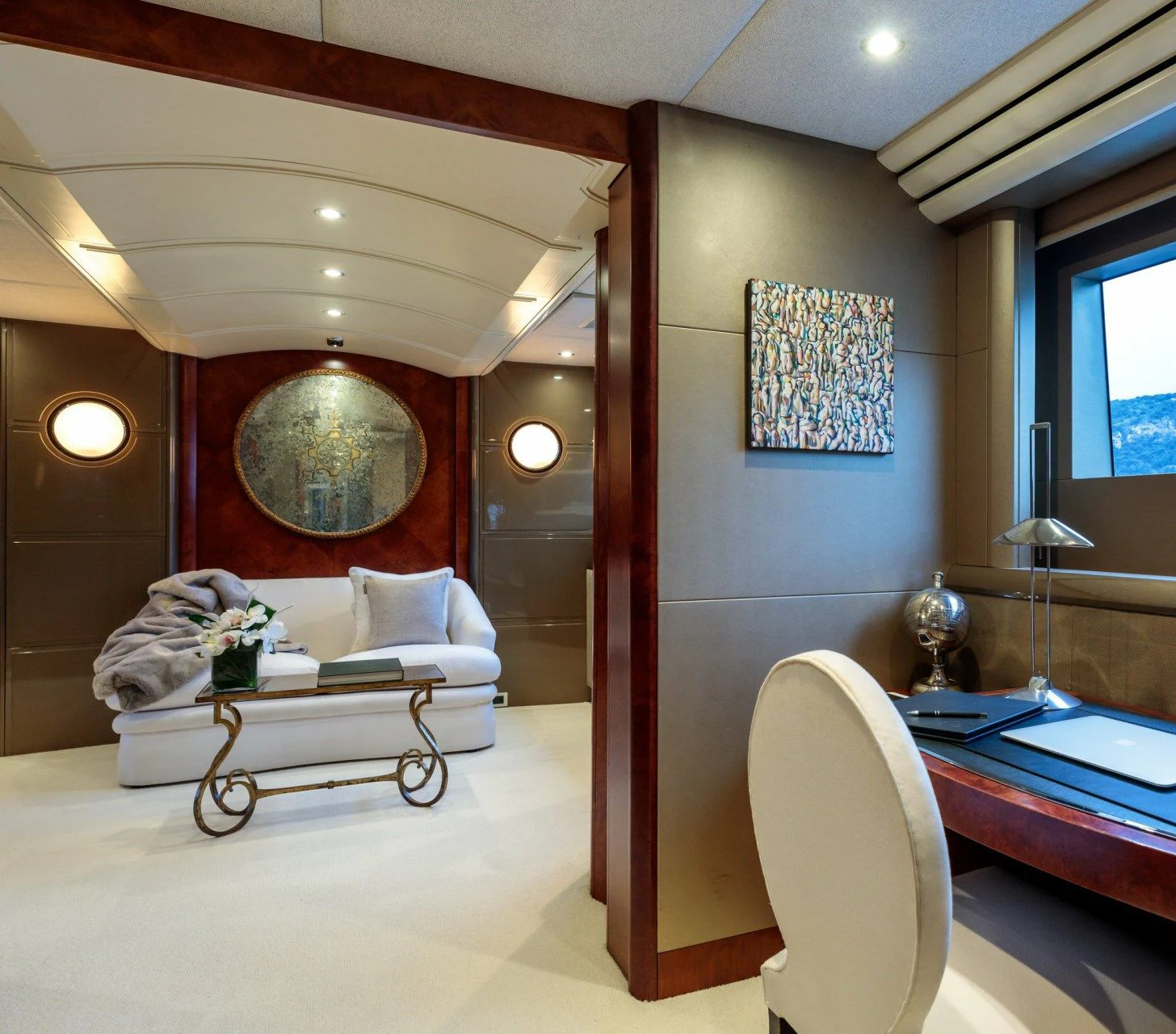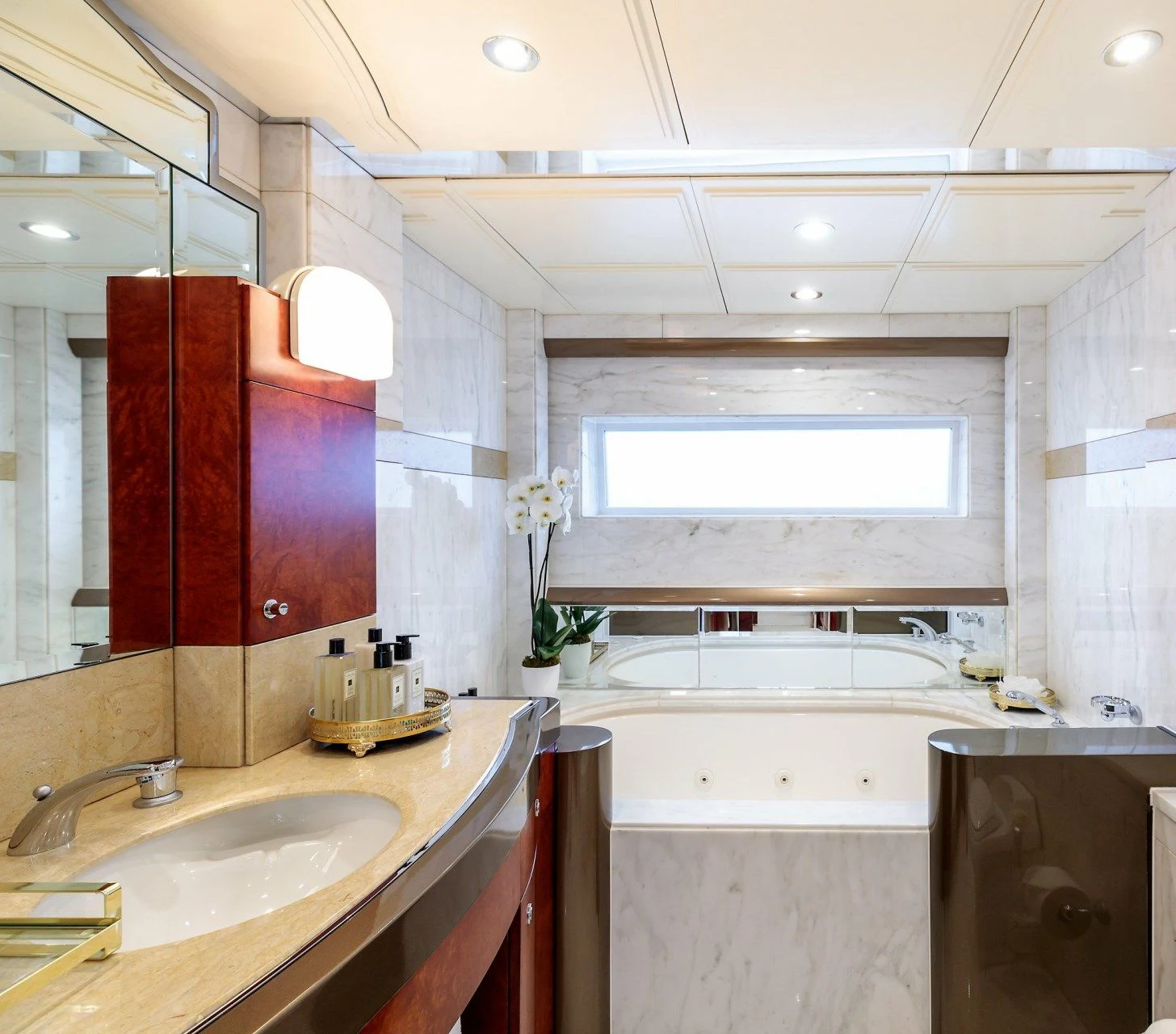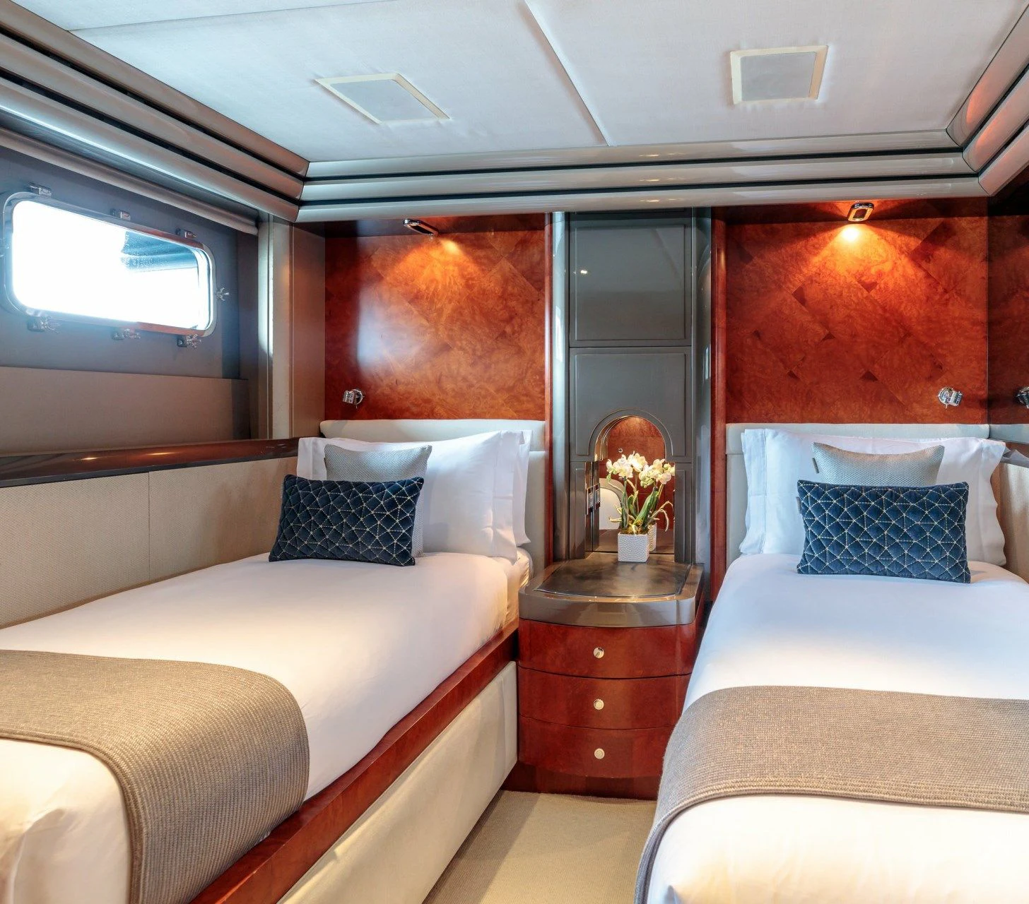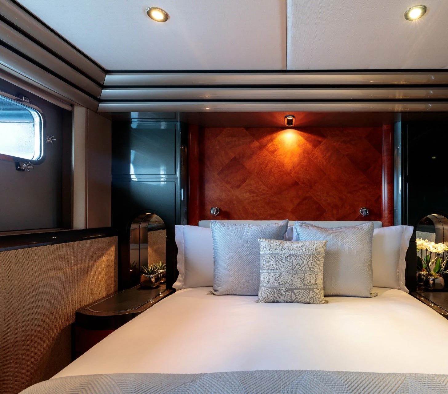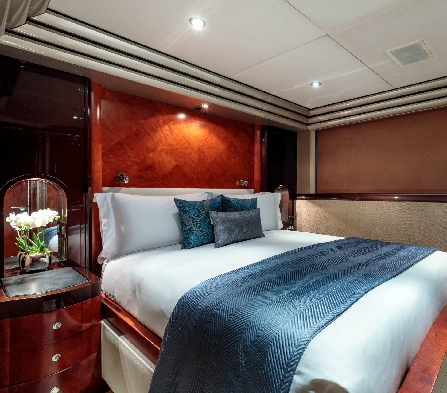From her spacious interior to her well-designed decks, SILVER DREAM has something to offer everyone. She is able to accommodate up to 10 guests in five luxurious staterooms, including a spacious full-beam master suite with private salon, study, dressing room and his-and-her en-suite bathrooms. The additional four guestrooms, two twins and two doubles, can be found below deck.