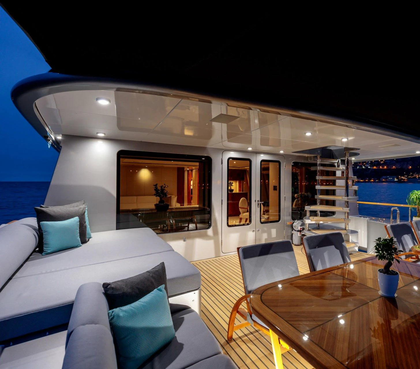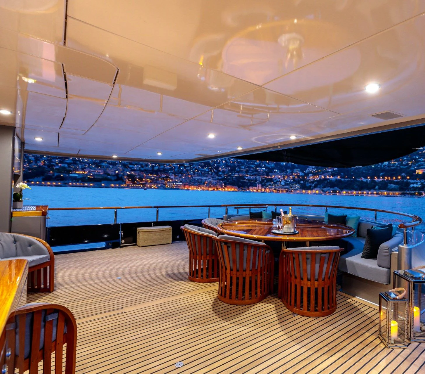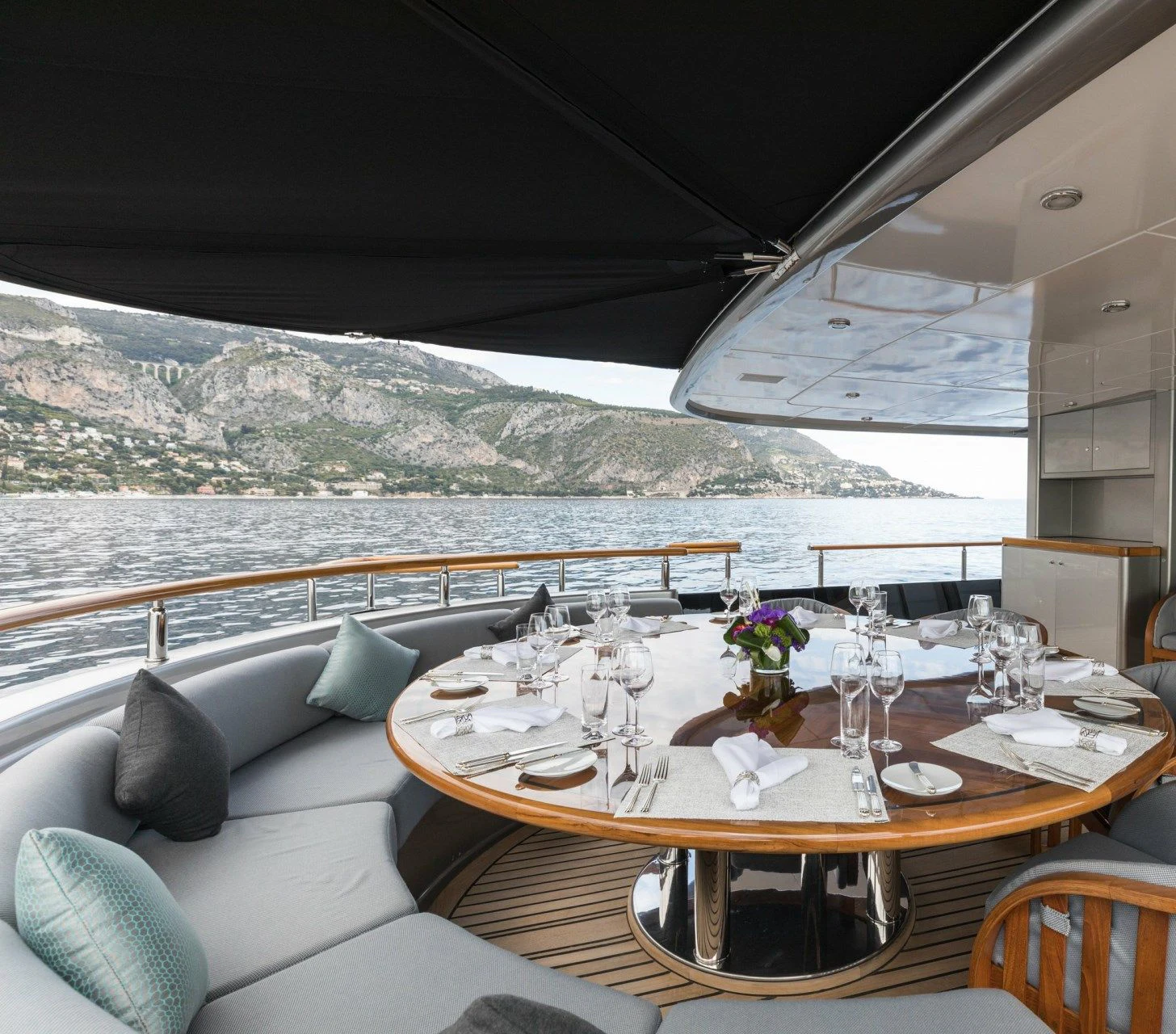Guests will enjoy sunbathing on the airy sundeck or relaxing in the Jacuzzi, located aft. Collapsible parasols are available for shade. Forward of the bridge deck, a double sunpad is the ultimate escape. Alfresco dining can be found on the main deck aft.