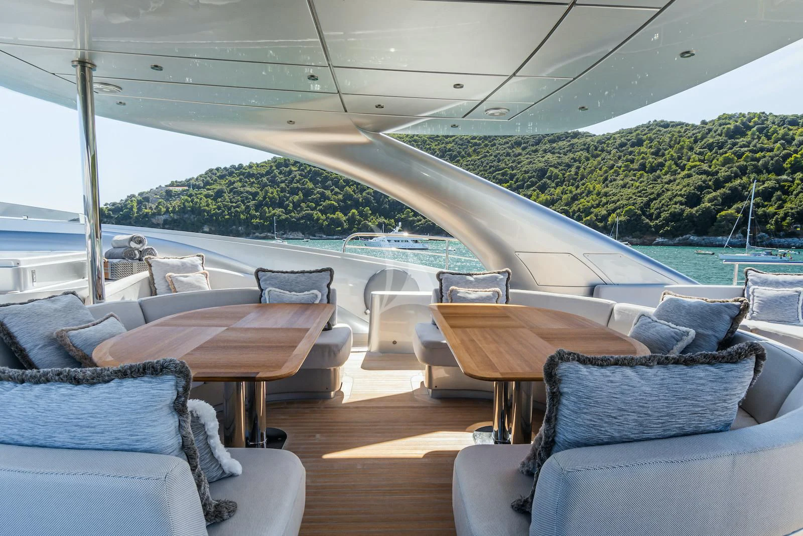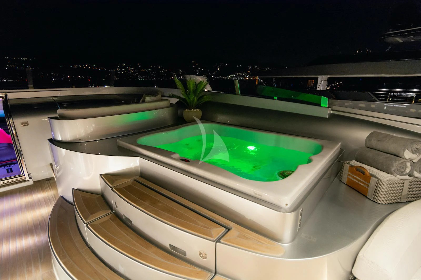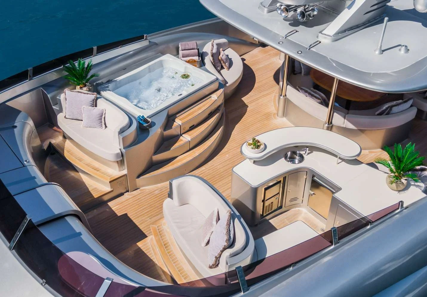 Walnut and rosewood feature throughout the interior, furniture is elegant and comfortable and modern home-entertainment systems meet all the music and movie needs of guests. SILVER WIND has a Jacuzzi on the flybridge and wonderful deck areas.