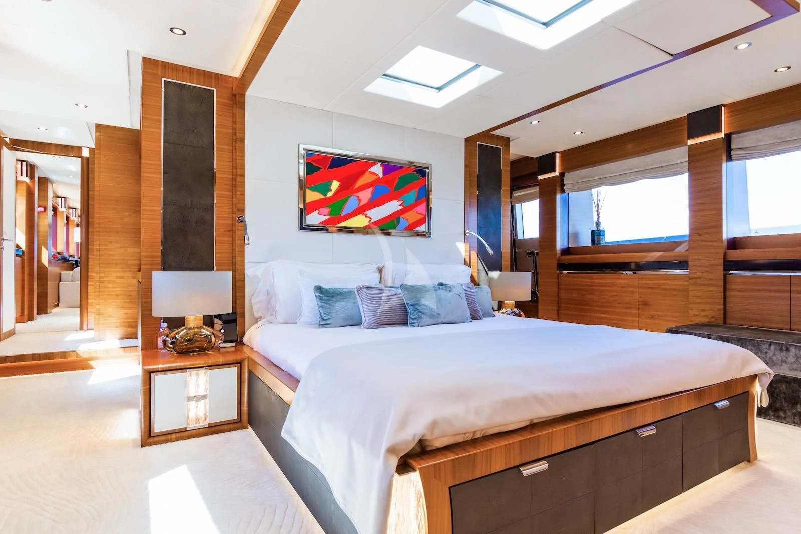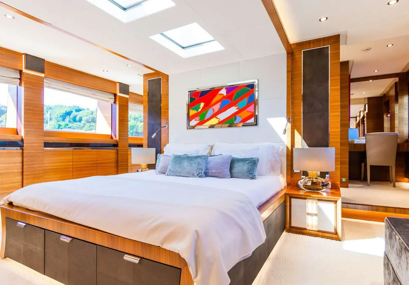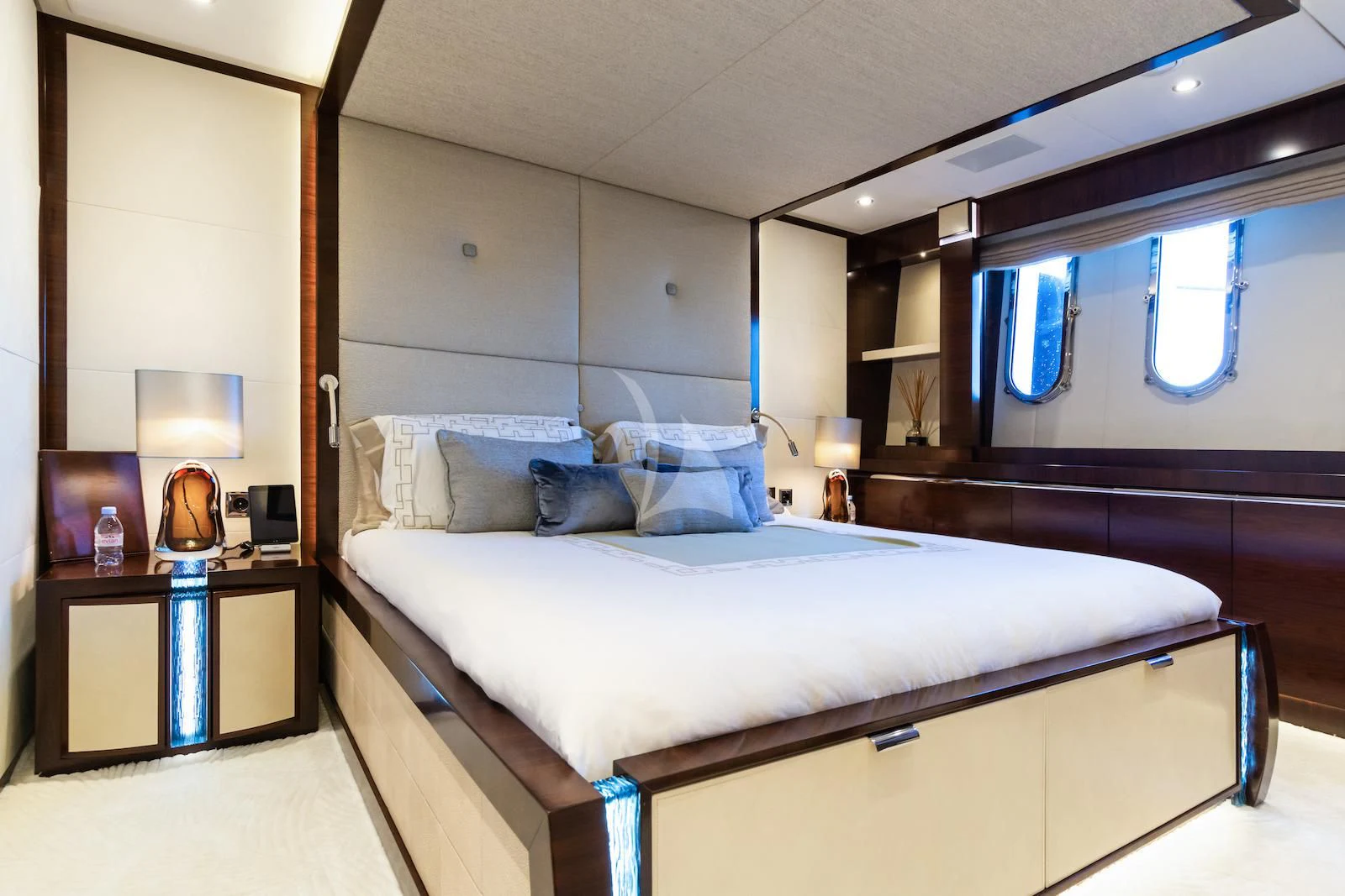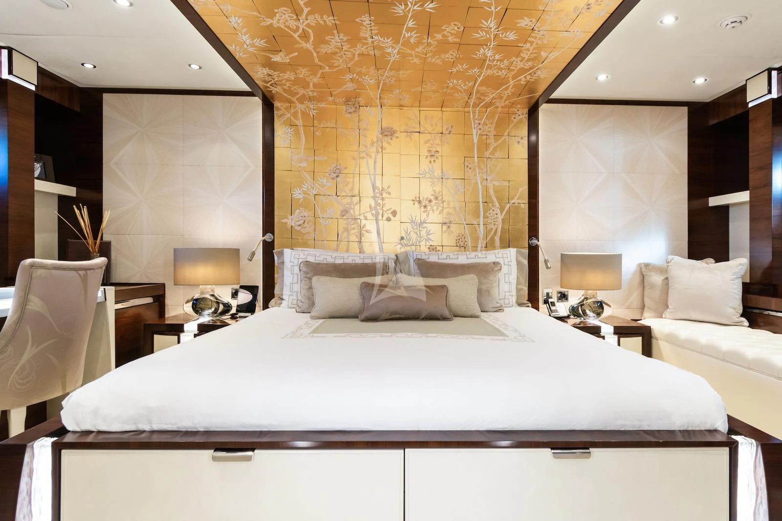 Guests are accommodated in a master stateroom on the main deck, a VIP stateroom on the lower deck and two double staterooms, also on the lower deck. There is also a convertible stateroom that can be arranged as a twin or double with an extra Pullman berth.