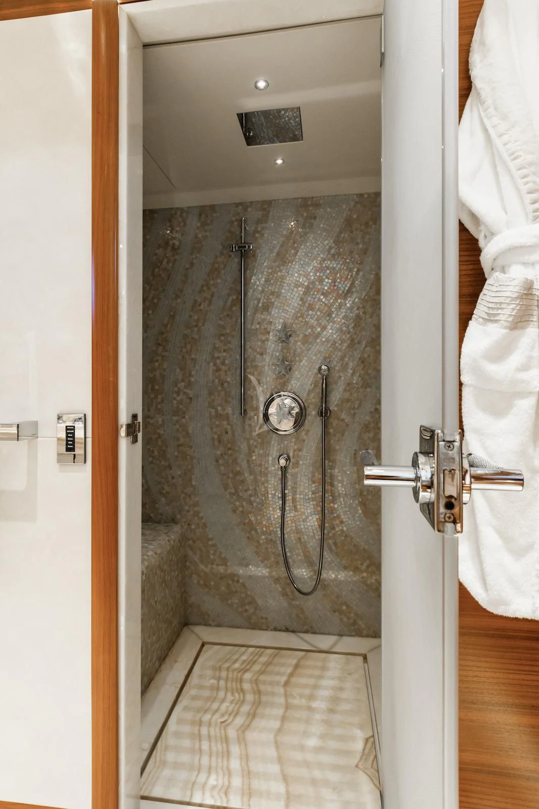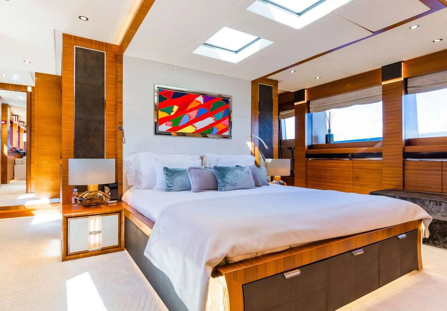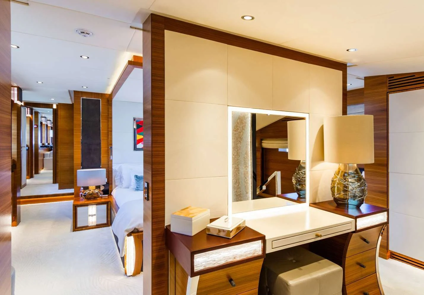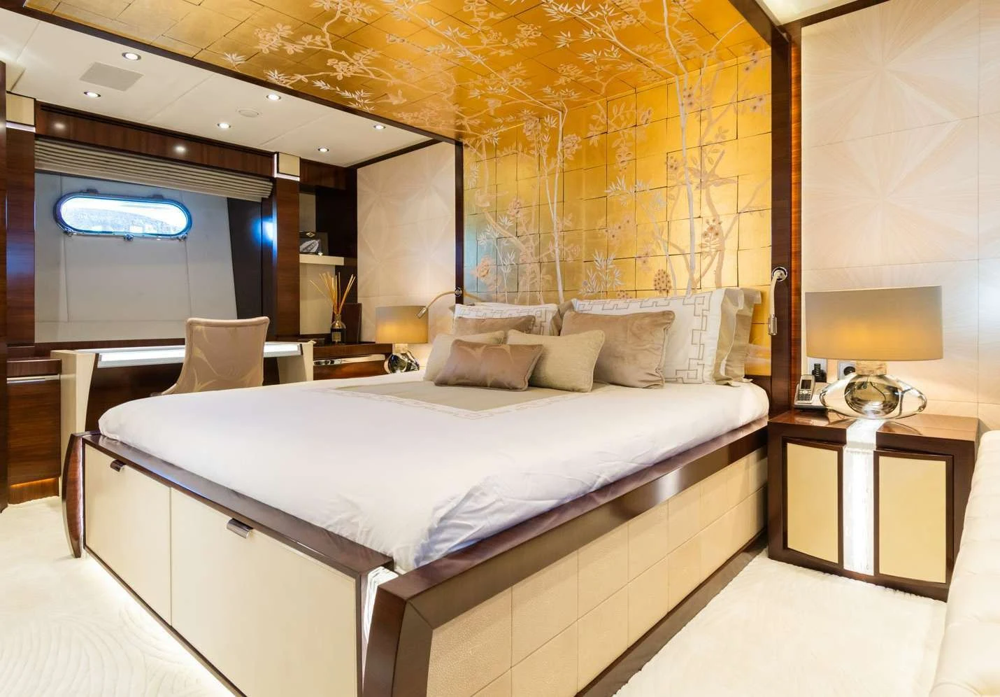 Guests are accommodated in a master stateroom on the main deck, a VIP stateroom on the lower deck and two double staterooms, also on the lower deck. There is also a convertible stateroom that can be arranged as a twin or double with an extra Pullman berth.