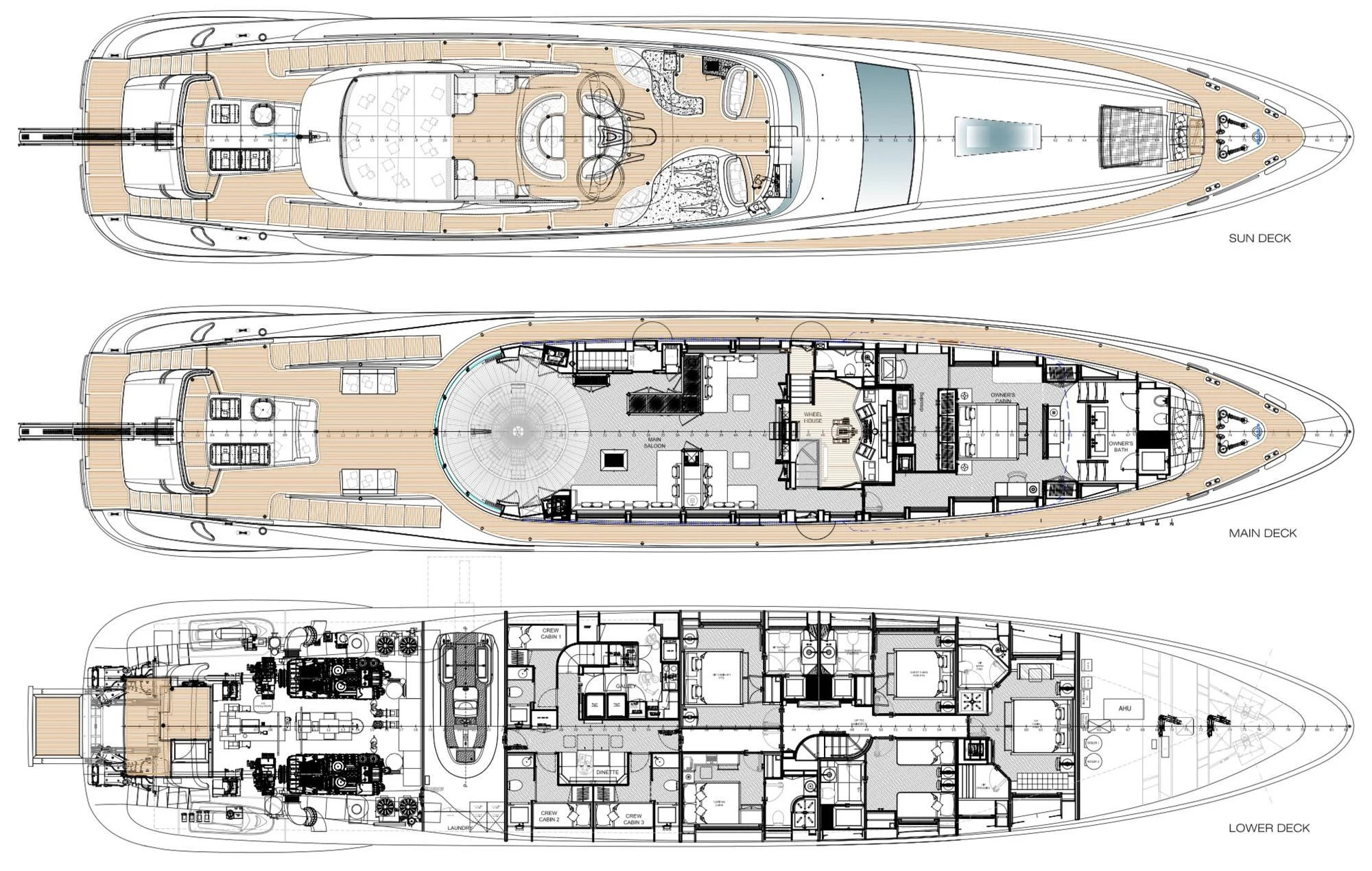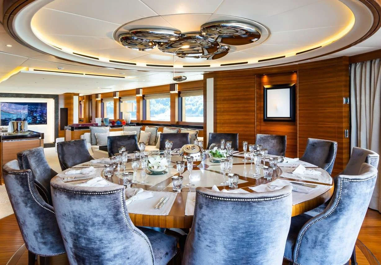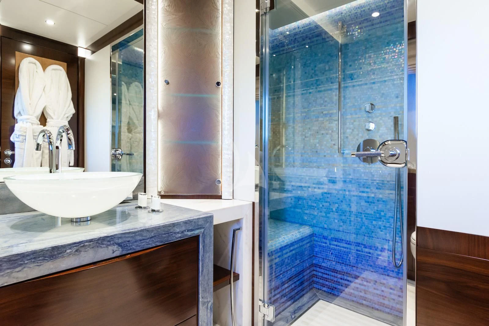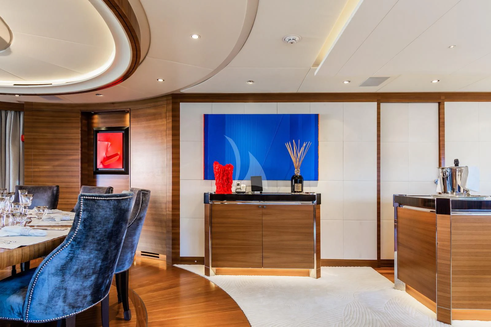 Guests are accommodated in a master stateroom on the main deck, a VIP stateroom on the lower deck and two double staterooms, also on the lower deck. There is also a convertible stateroom that can be arranged as a twin or double with an extra Pullman berth.