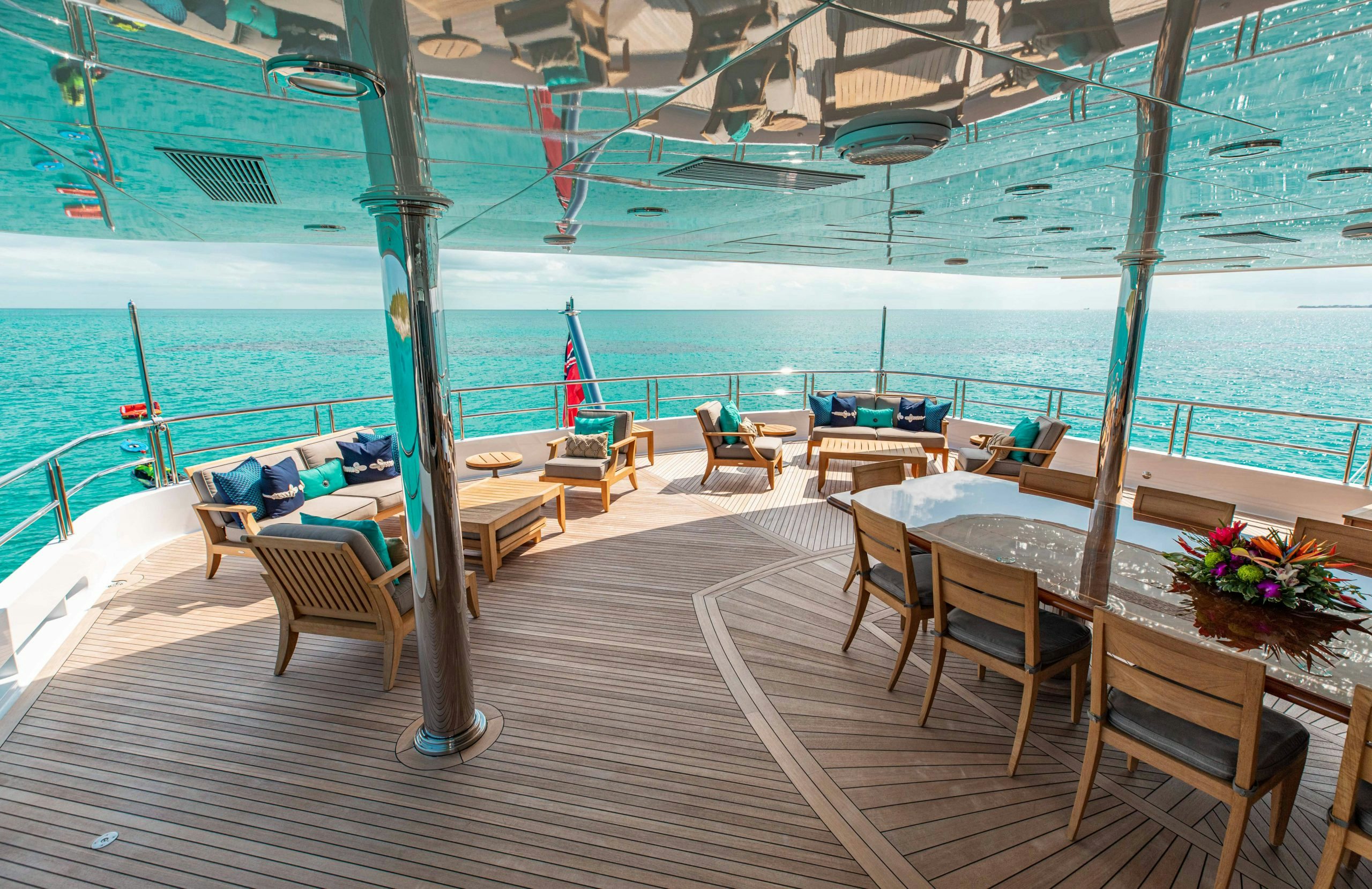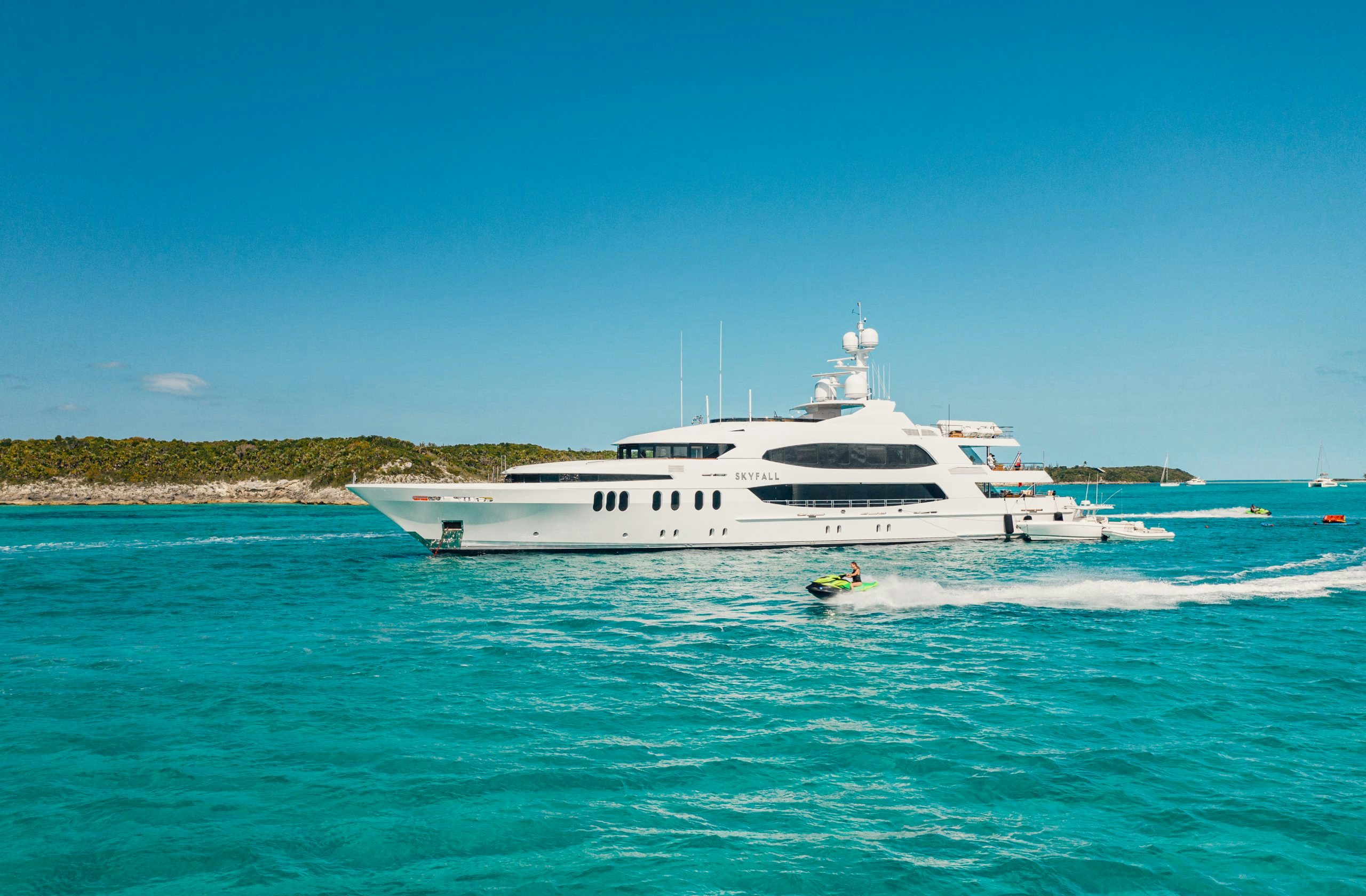 Contemporary styling and a host of luxurious amenities, both on and off the water, make the 190-foot (57m) Trinity charter yacht SKYFALL a top choice for guests seeking the ultimate on-water retreat and a holiday filled with luxury, fun and relaxation.