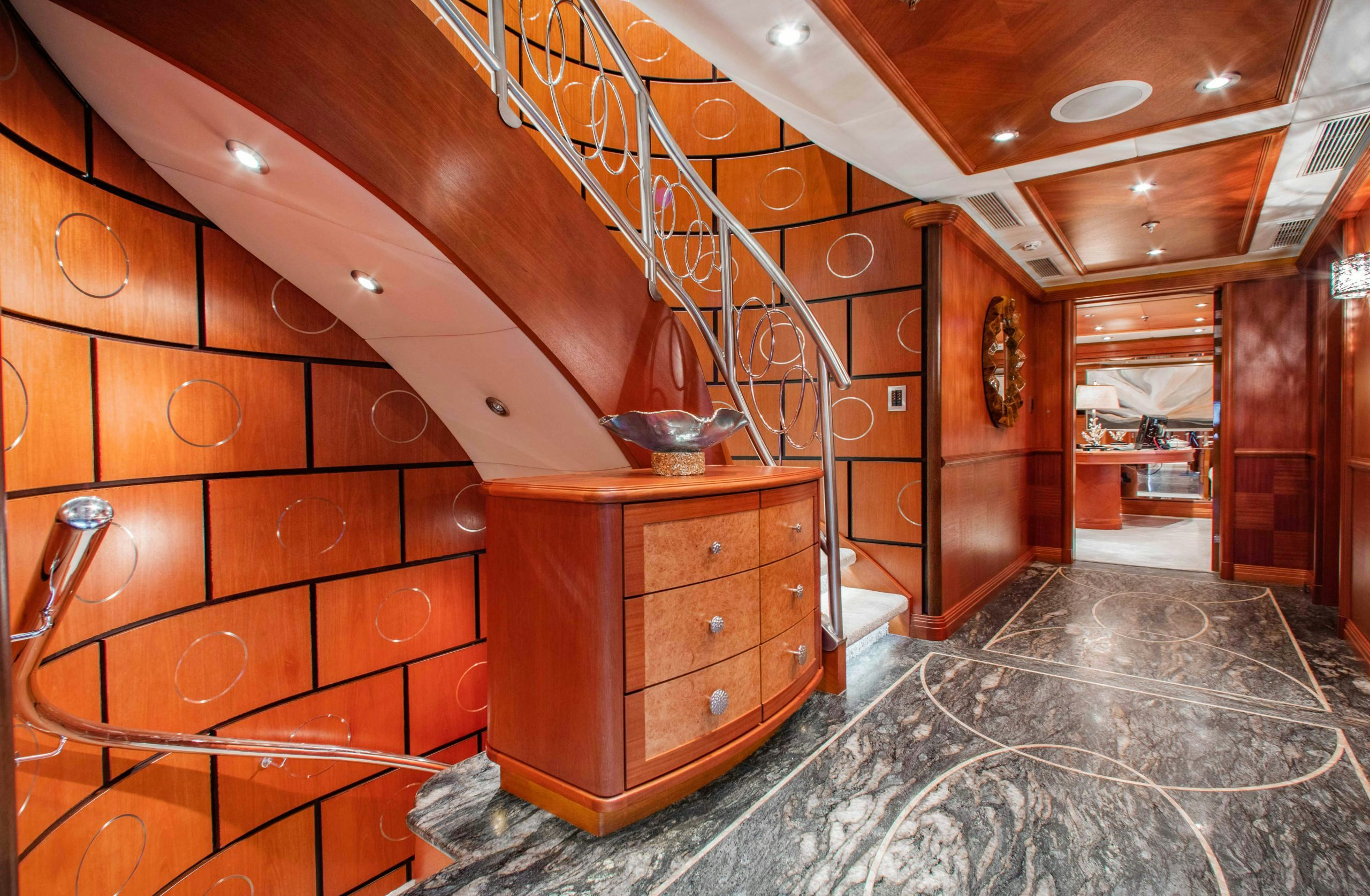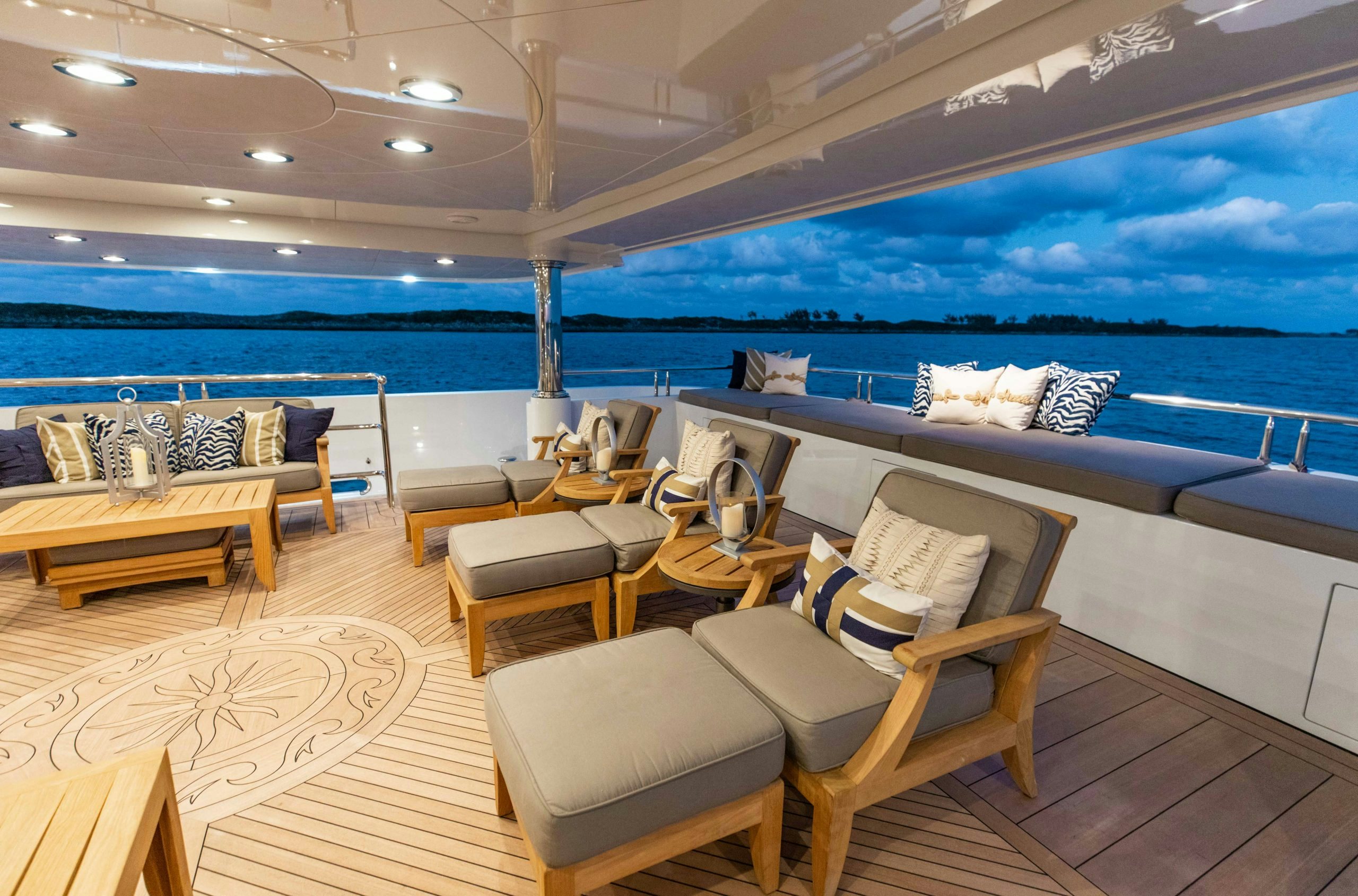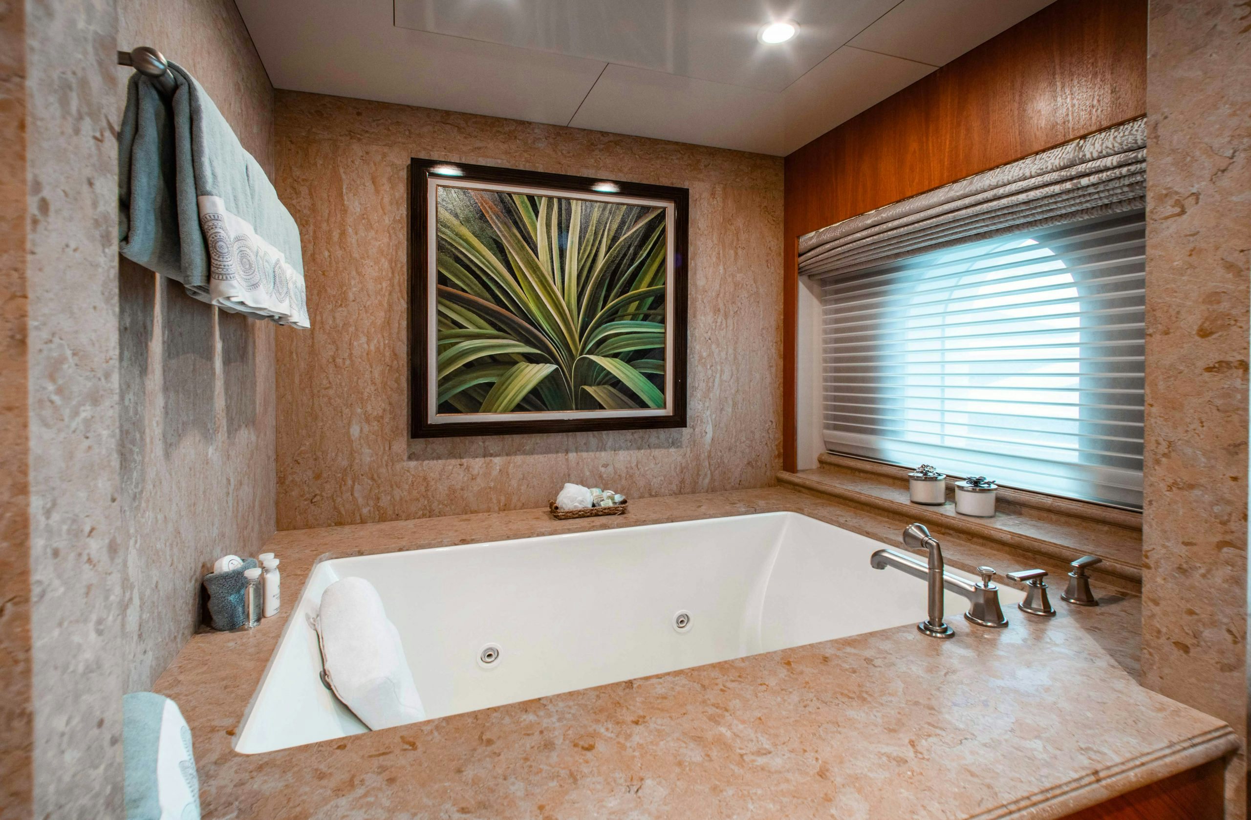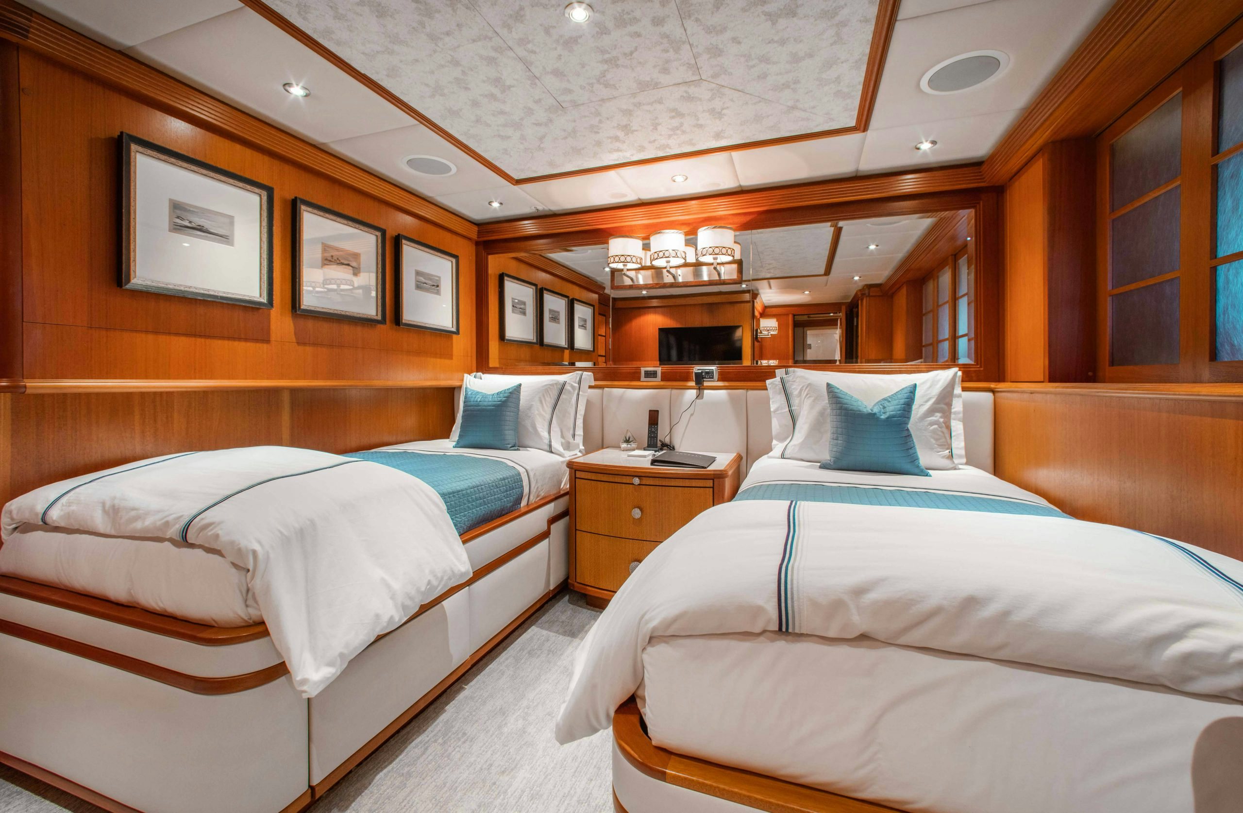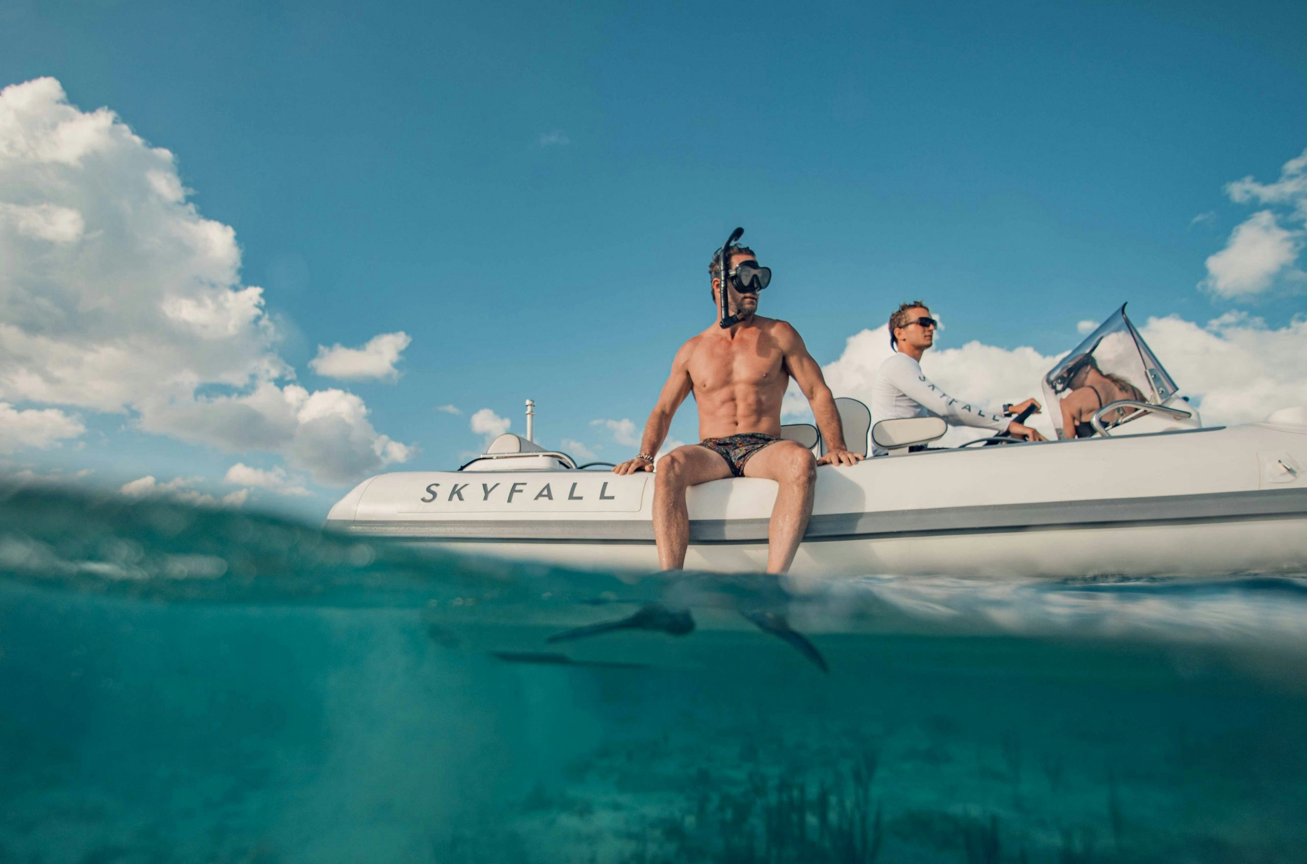 The superyacht features accommodations for 12 guests and is staffed with a five-star crew to ensure everyone aboard has the holiday of a lifetime. SKYFALL has a total of six resplendent staterooms that allow guests to rest up for the next day ahead. SKYFALL’s offers a spectacular split-level master. On the lower level is a lounge, private study and his-and-her en-suite bathrooms with a large shower and Jacuzzi tub. On the upper level is a plush king-size bed where guests will wake up to 270-degree views of the cruising destination. The superyacht’s VIP stateroom is as luxurious as the master. The full-beam stateroom features a king-size bed, sofa with a coffee table, vanity and en-suite bath with double sinks. The charter yacht’s additional staterooms include two king-bed, a wheelchair-friendly queen-bed stateroom and a twin-bed stateroom. An en-suite bath accompanies all staterooms.