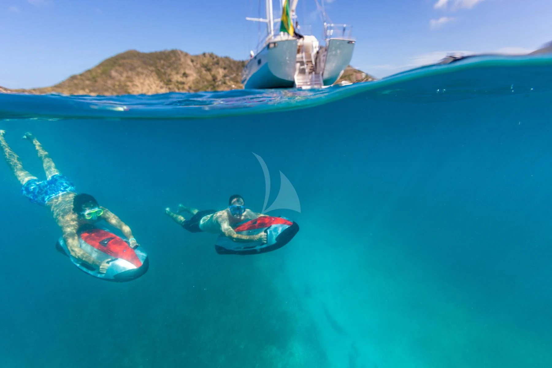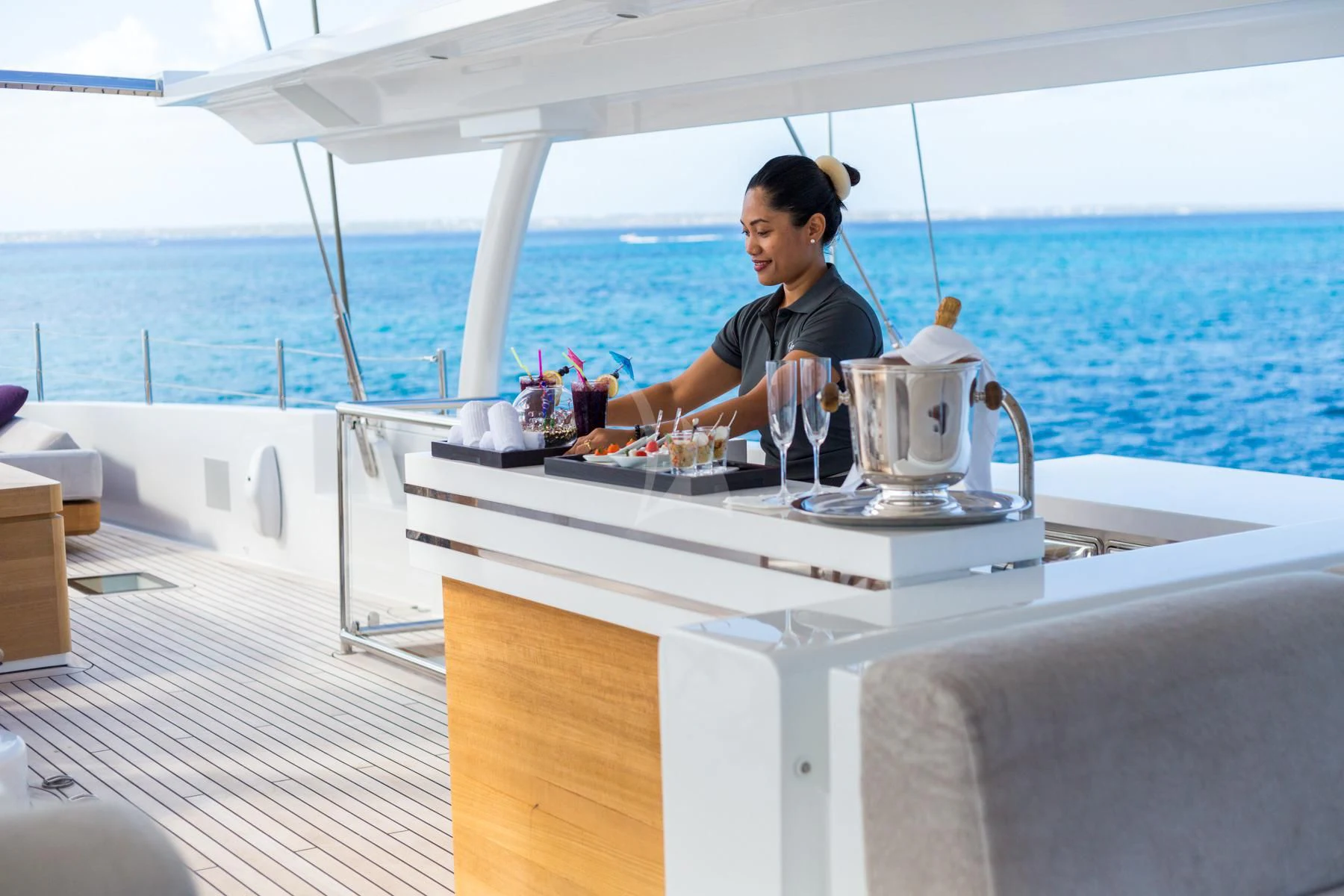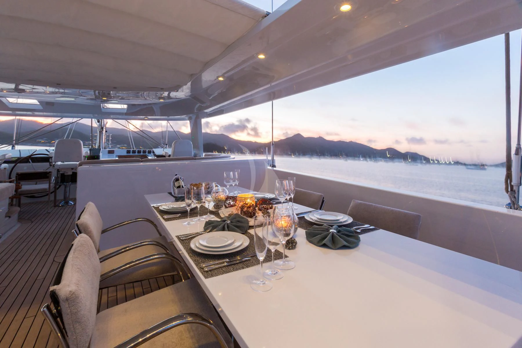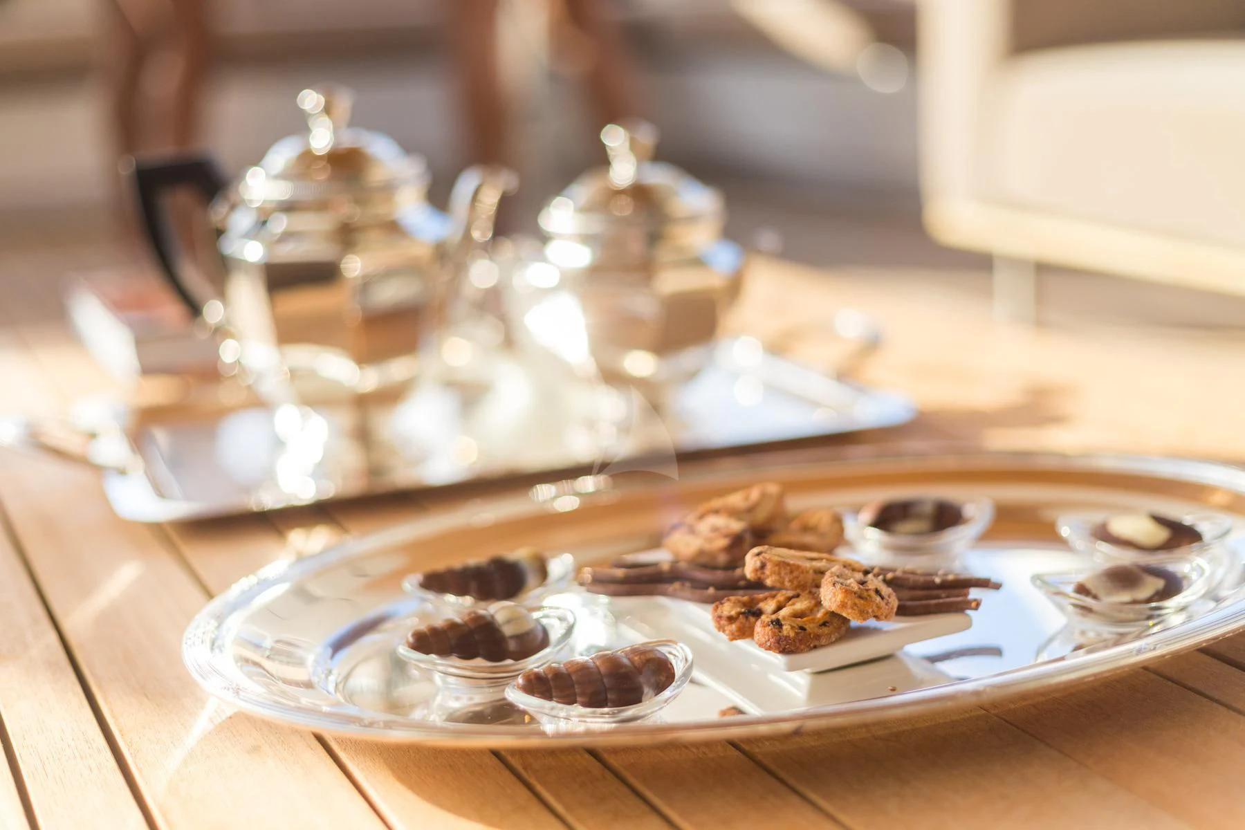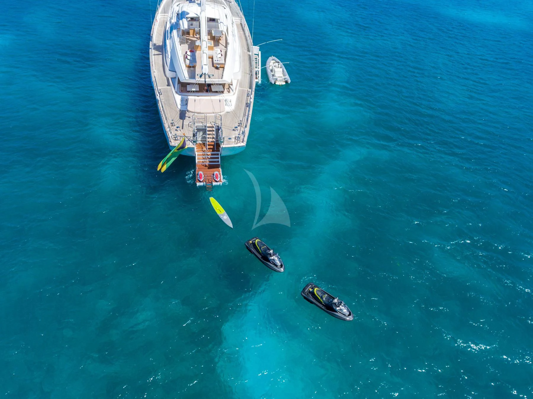 Guests can look forward to a varied and indulgent charter. Trips can be arranged to visit the finest restaurants, bars, clubs and spas ashore, and the crew will deliver and collect them in the tender. There are also plenty of water toys to keep guests busy on the water. Jet Skis combine with water skis, SeaBobs, wakeboards, fishing gear, and snorkeling gear. Relaxing on deck, guests can expect first-class service from the crew of 12. As well as keeping the yacht immaculate, they serve up the finest cuisine.