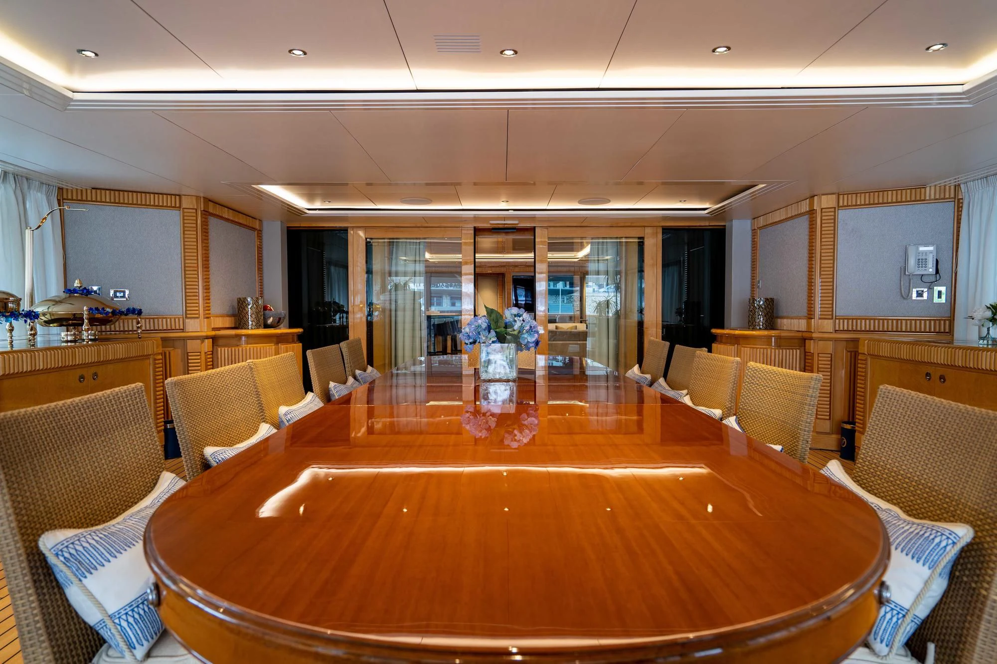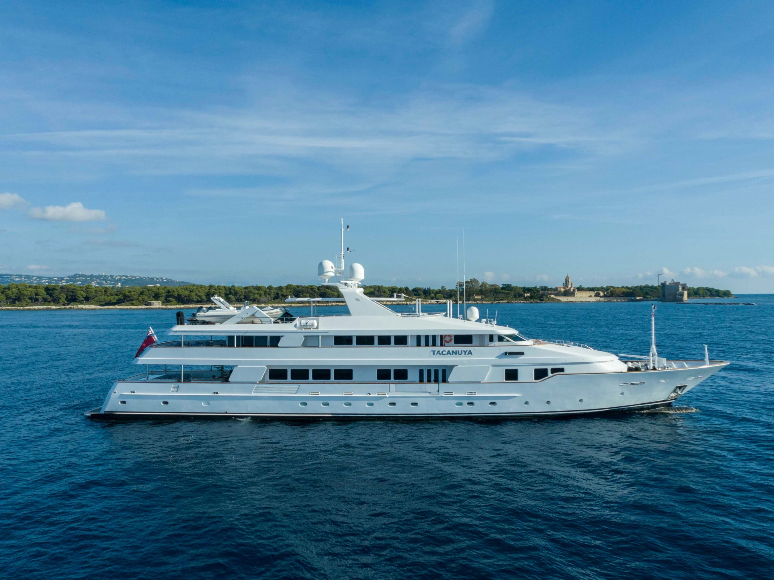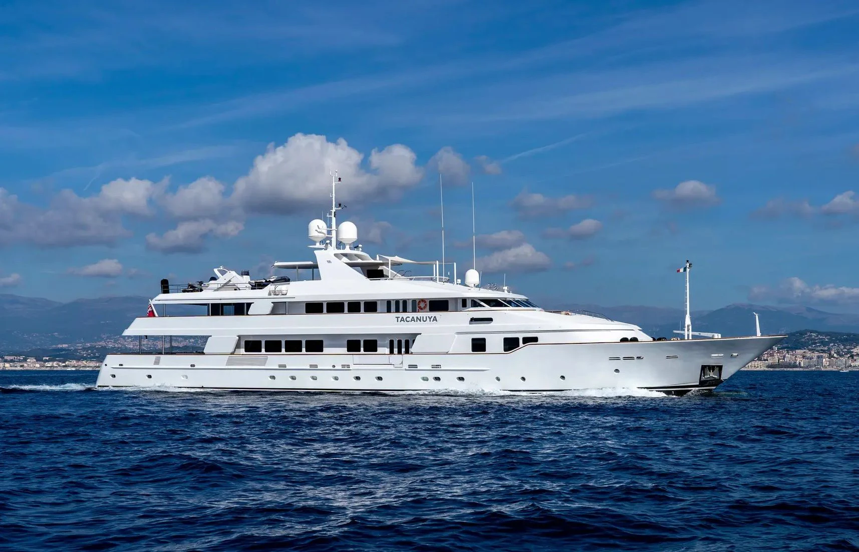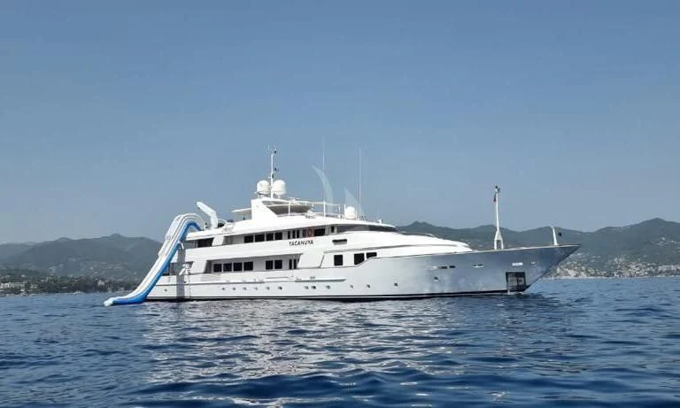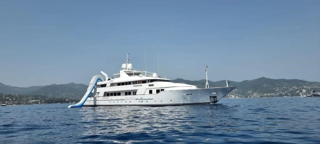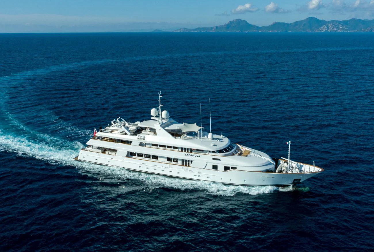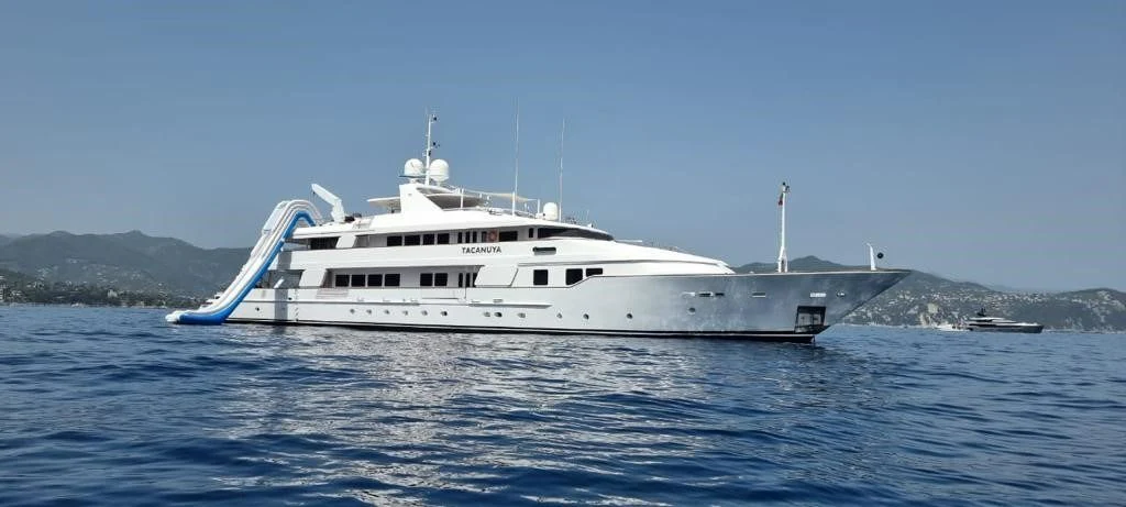 In 1992, the 184'1" (56.1m) TACANUYA was launched by Swiftships. She is a commanding superyacht with an impressive range of 3,200 nautical miles and plenty of space and style to satisfy discerning guests. She can welcome parties of up to 12 people, and her crew of 14 expertly takes care of them.