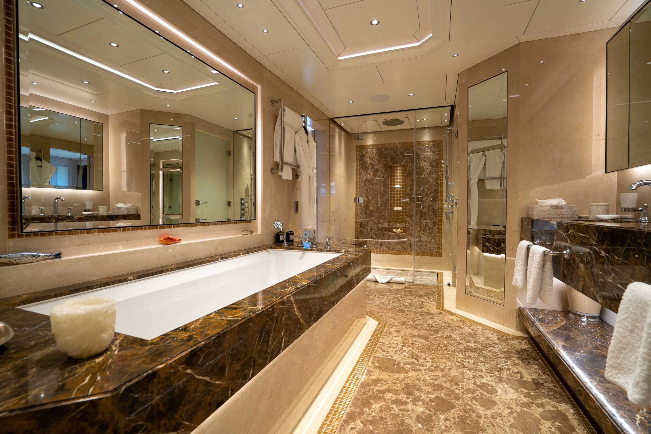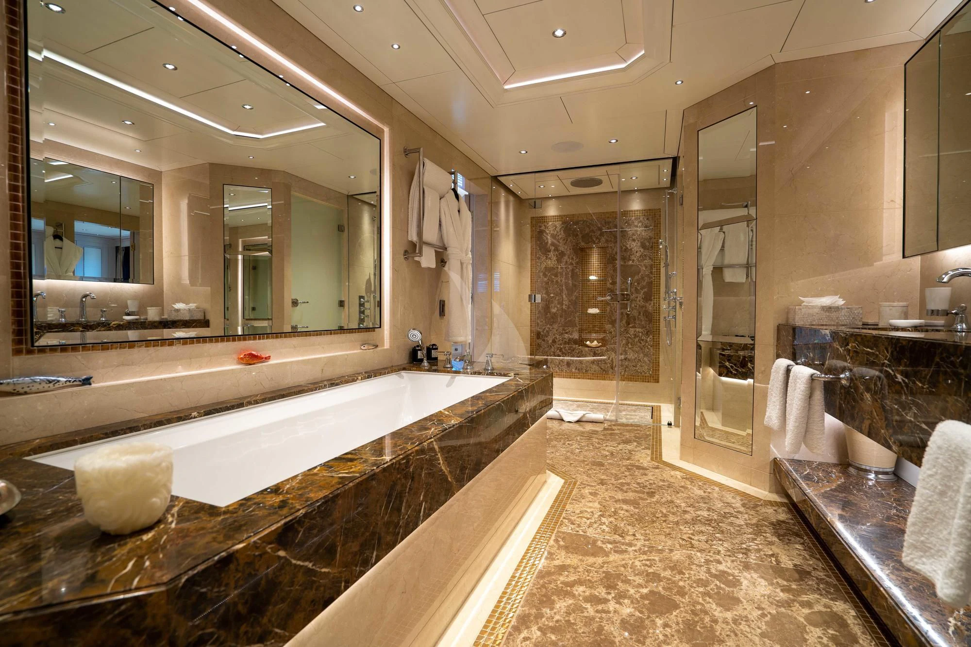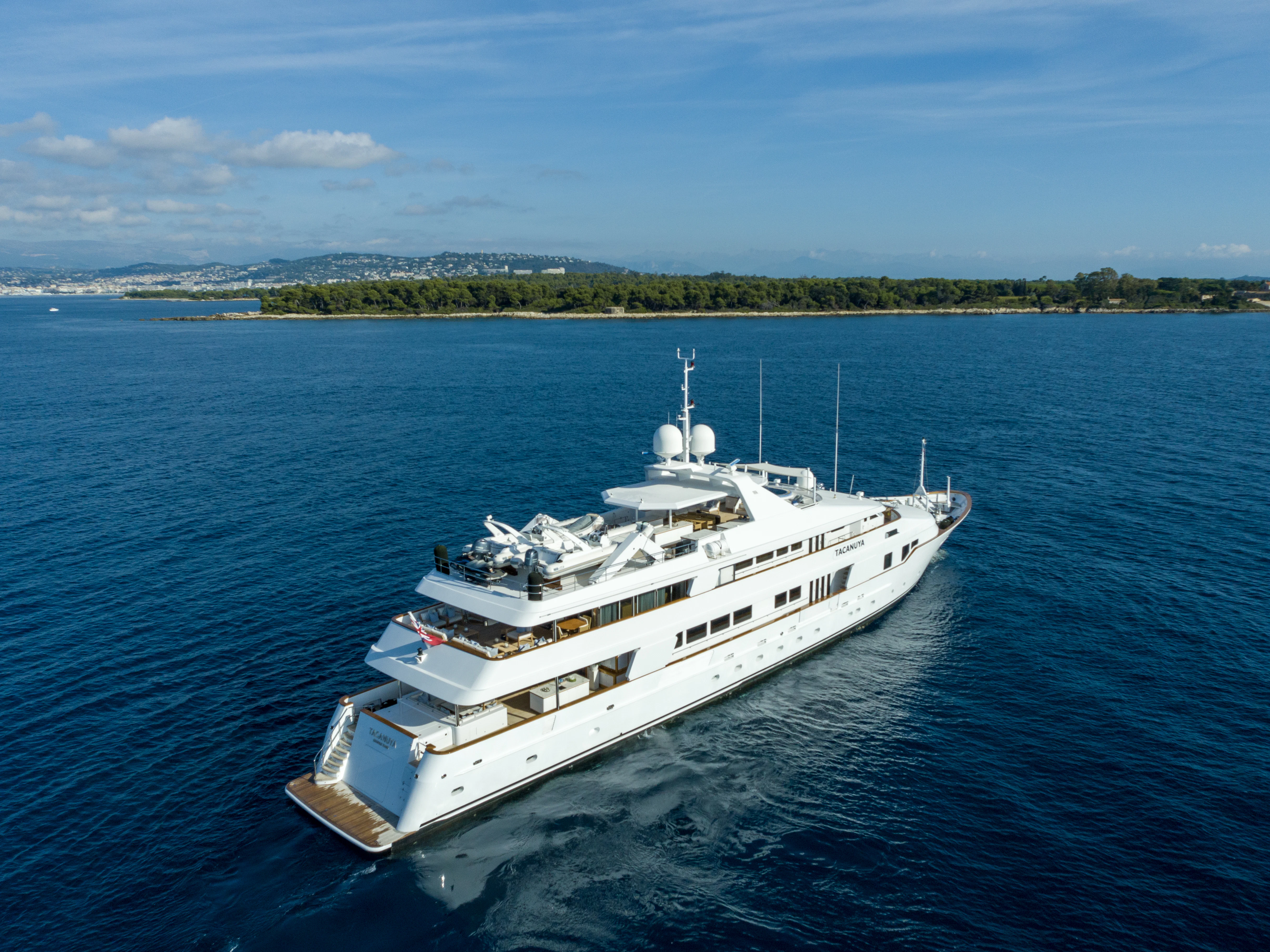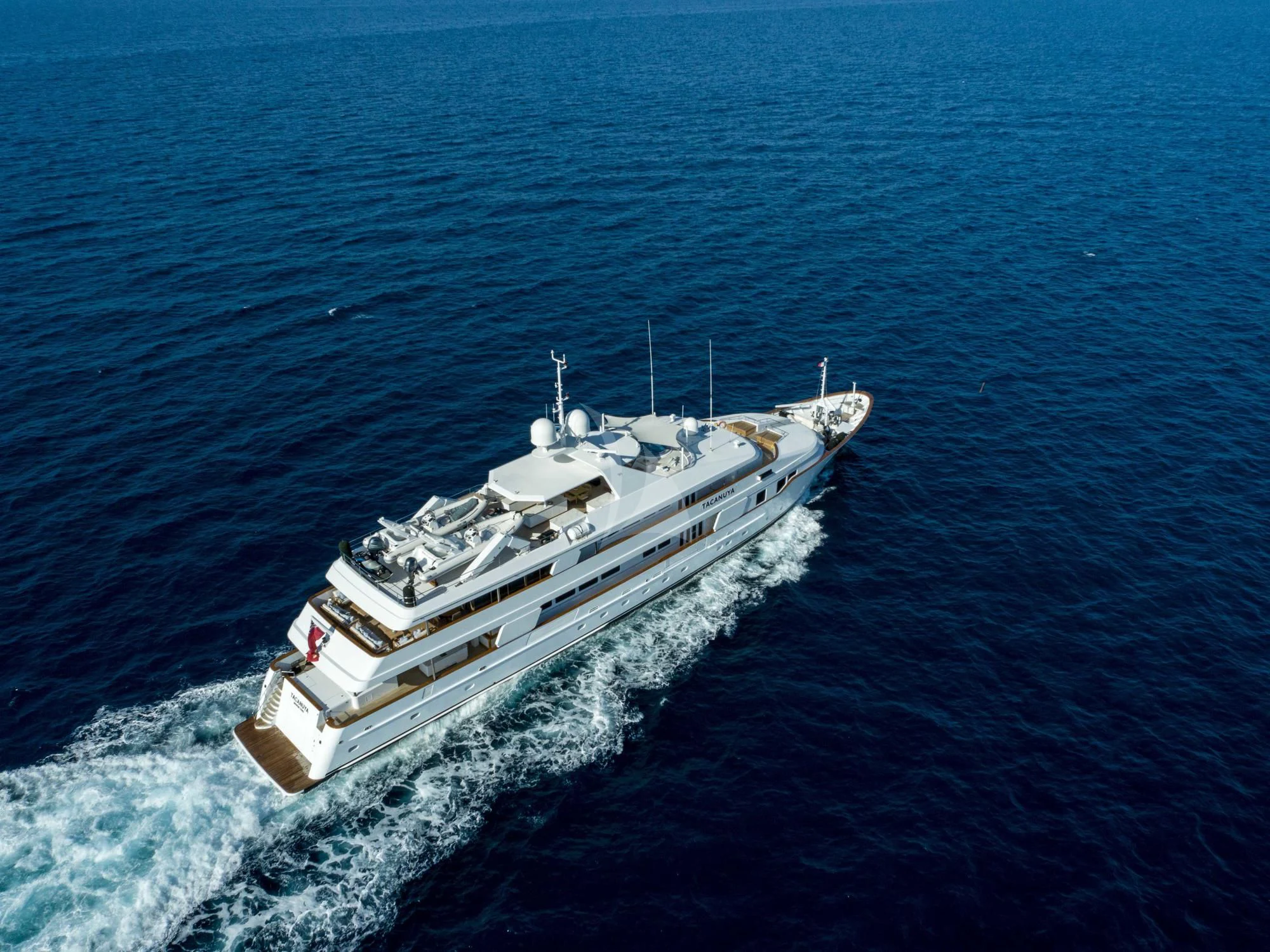 TACANUYA is a popular sight in the Mediterranean, and favored ports of call include Italy’s Amalfi Coast, the French Riviera, and the islands of Corsica and Sardinia. In the winter, she turns to the Caribbean, where guests can explore the attractions of Antigua, St Maarten, St Barth, and the Bahamas islands. All these destinations offer incredible appeal ashore, as well as wonderful waters for swimming, diving and water sports. TACANUYA is well equipped with Jet Skis, a Sea Scooter, SeaBob, a canoe, towable toys, a kayak, and paddleboard. There are also inflatable water toys, diving equipment, and bikes for exploring ashore. The crew is on hand at all times to deliver a world-class charter experience.