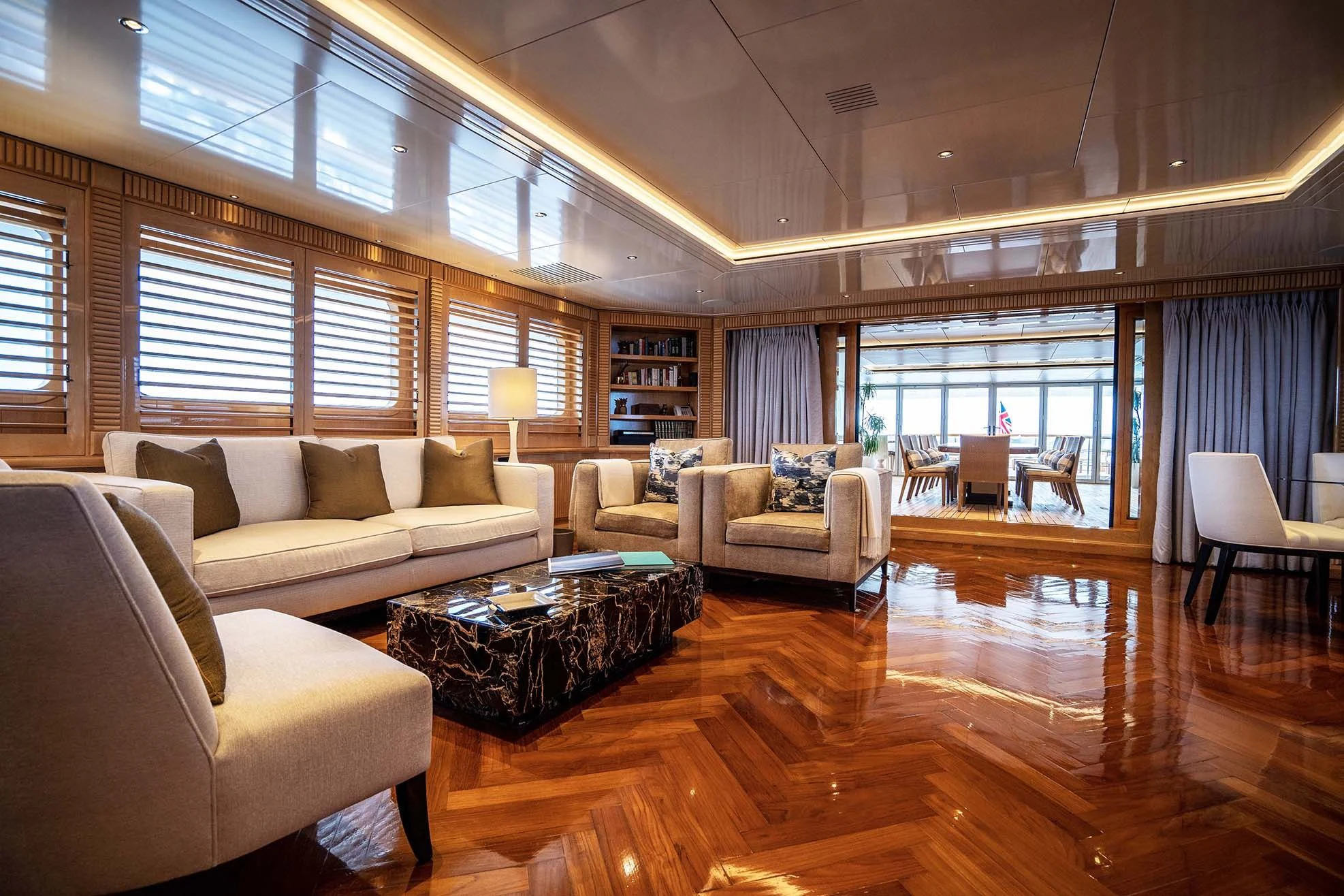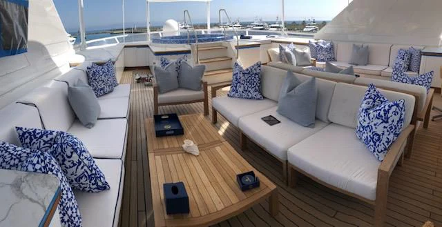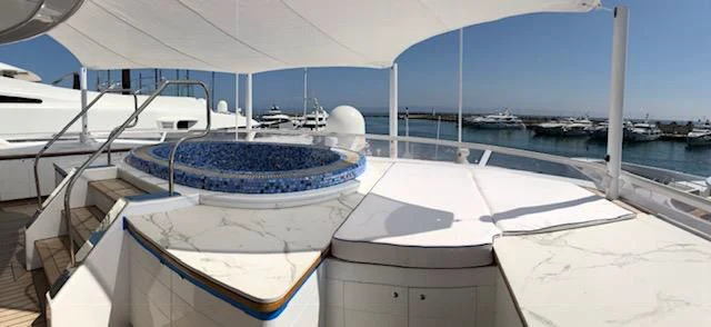 Exterior design came from Grant Robinson and the interior design from H2 Yacht Design. A refit in 2021 took the yacht to new levels of excellence. Performance is always a priority for TACANUYA and she is fitted with twin Caterpillar engines. She cruises steadily at 18 knots and can reach a top speed of 24 knots. The interior of the yacht features tasteful, traditional styling and guests sleep in seven staterooms with every luxury and comfort available. The deck areas are equally impressive. A popular place for guests to relax is in the deck Jacuzzi with a drink to hand, gazing at the incredible passing scenery.