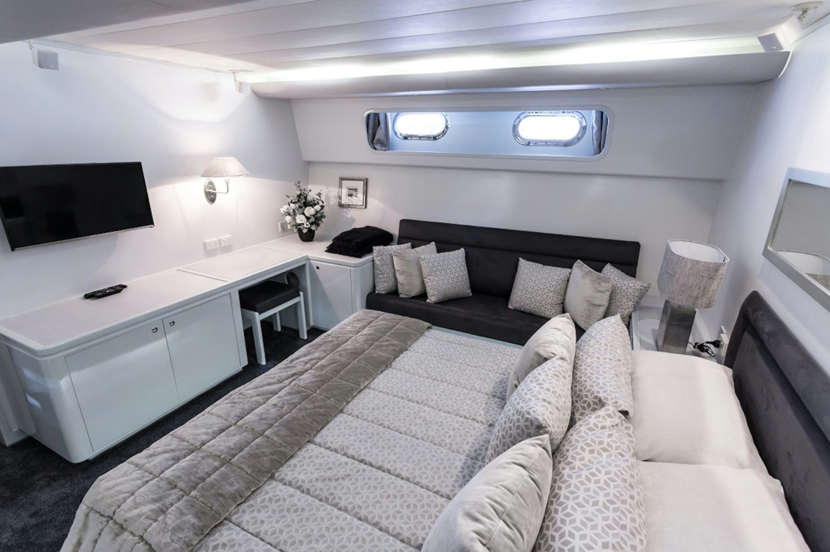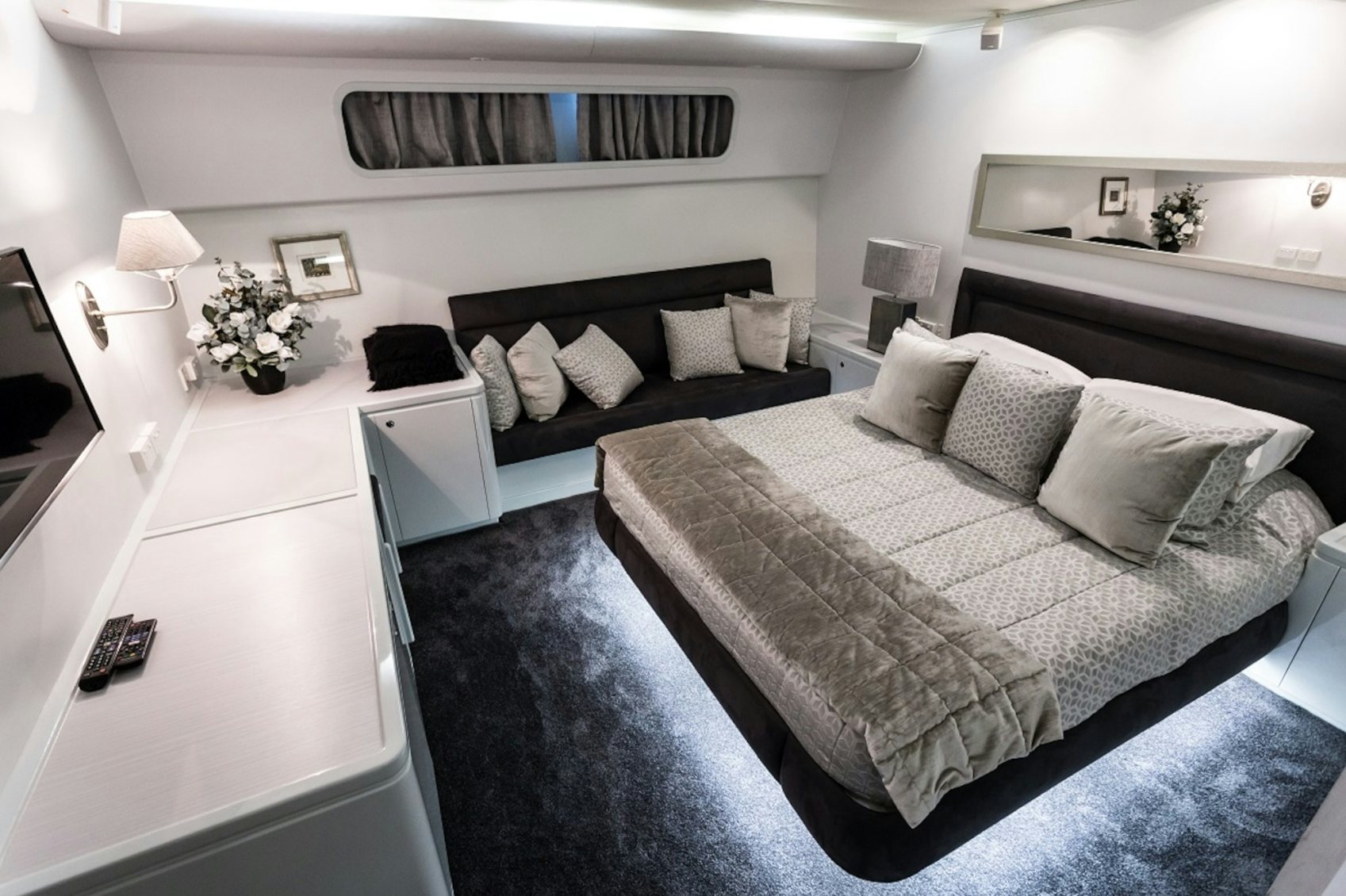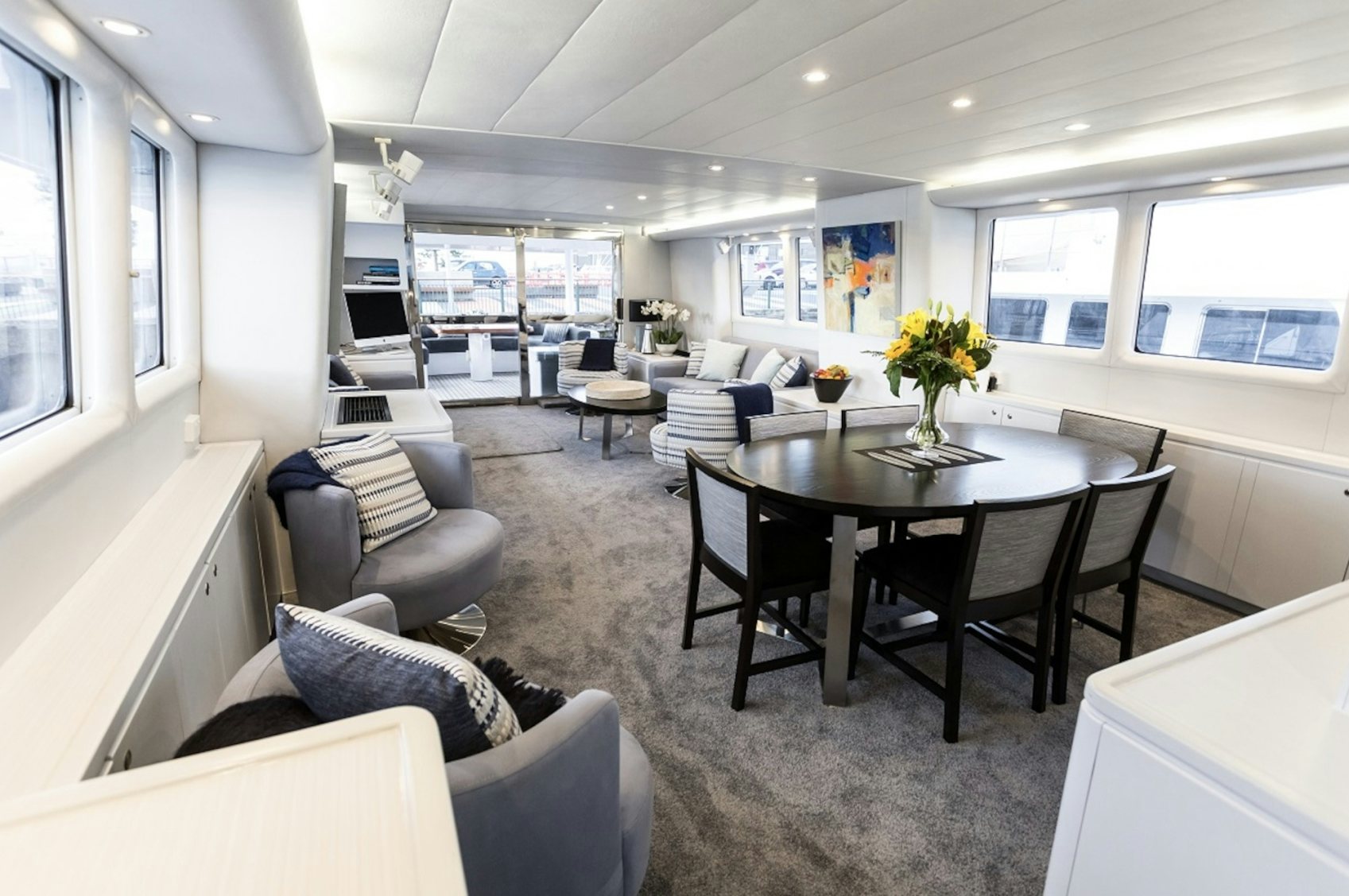 TEMPLAR’s interior makes everyone feel right at home. The luxury yacht boasts a comfortable salon and formal dining area. Her spacious open salon showcases large panoramic windows that provide stunning views of cruising destinations and a plethora of natural light.