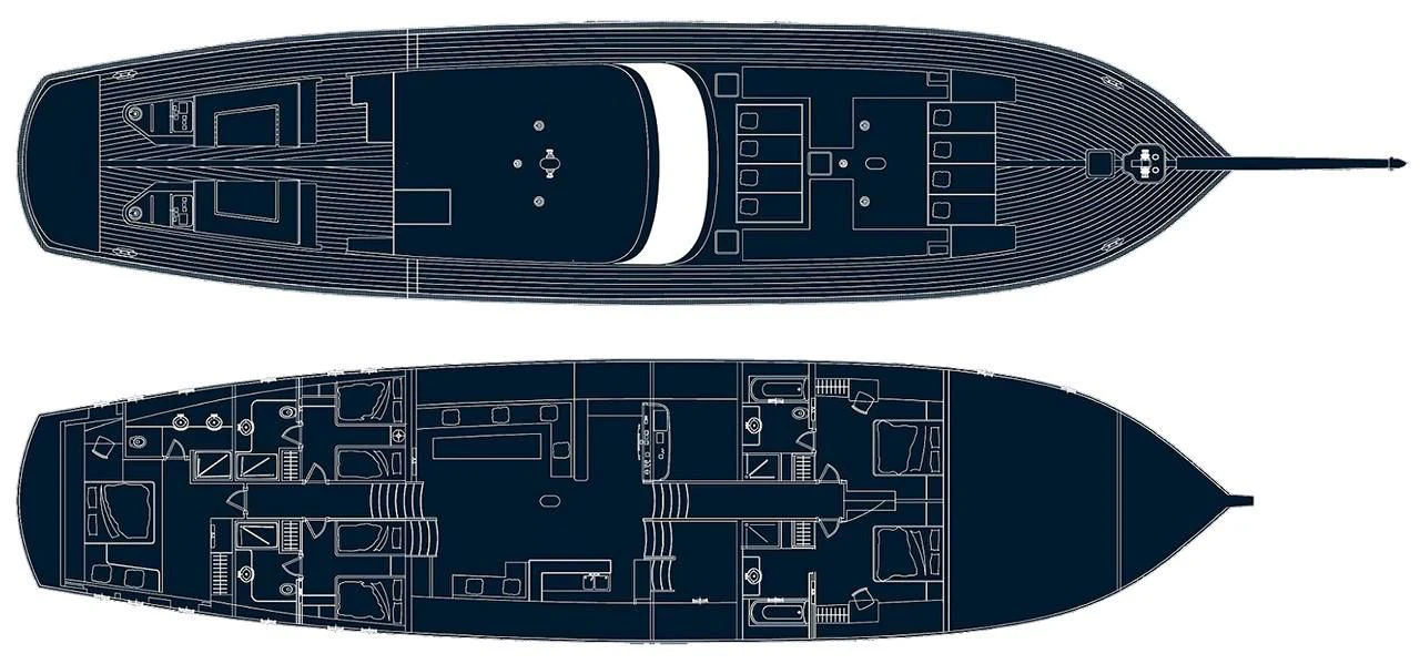 Decks on UBI BENE have been designed for the ultimate outdoor onboard living. The aft deck cockpit is covered for shade during the day's heat and boasts a full bar, sofas and tables for fantastic alfresco dining. The expansive foredeck is a sun lover’s dream, with a sea of sun pads and plenty of space for soaking in the rays and the beauty of UBI BENE’s stunning cruising grounds.
