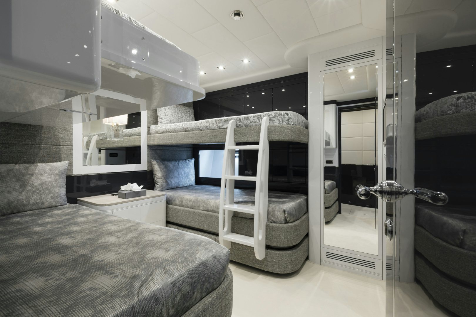 Eleven guests will enjoy restful nights at sea in the five well-appointed staterooms of charter yacht VENI VIDI VICI. The yacht’s full-beam master suite is truly an on-water retreat where relaxation is imminent. Four additional staterooms comprise three doubles and one twin with a bunk bed and a Pullman. All staterooms aboard VENI VIDI VICI offer high-quality fabrics, furnishings and accompaniments and all have en-suite bathrooms. The yacht is run by a professional crew of six who will provide the highest level of service to guests.