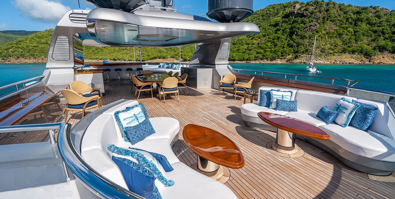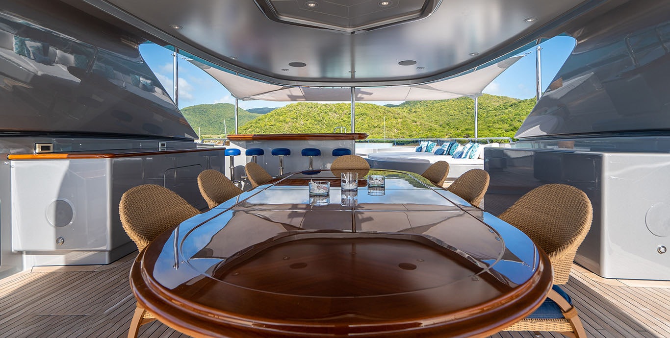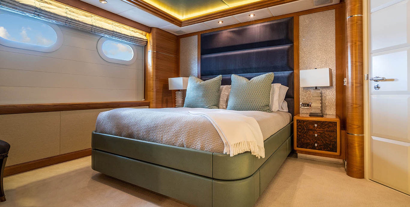 VIBRANCE sleeps up to 12 guests in five spacious rooms including a master suite, a VIP stateroom, a double cabin and two twin cabins with additional Pullman bunks. The master suite boasts a large marble bathroom, his-and-hers walk-in dressing rooms, a study and direct access to a private owner’s deck. All other cabins are located on the lower deck and the convertible nature of the layout is ideal for varying guest numbers. VIBRANCE carries 11 crew on board to ensure the premium service and warm hospitality associated with superyacht charter.