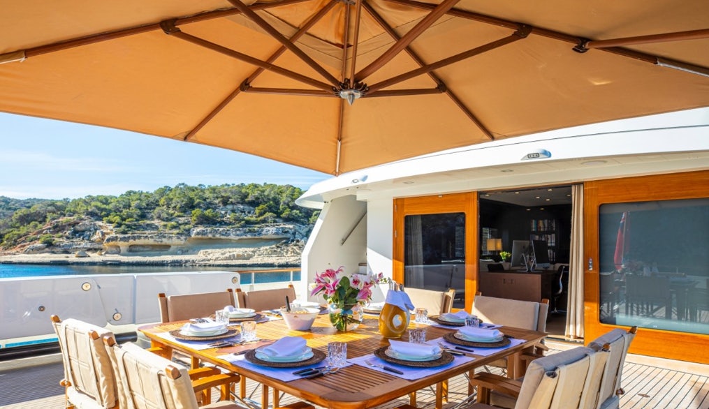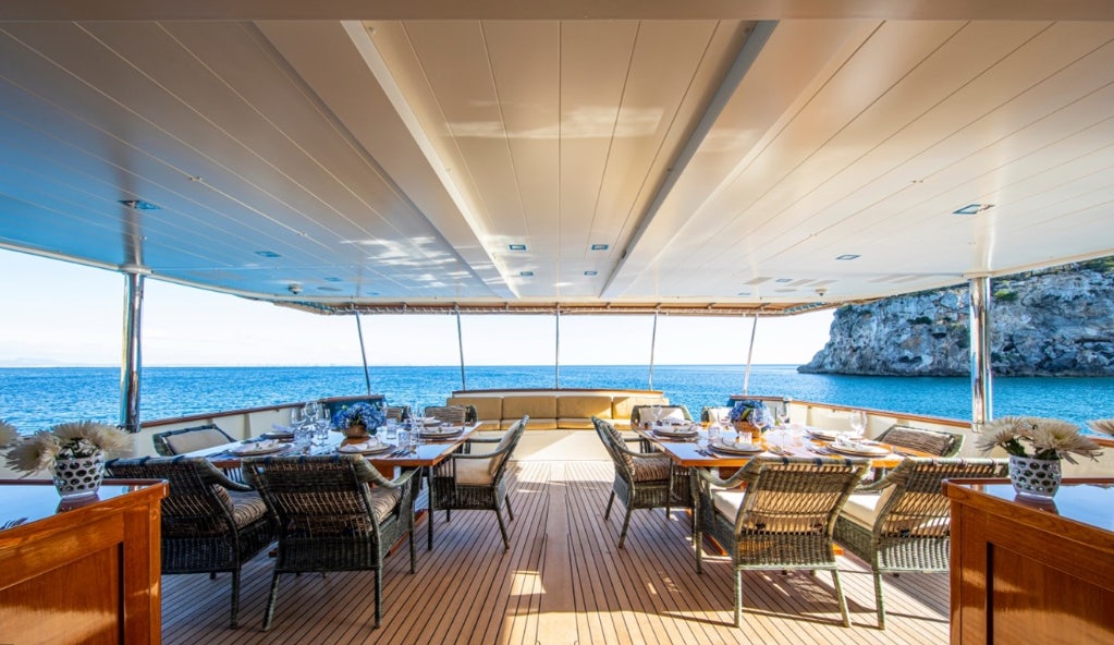 Aboard the A2, you'll find an array of exquisite exterior spaces designed for relaxation and enjoyment under open skies. The sundeck beckons with its promise of sun-soaked afternoons spent lounging on plush deck furniture or enjoying al fresco dining experiences enhanced by panoramic ocean views. The yacht's cruising speed is set at a comfortable 12 knots, allowing guests to enjoy smooth sailing across tranquil seas while basking in the glow of breathtaking sunsets.