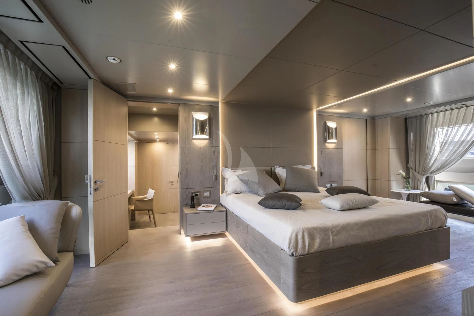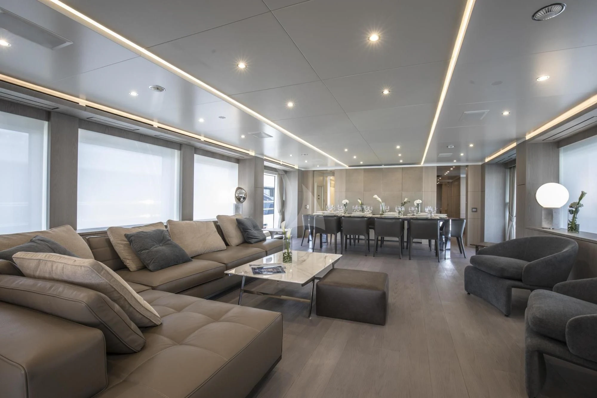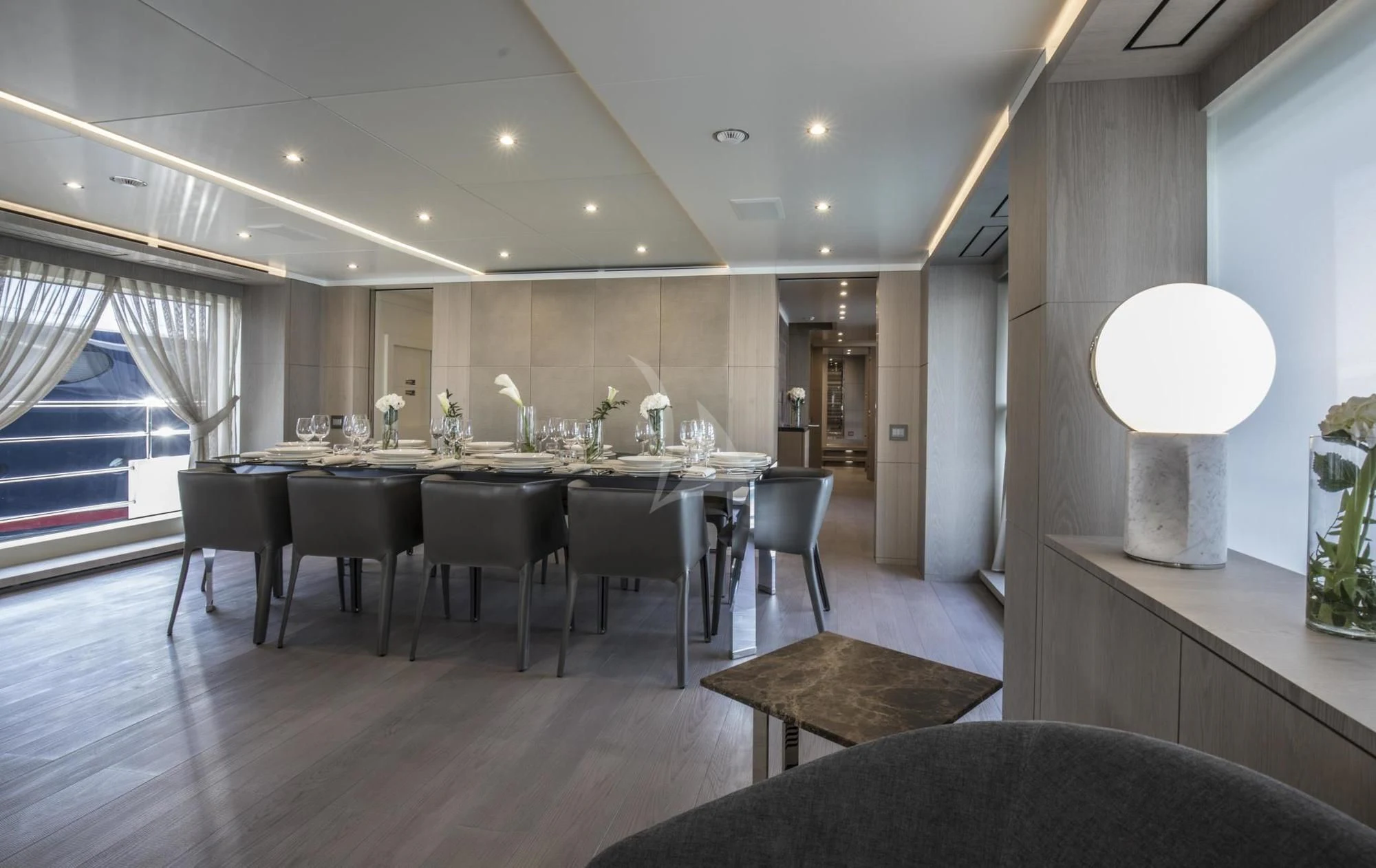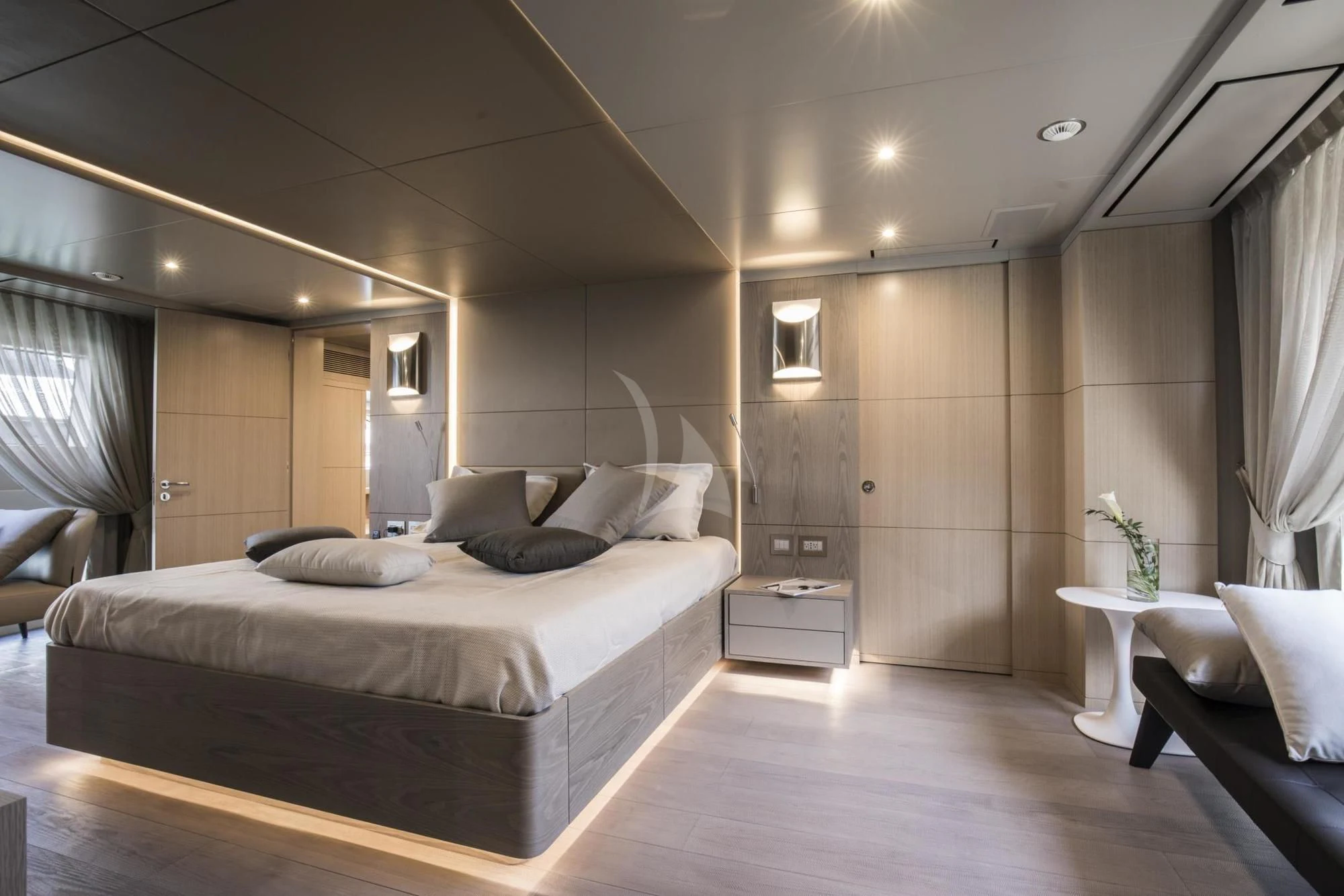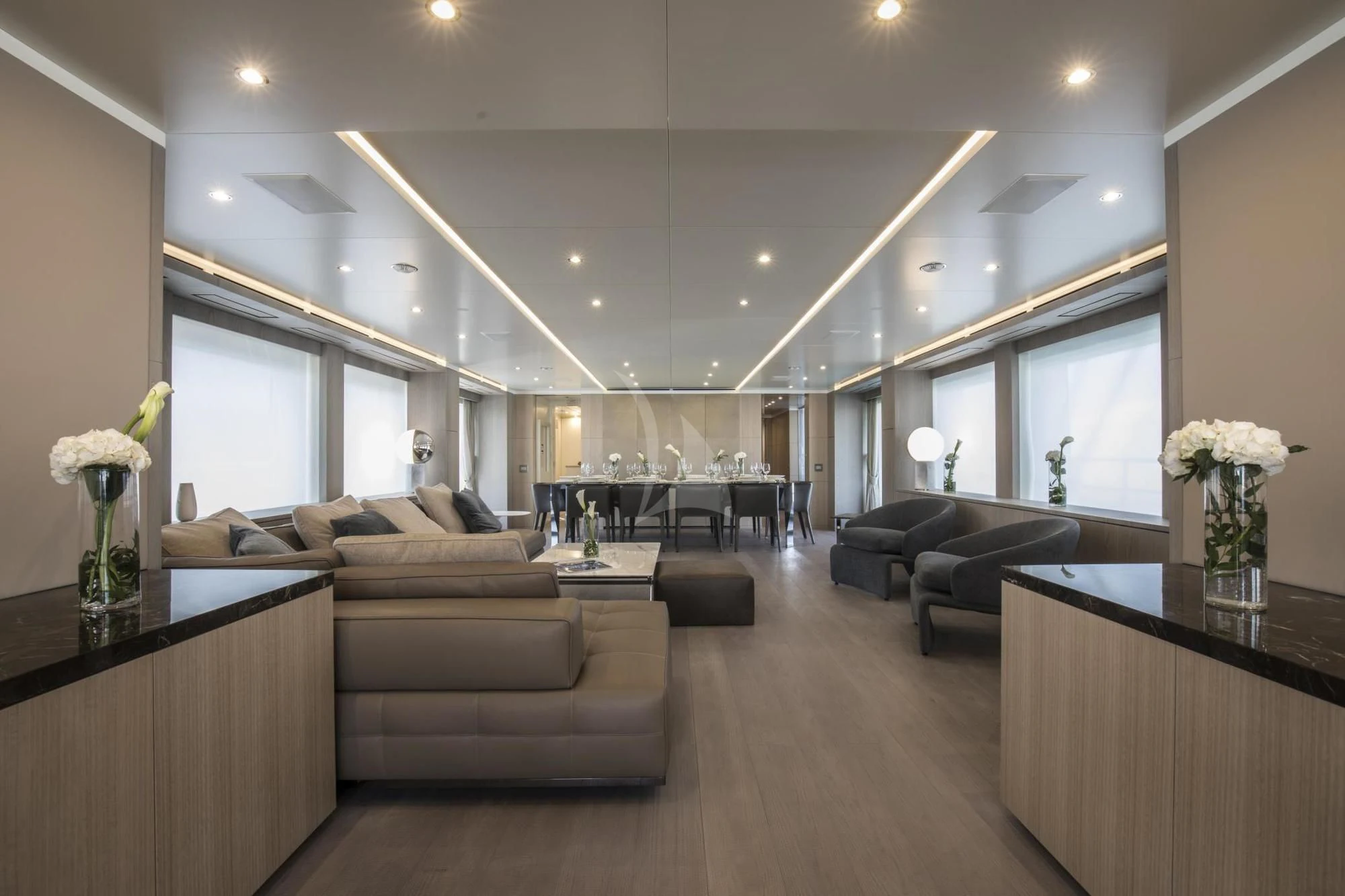 Step inside MONT-AL LAWZ and be mesmerized by her interior design that exudes sophistication at every corner. She boasts six luxurious cabins that can comfortably accommodate up to twelve guests along with provisions for eight crew members ensuring top-notch service round-the-clock. Each cabin is adorned with unique design elements reflecting an aesthetic color palette that blends perfectly with the yacht's overall theme.