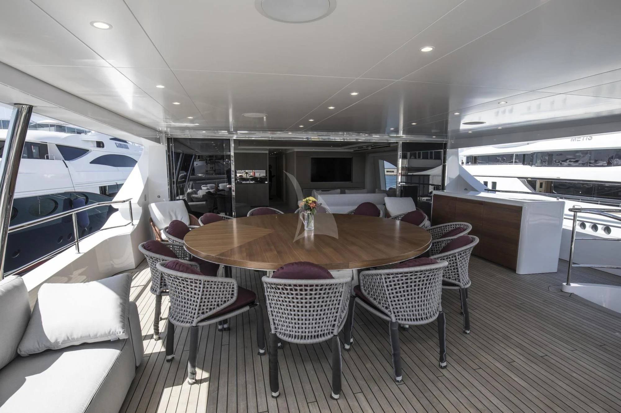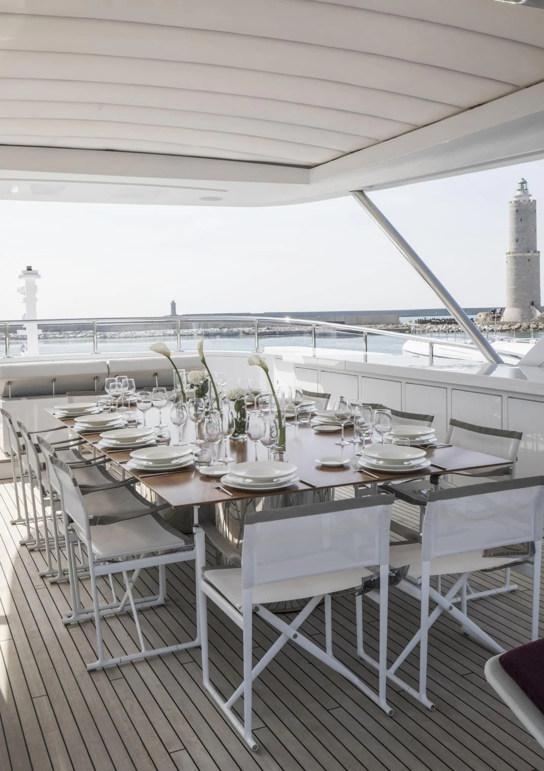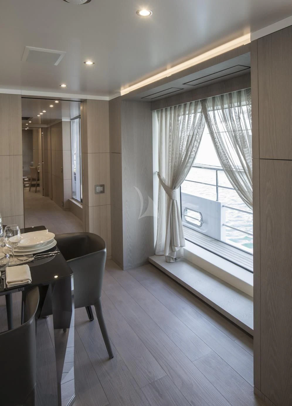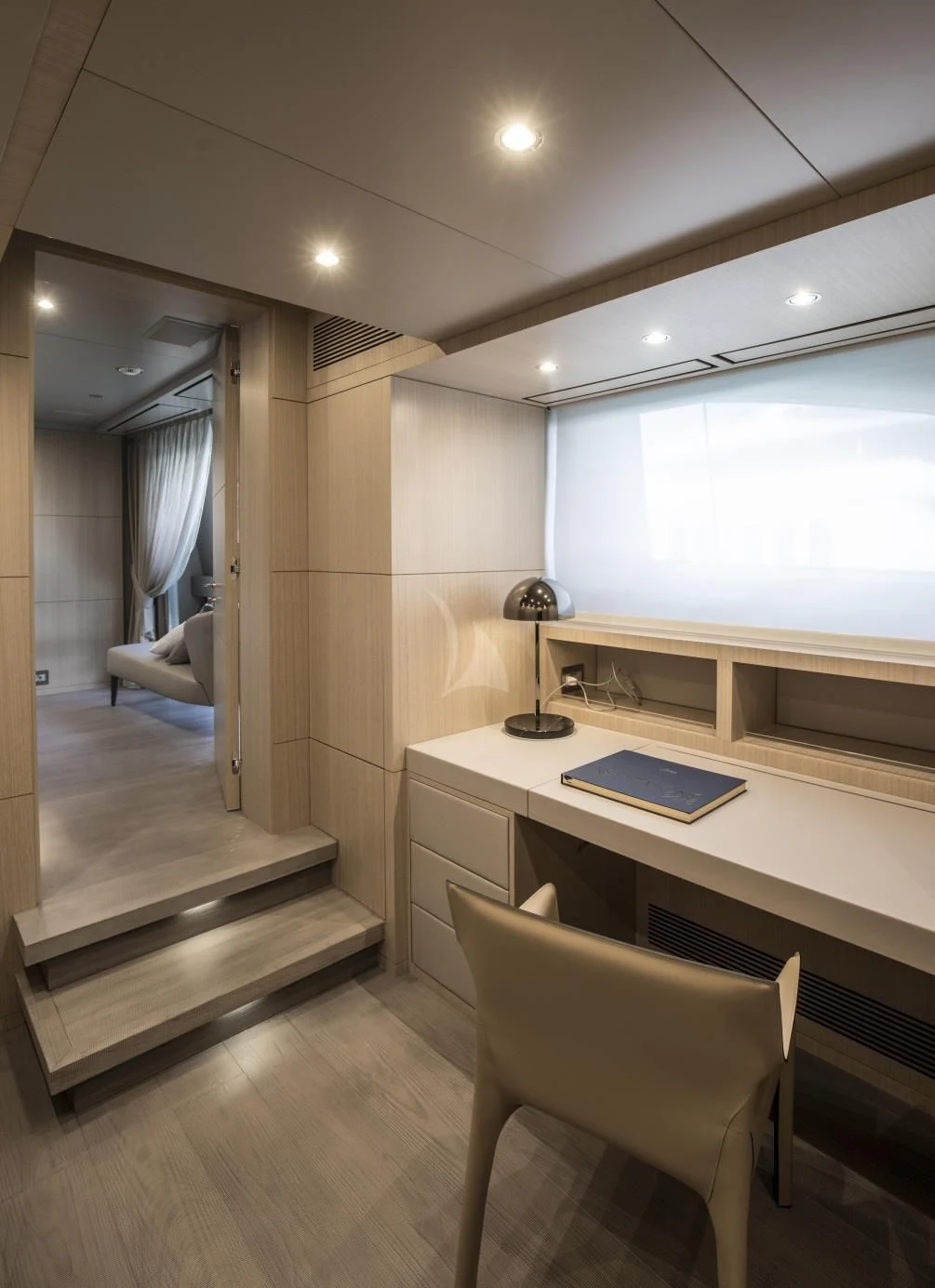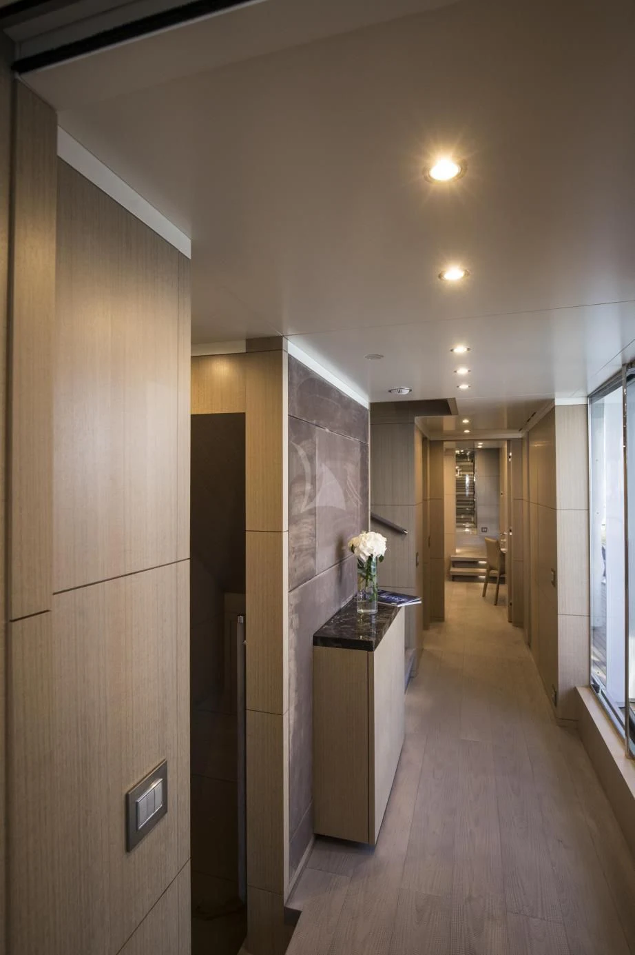Step inside MONT-AL LAWZ and be mesmerized by her interior design that exudes sophistication at every corner. She boasts six luxurious cabins that can comfortably accommodate up to twelve guests along with provisions for eight crew members ensuring top-notch service round-the-clock. Each cabin is adorned with unique design elements reflecting an aesthetic color palette that blends perfectly with the yacht's overall theme.