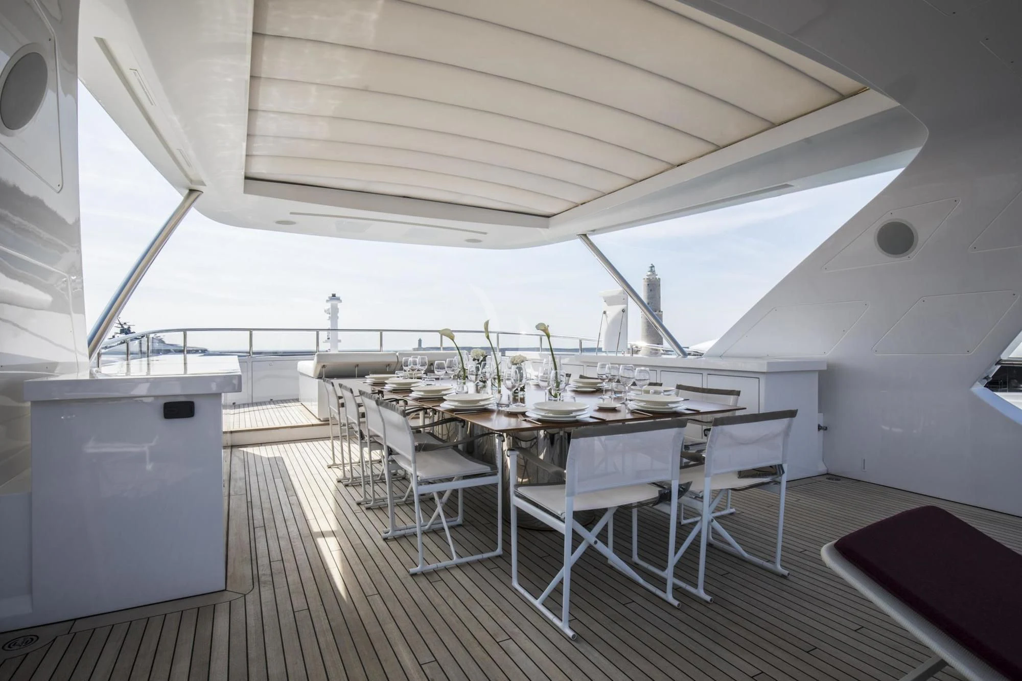 The exterior design of MONT-AL LAWZ is a visual symphony that harmoniously combines elegant lines with a robust GRP hull material. Her beam stretches generously at 30 feet and 5 inches or approximately 9.26 meters, providing ample space for alfresco dining areas, sundecks and lounging spaces where guests can revel under the sun or dine under the stars. The yacht's displacement category suggests her ability to offer smooth sailing even in choppy waters while maintaining optimal fuel efficiency.
