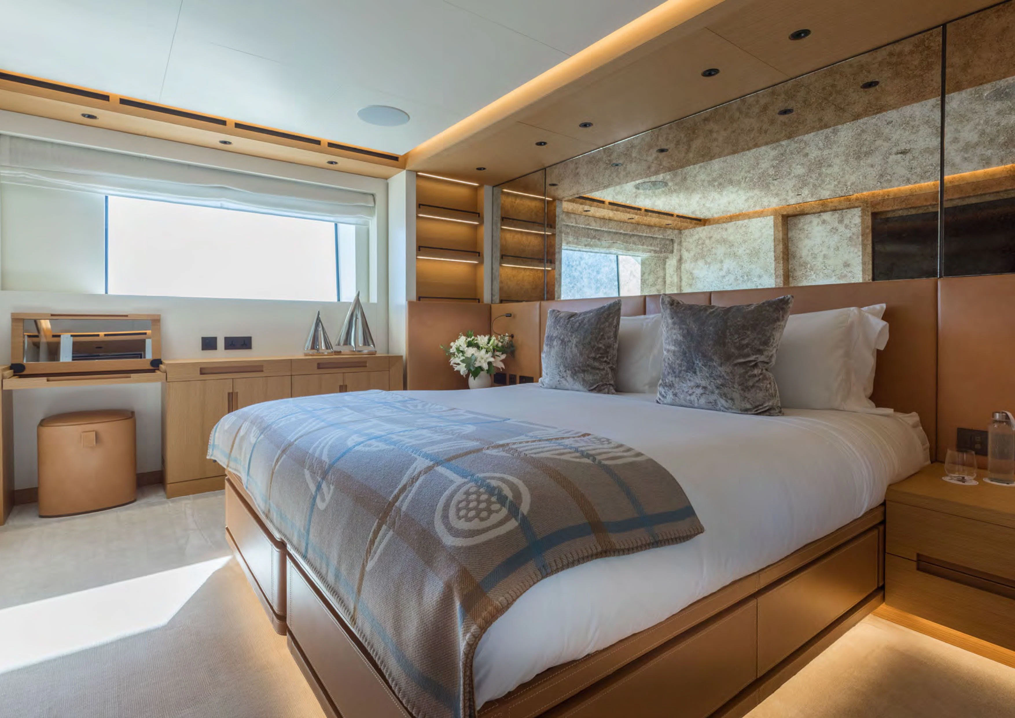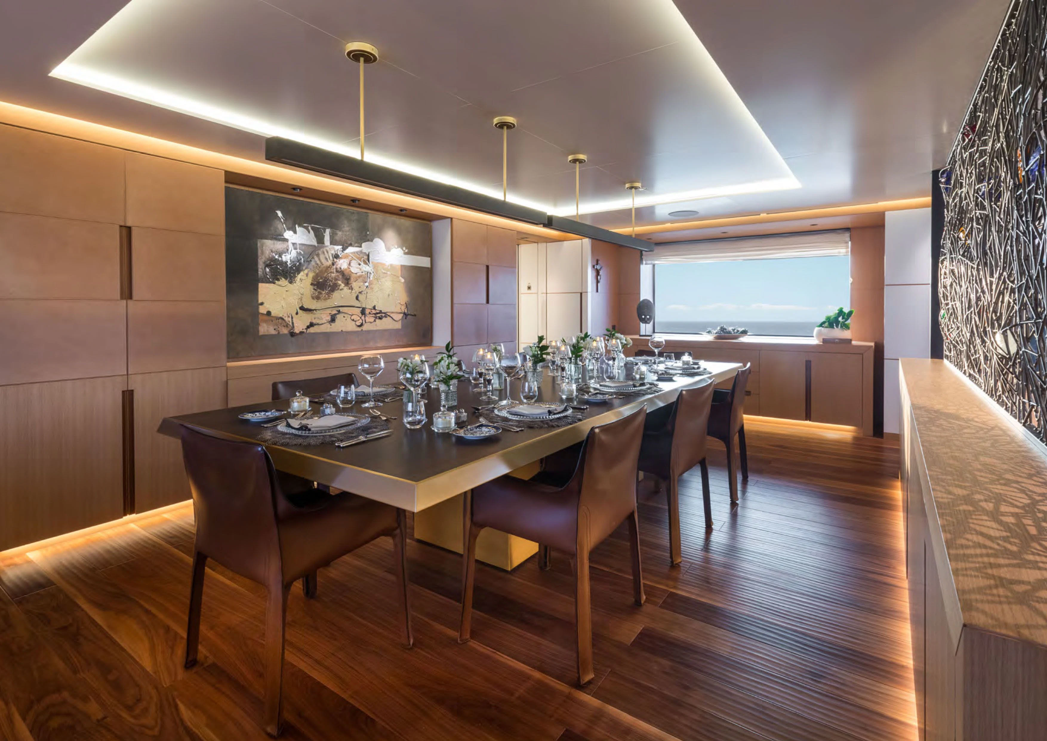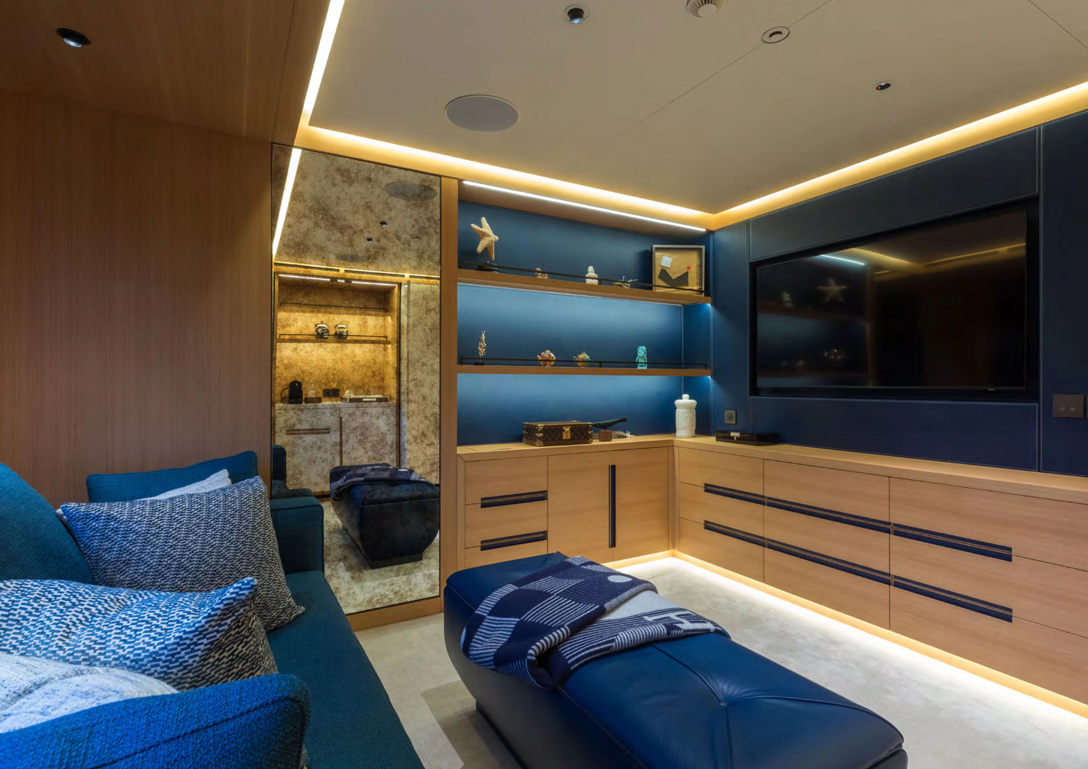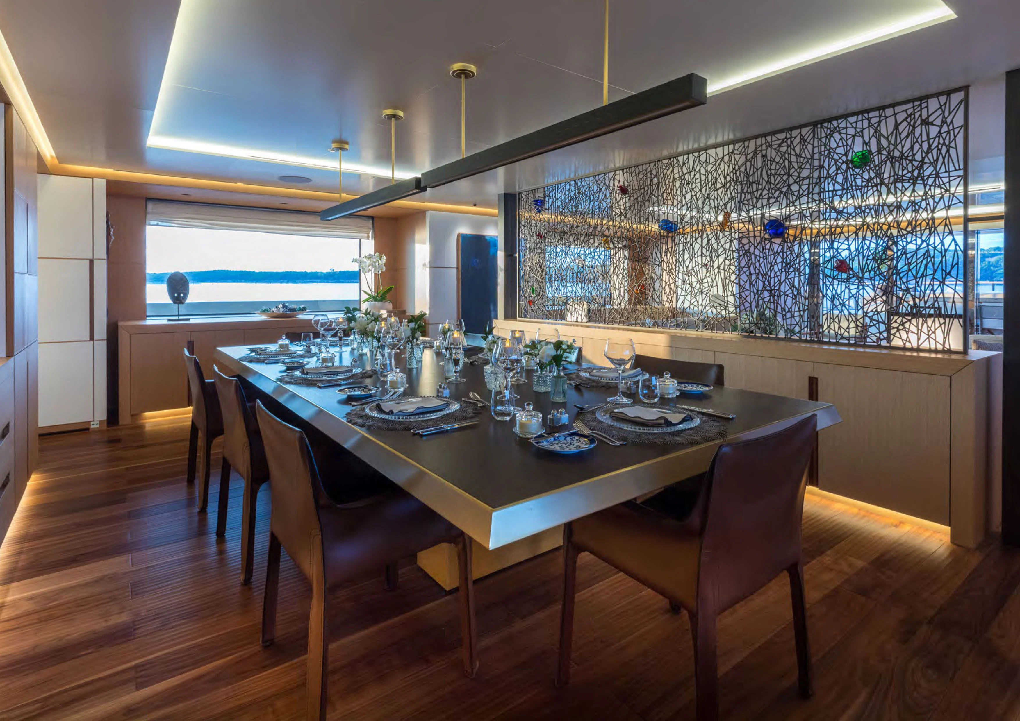 Moving inside ALCHEMIST reveals an interior that exudes opulence at every turn; no detail has been overlooked in creating a luxurious sanctuary for her guests on board. She comfortably accommodates up to twelve guests within her stylishly appointed staterooms; each one echoing the yacht’s sophisticated aesthetics while offering maximum comfort for its occupants.