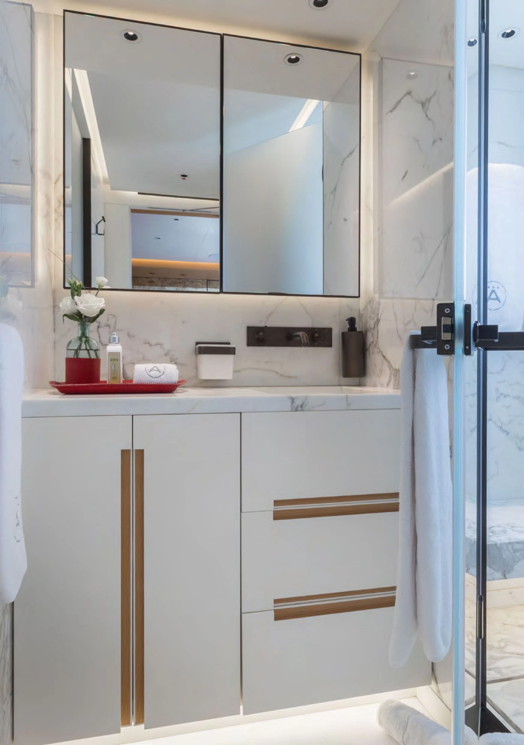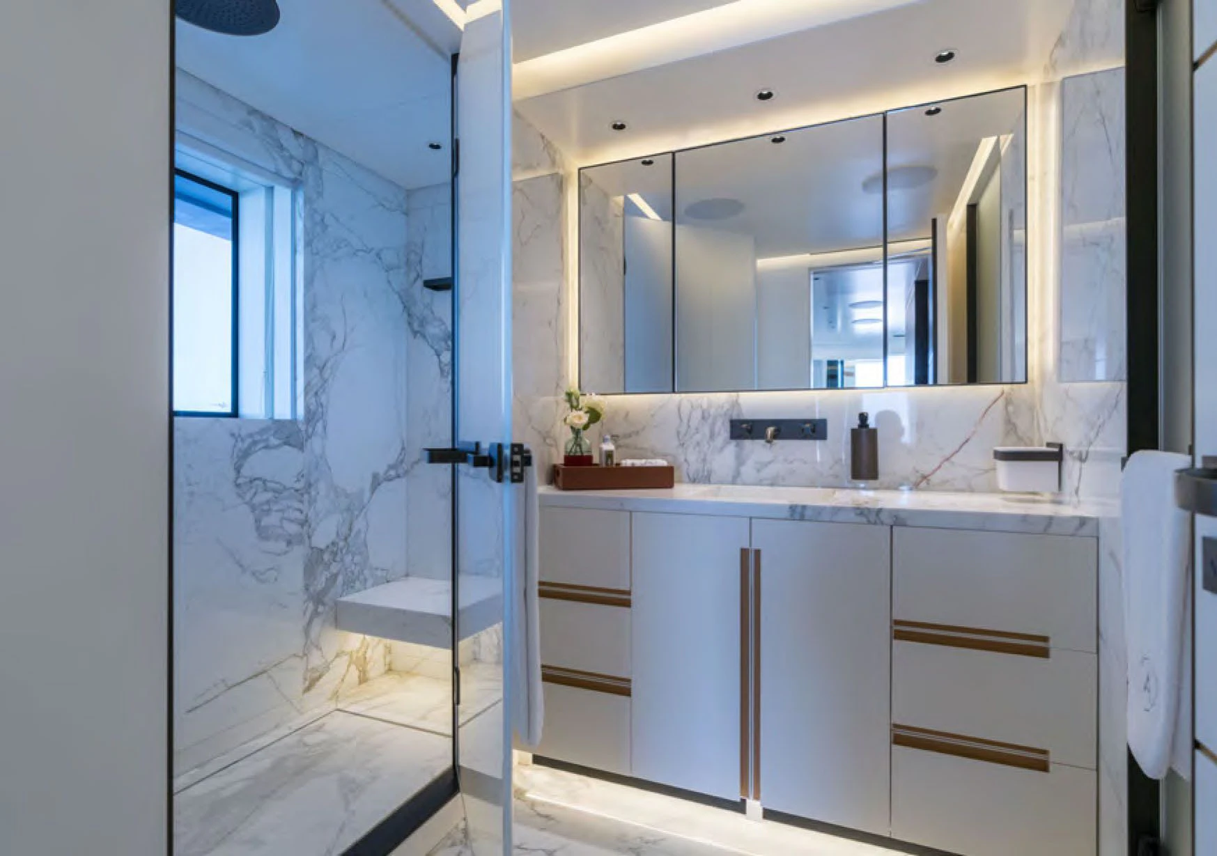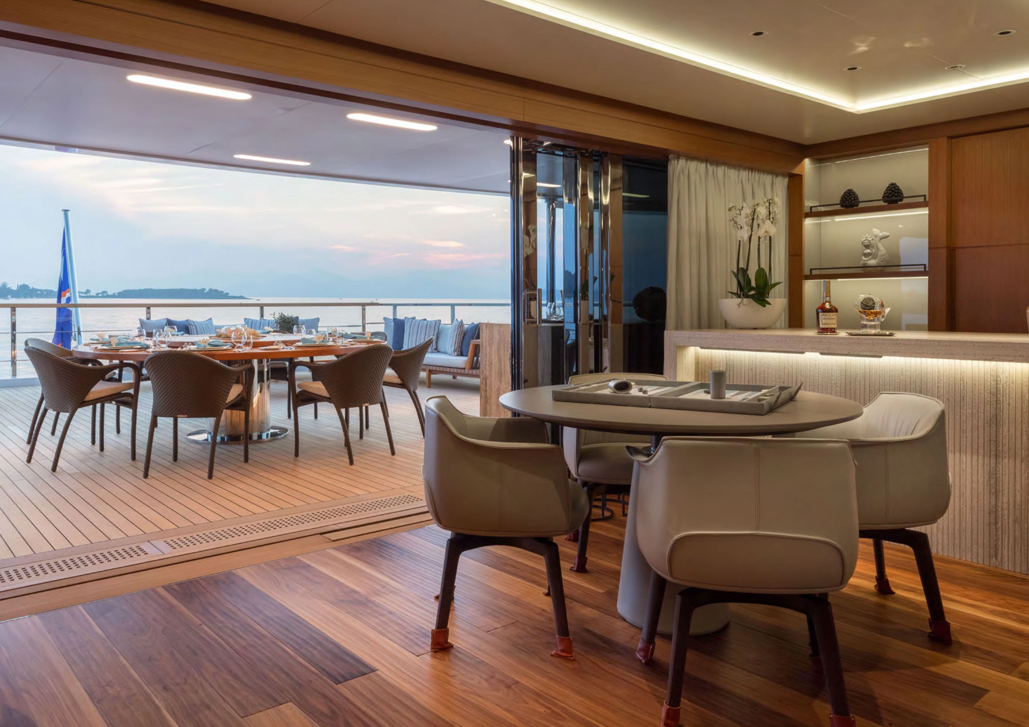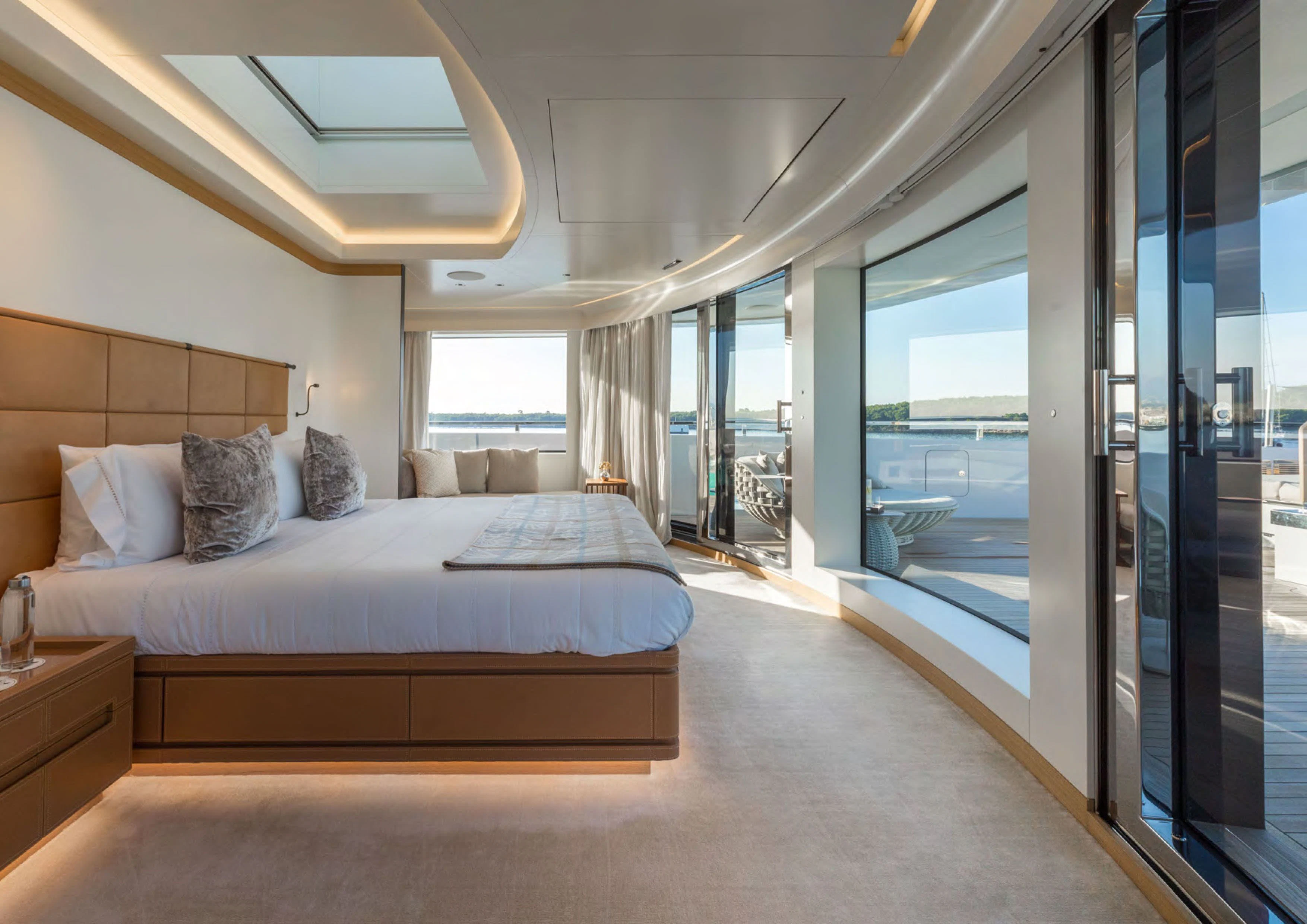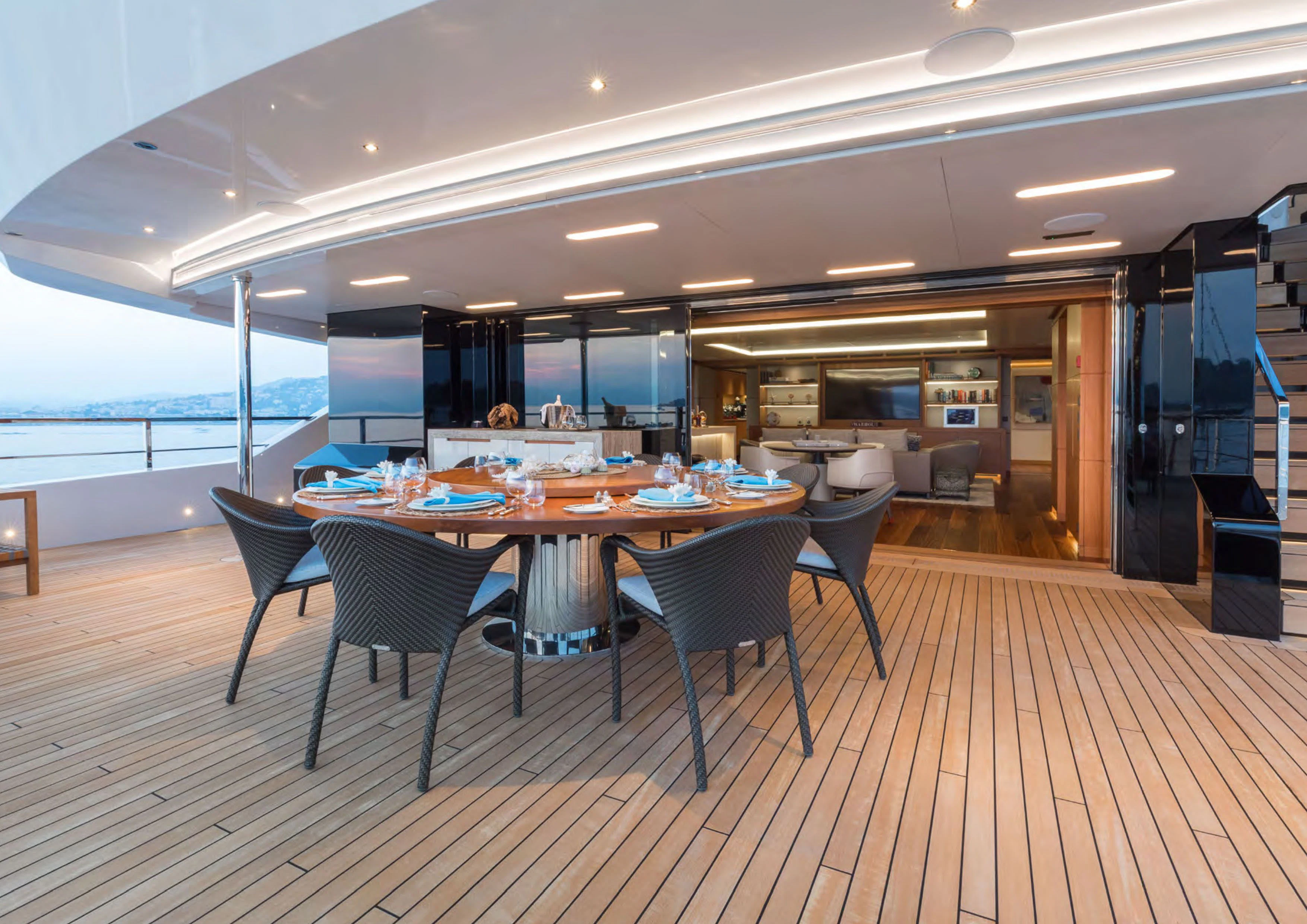 Moving inside ALCHEMIST reveals an interior that exudes opulence at every turn; no detail has been overlooked in creating a luxurious sanctuary for her guests on board. She comfortably accommodates up to twelve guests within her stylishly appointed staterooms; each one echoing the yacht’s sophisticated aesthetics while offering maximum comfort for its occupants.
