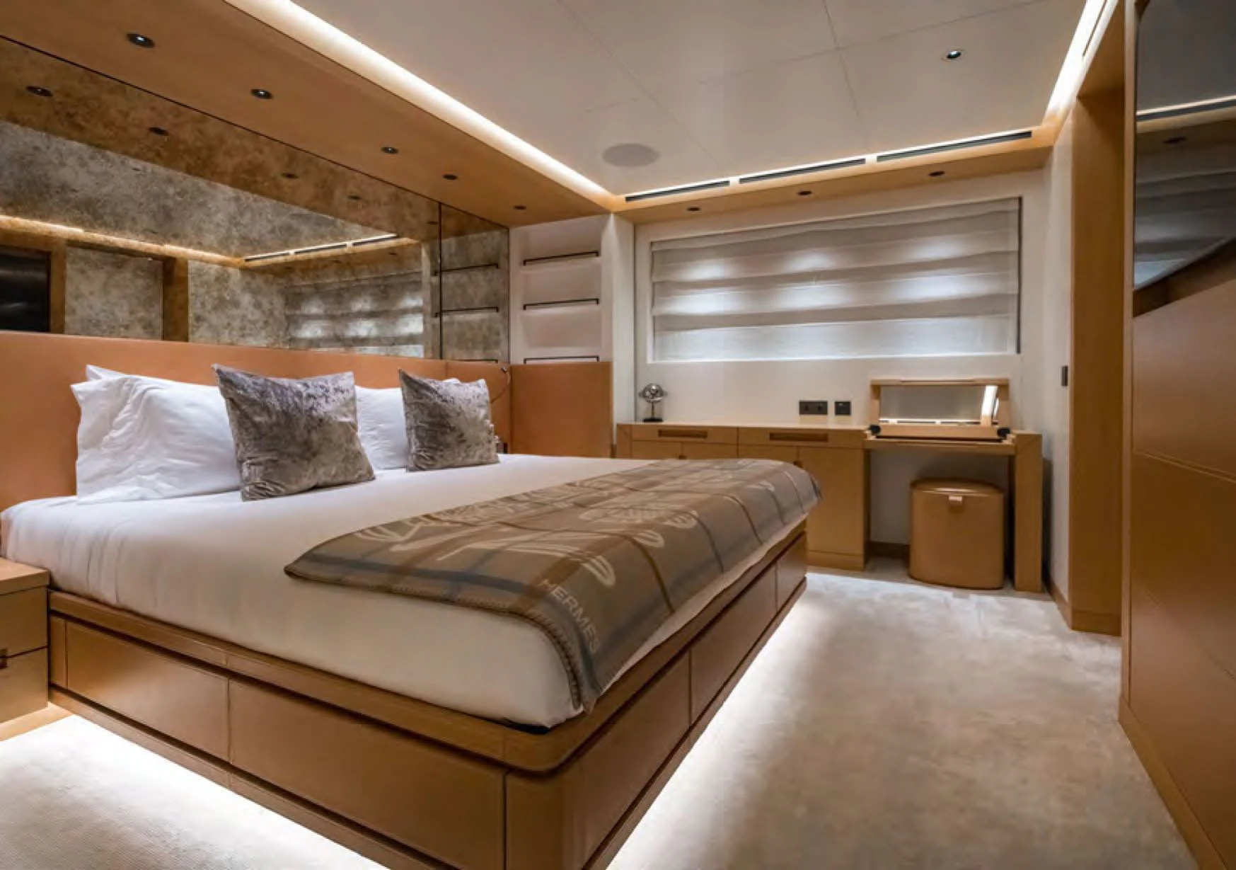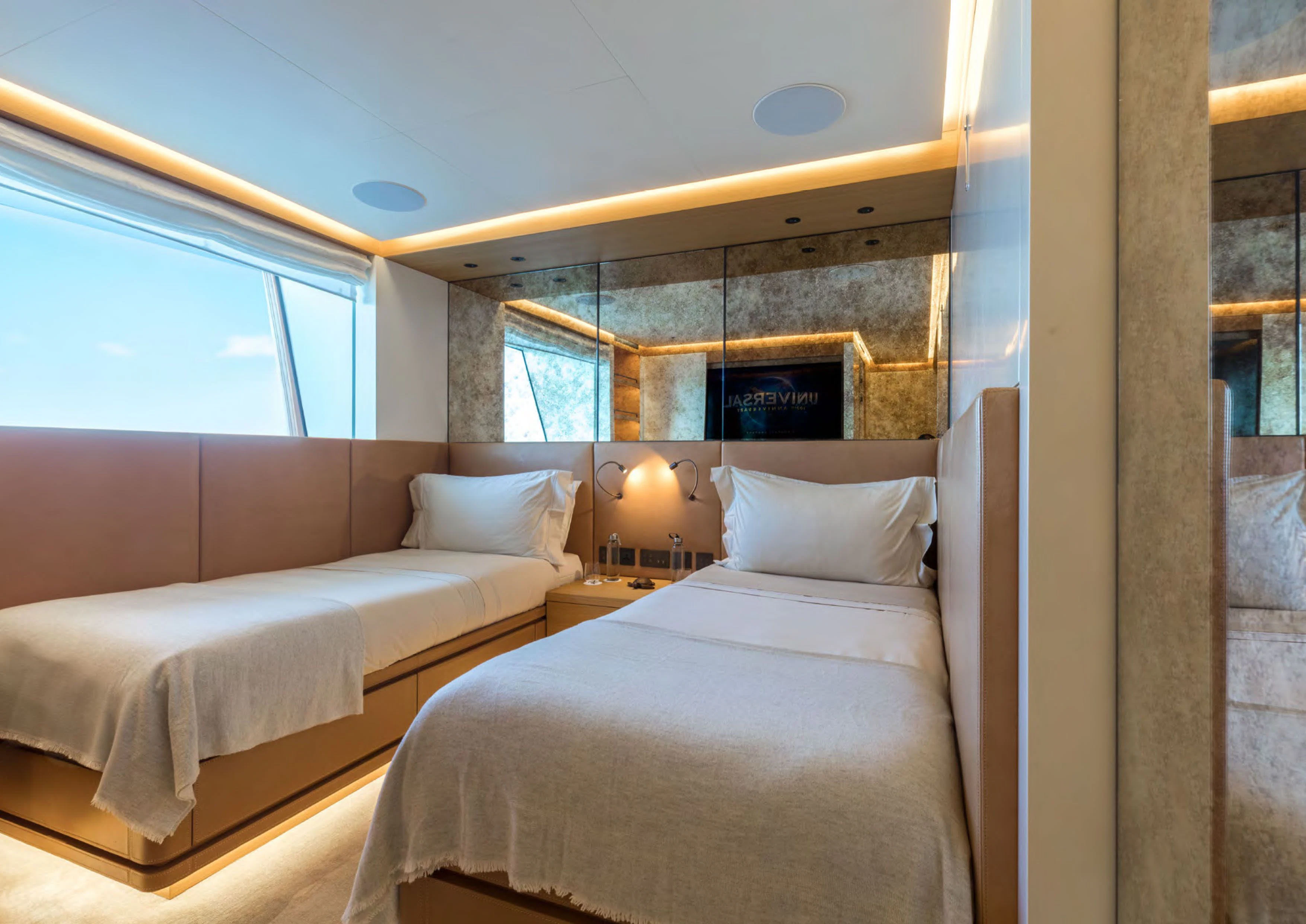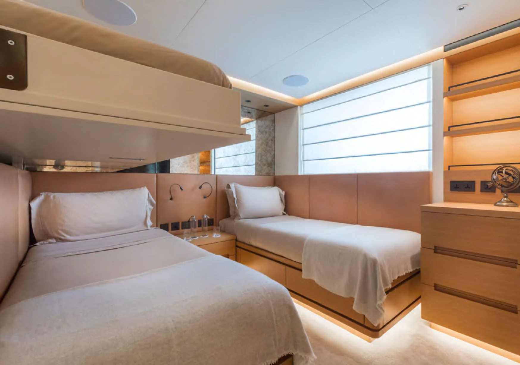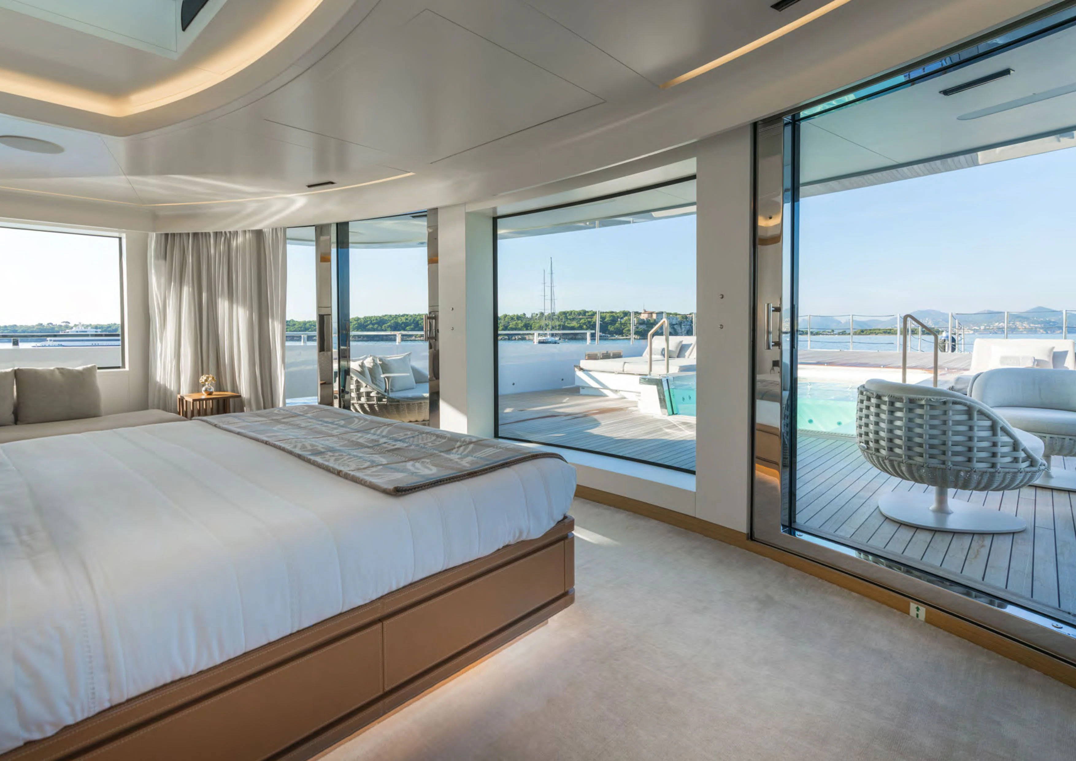 The master stateroom stands as a testament to uncompromising luxury with its king-sized bed, walk-in wardrobe, private lounge area and en-suite facilities complete with high-end fixtures and fittings. Additional guest cabins follow suit offering equally luxurious accommodations ensuring every guest experiences unrivaled comfort during their stay onboard.