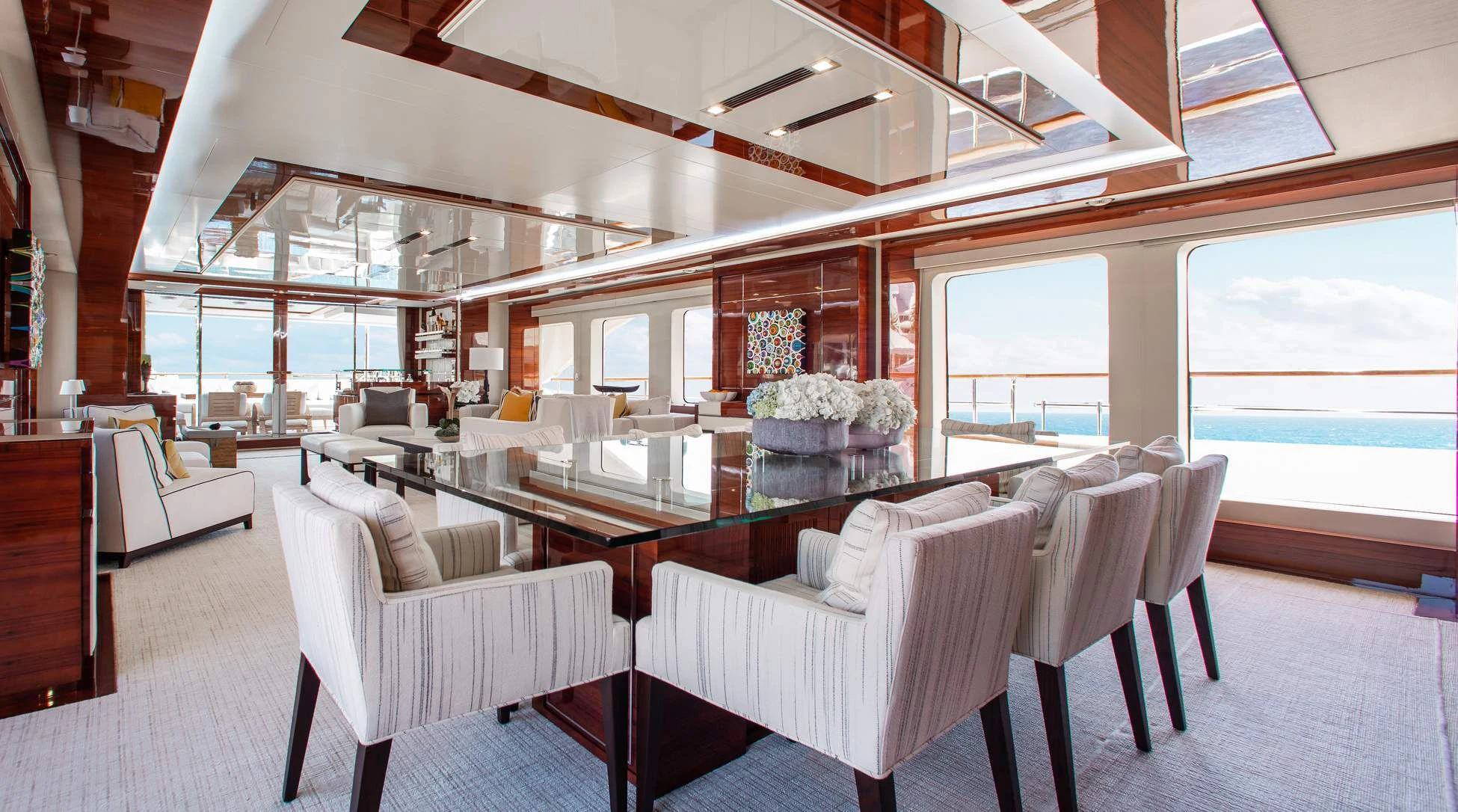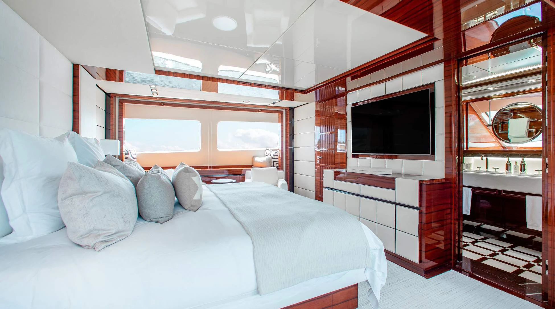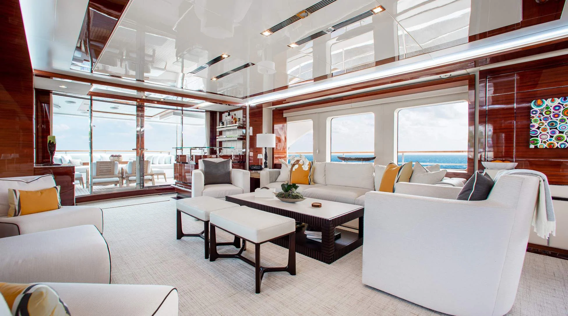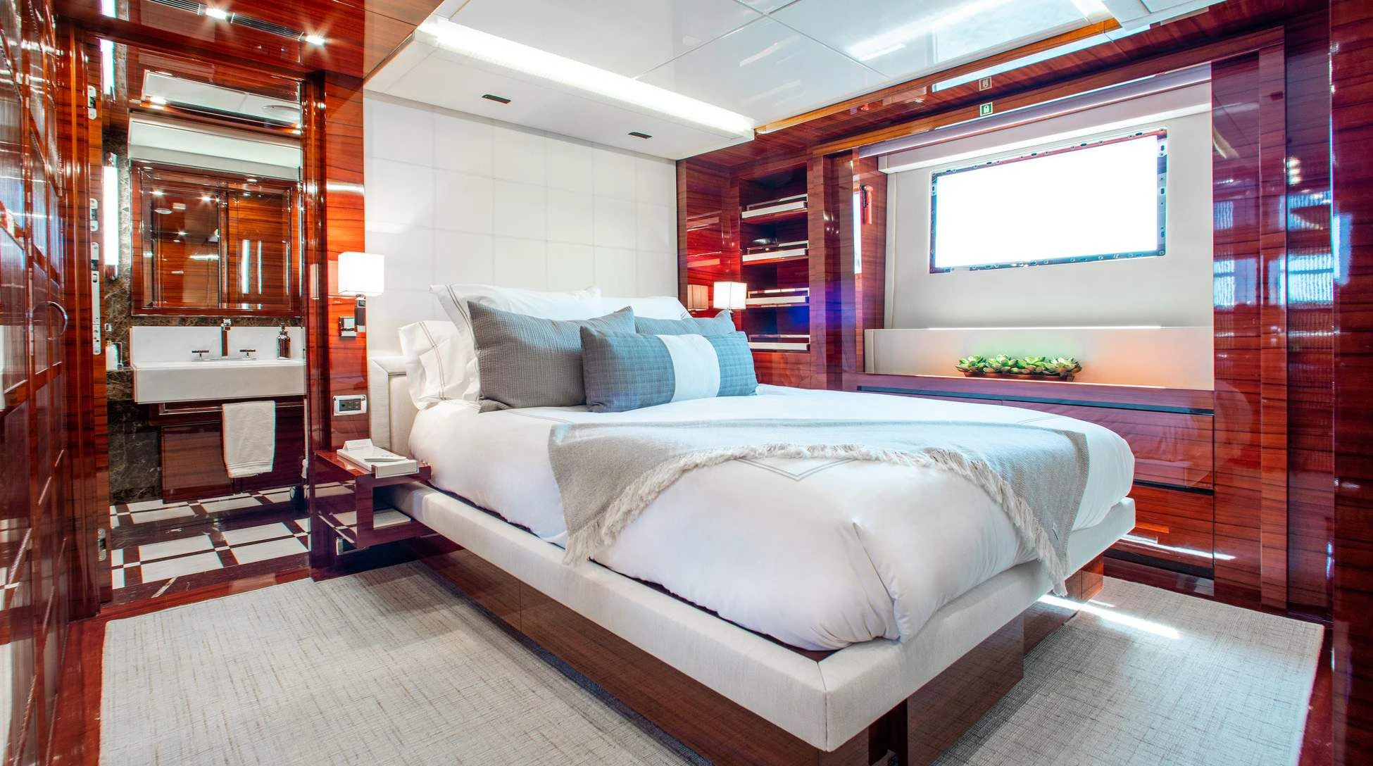 Step aboard ALLORA to discover her remarkable interiors that can comfortably accommodate up to twelve guests across five luxurious cabins. A crew of seven ensures impeccable service for all guests onboard. The interior design reflects contemporary style with subtle undertones of classic elegance – a signature trait associated with Benetti creations.