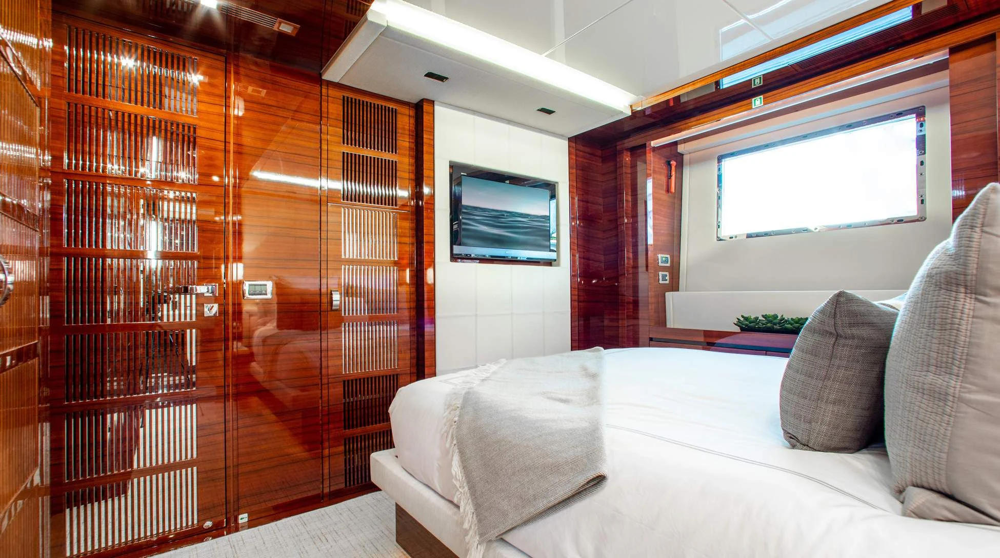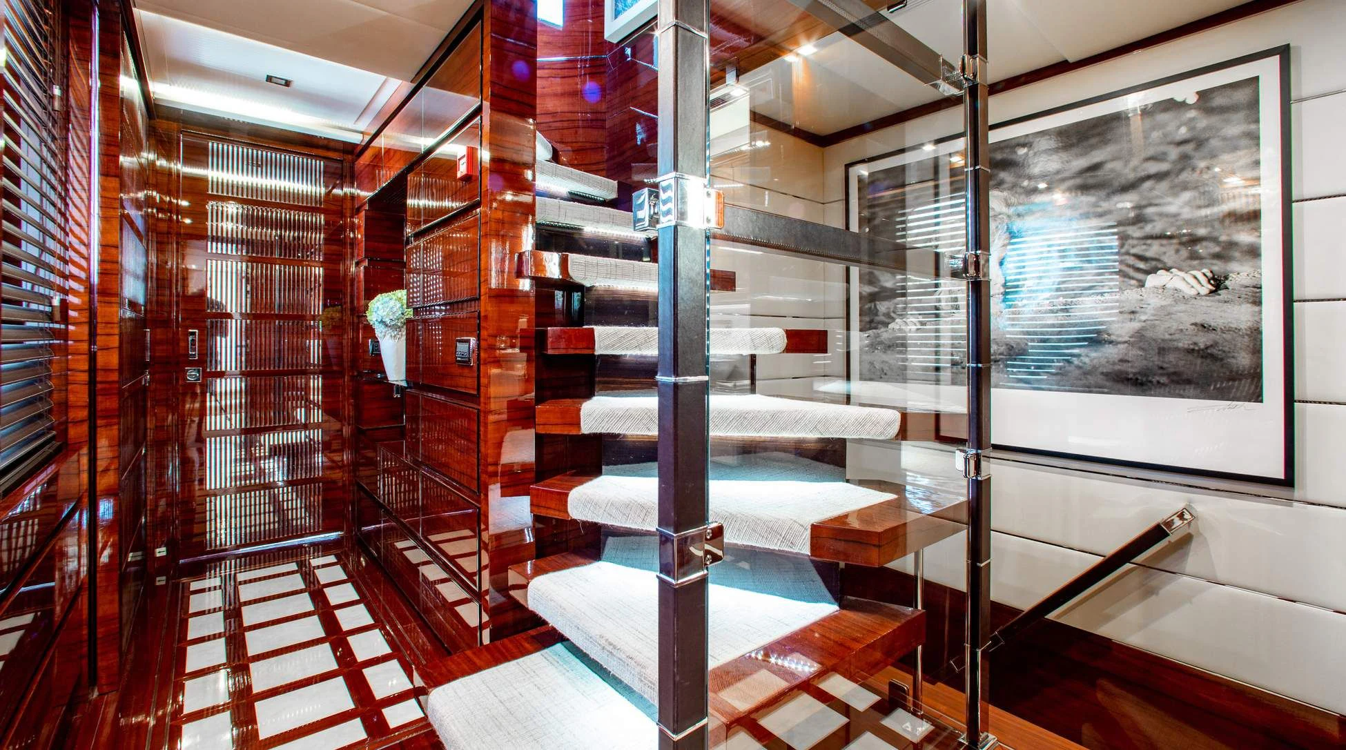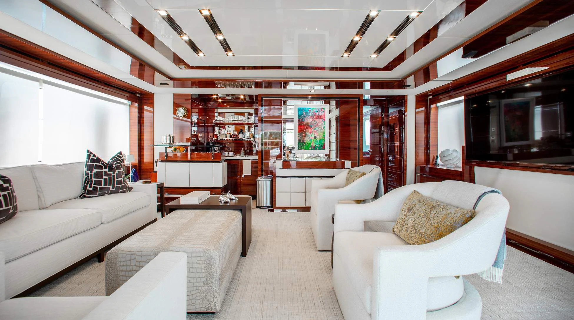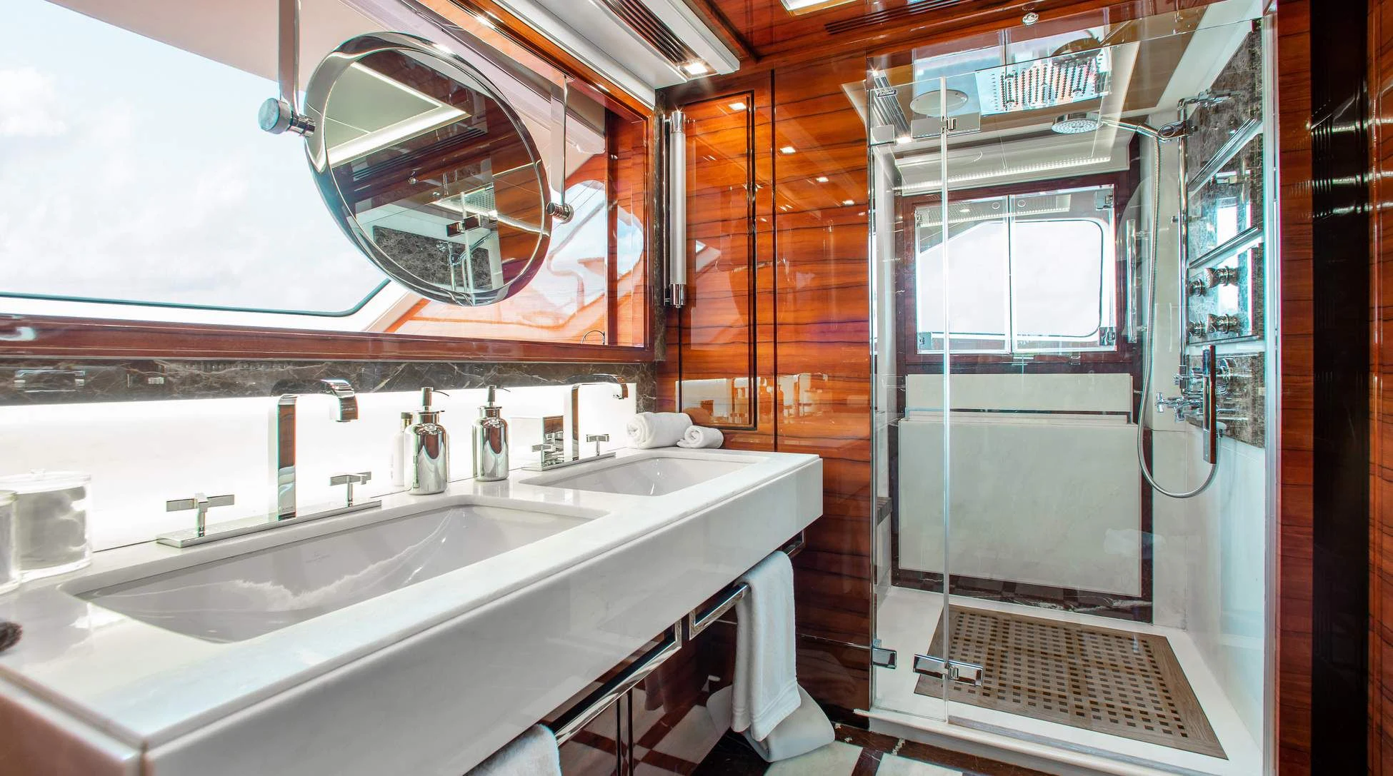 Step aboard ALLORA to discover her remarkable interiors that can comfortably accommodate up to twelve guests across five luxurious cabins. A crew of seven ensures impeccable service for all guests onboard. The interior design reflects contemporary style with subtle undertones of classic elegance – a signature trait associated with Benetti creations.