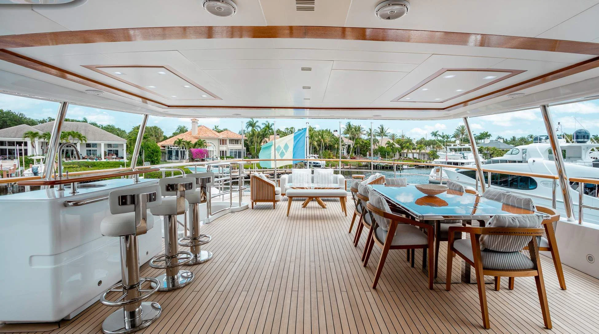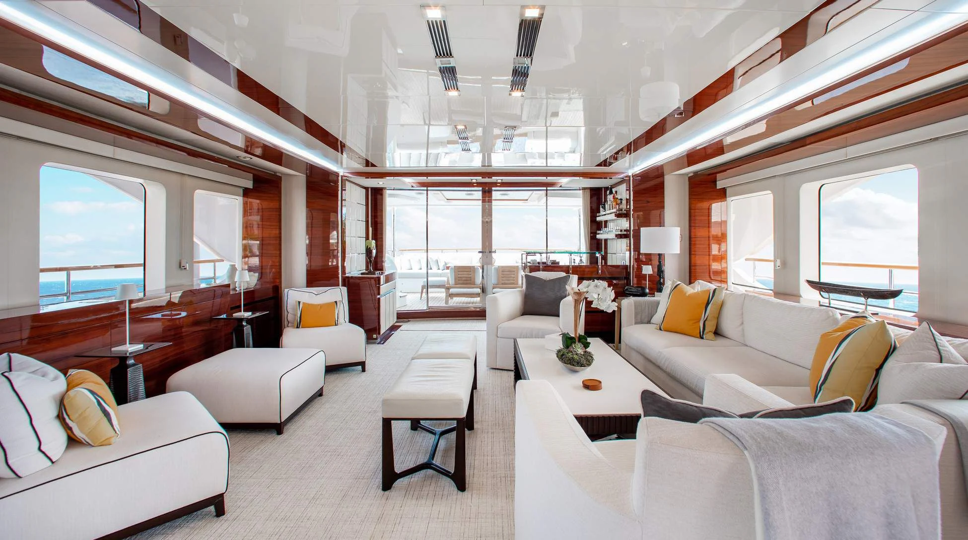 ALLORA's exterior design epitomizes elegance and sophistication. At an overall length of nearly 37 meters and boasting a beam width close to eight meters, she cuts through water with grace and poise. Her cruising speed is set at a comfortable 15 knots, while her maximum speed reaches up to 16 knots - perfect for those who appreciate both leisurely sojourns and exhilarating sea adventures alike.