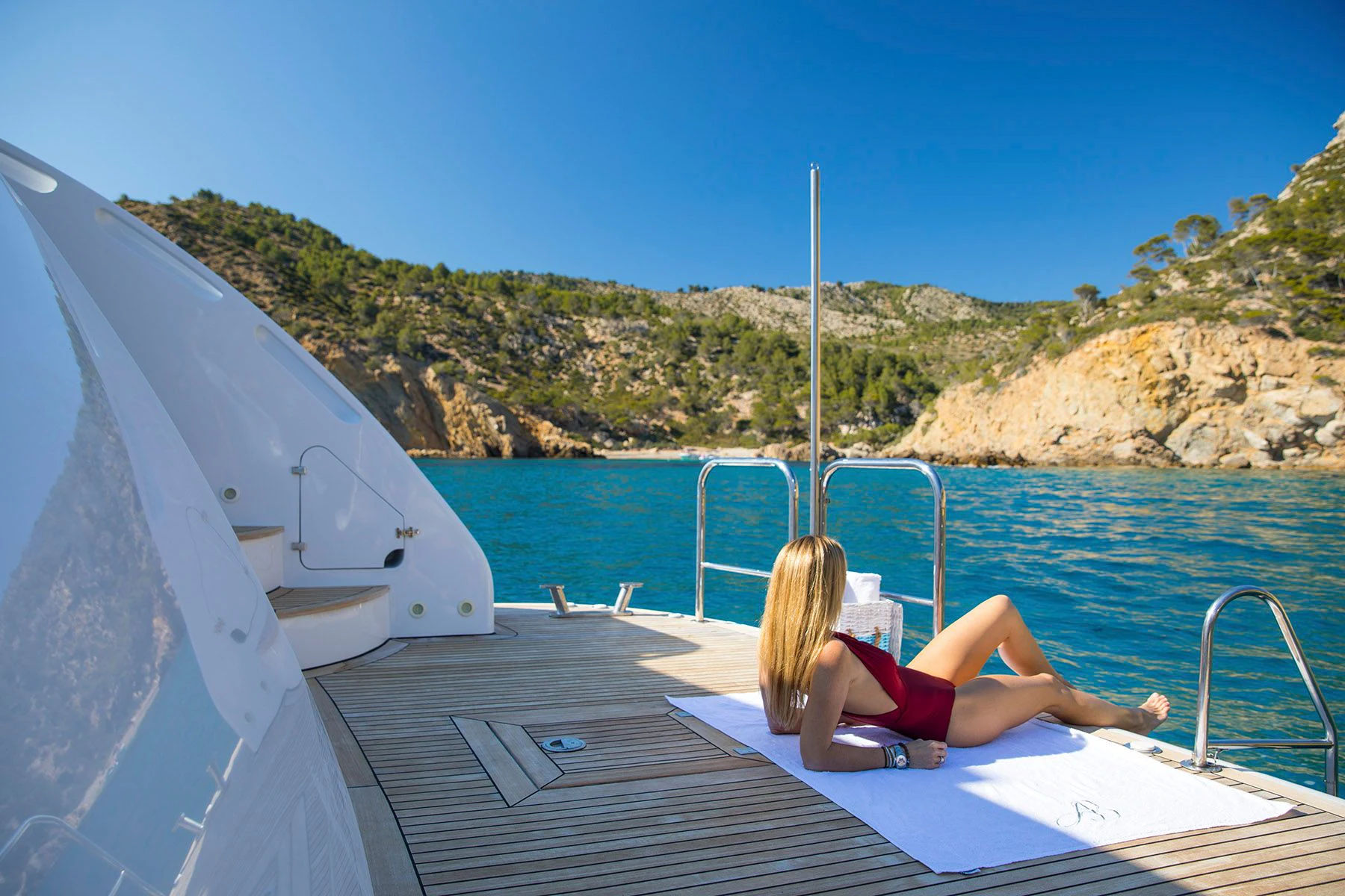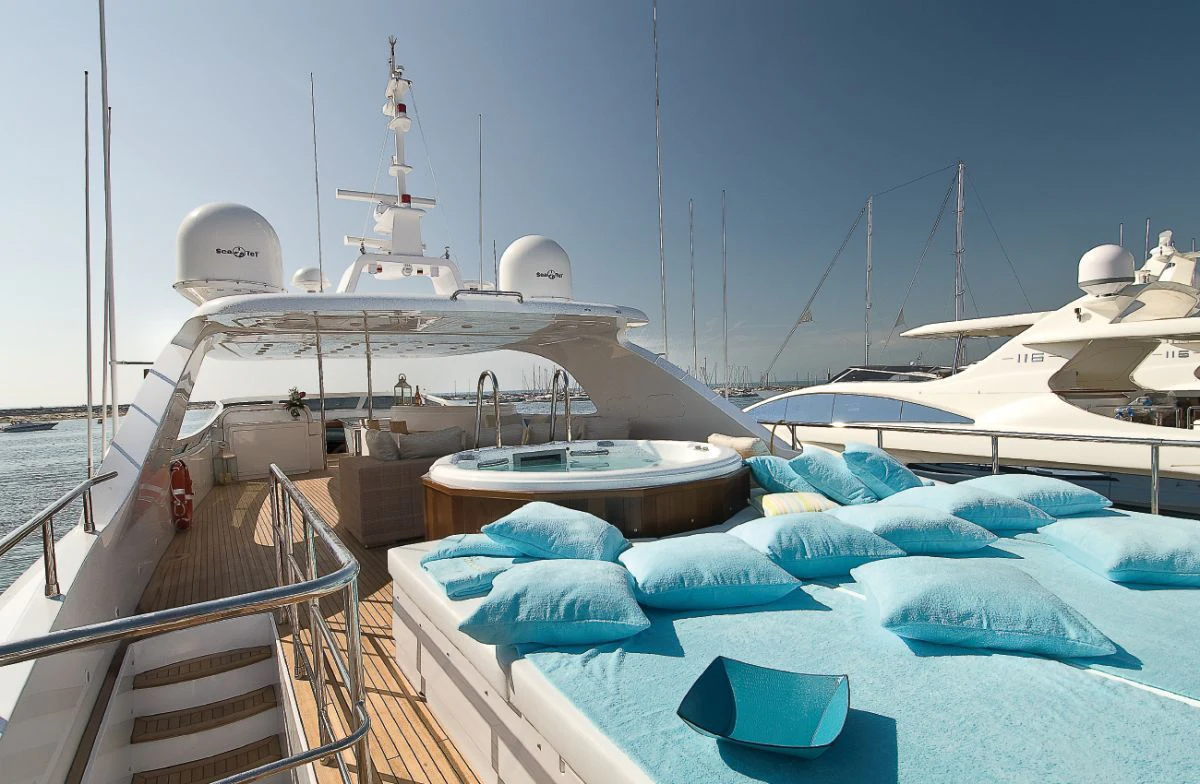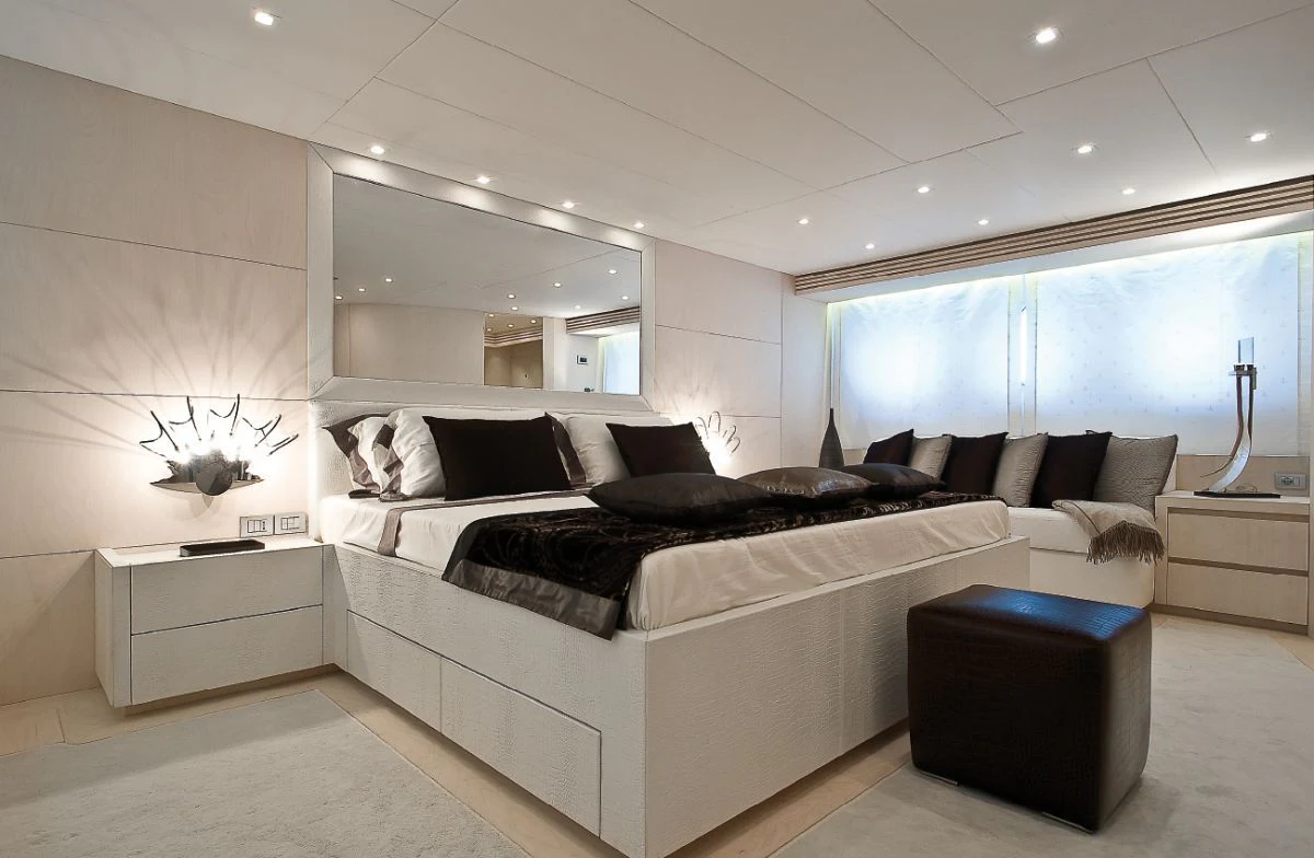 Step inside the ALWAYS BELIEVE and you will be mesmerized by her sumptuous interior design. The color palette exudes warmth and sophistication, creating an inviting ambiance throughout her living spaces. She accommodates up to twelve guests across five beautifully appointed cabins that offer unrivaled comfort for a restful night's sleep after a day full of adventures at sea. Eight dedicated crew members ensure all needs are catered to with utmost precision and discretion.