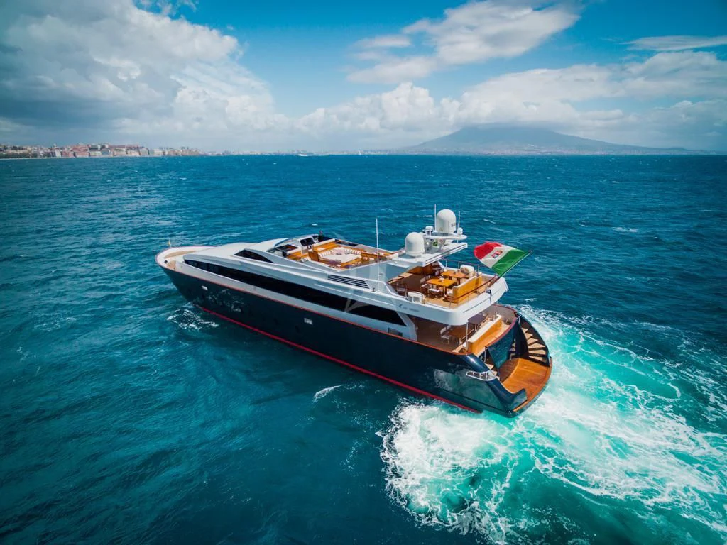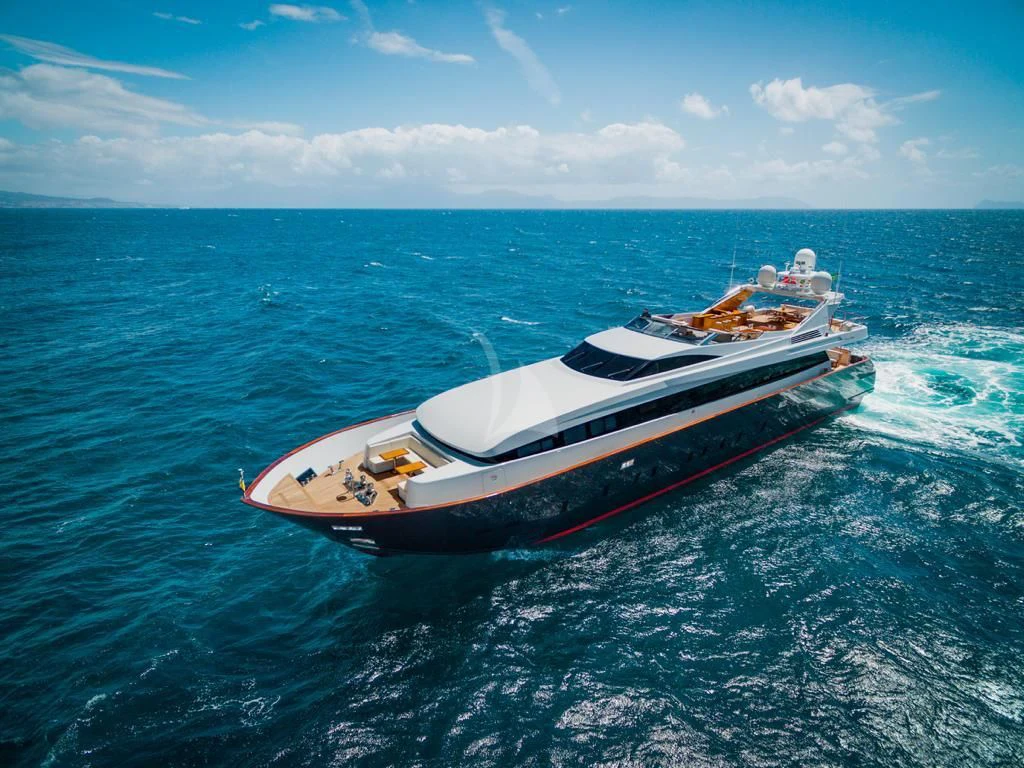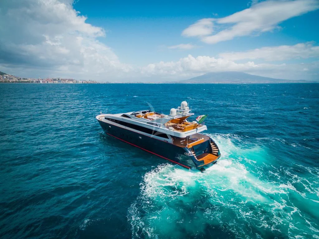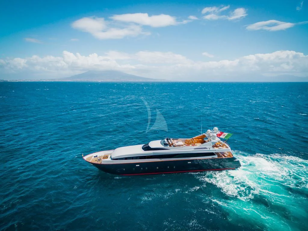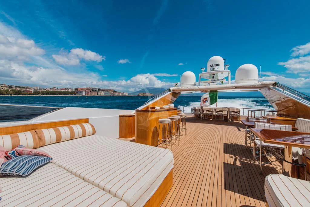 Introducing ANGRA TOO, a majestic motor yacht custom-built by the renowned Italian shipyard Costruzioni Navali Tigullio Castagnola in 2015 and refitted to perfection in 2021. Stretching an impressive 124 feet (38 meters) in length with a beam of over 26 feet (8.1 meters), this vessel embodies luxury and grandeur on water. Its exterior design is a spectacle to behold, boasting the elegance of wood hull material that adds a touch of classic sophistication to its modern features.