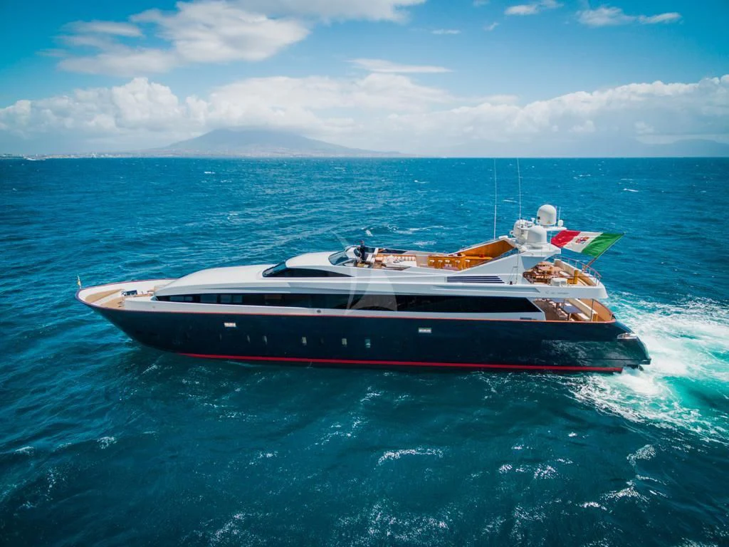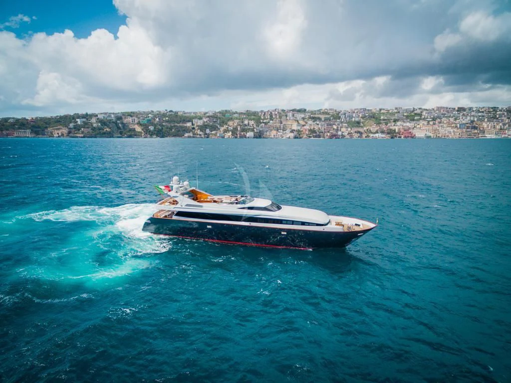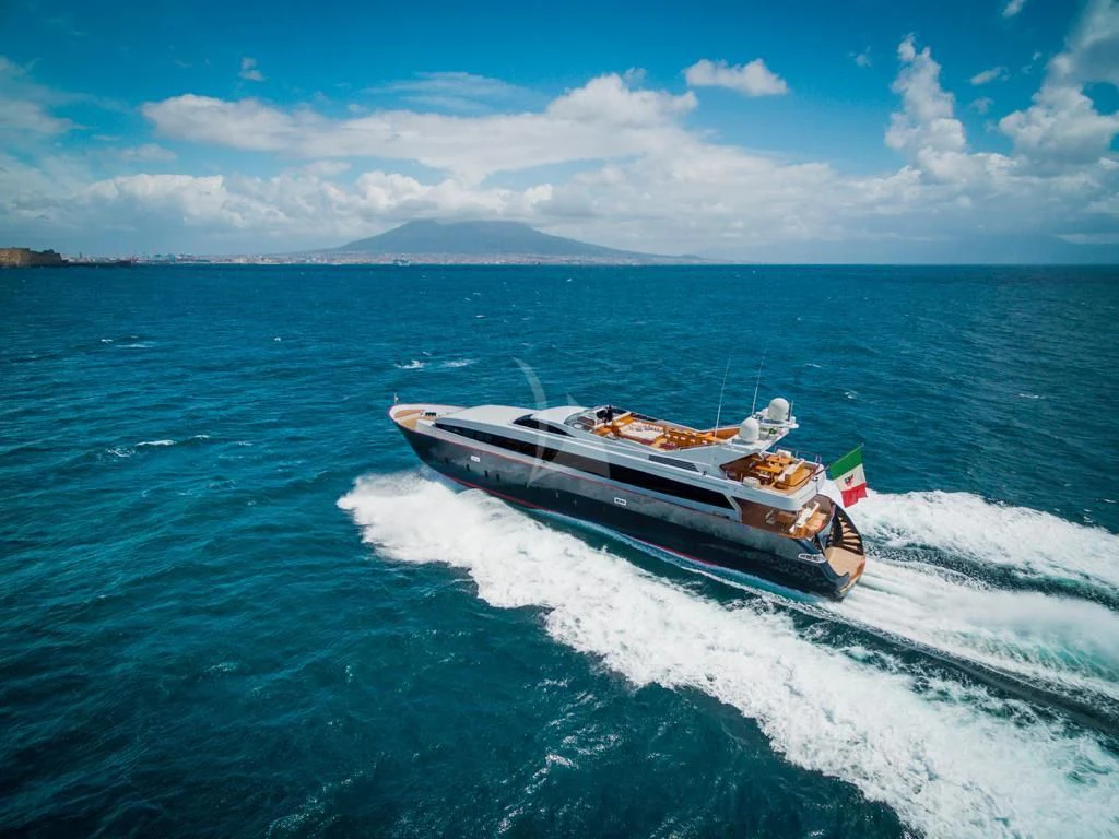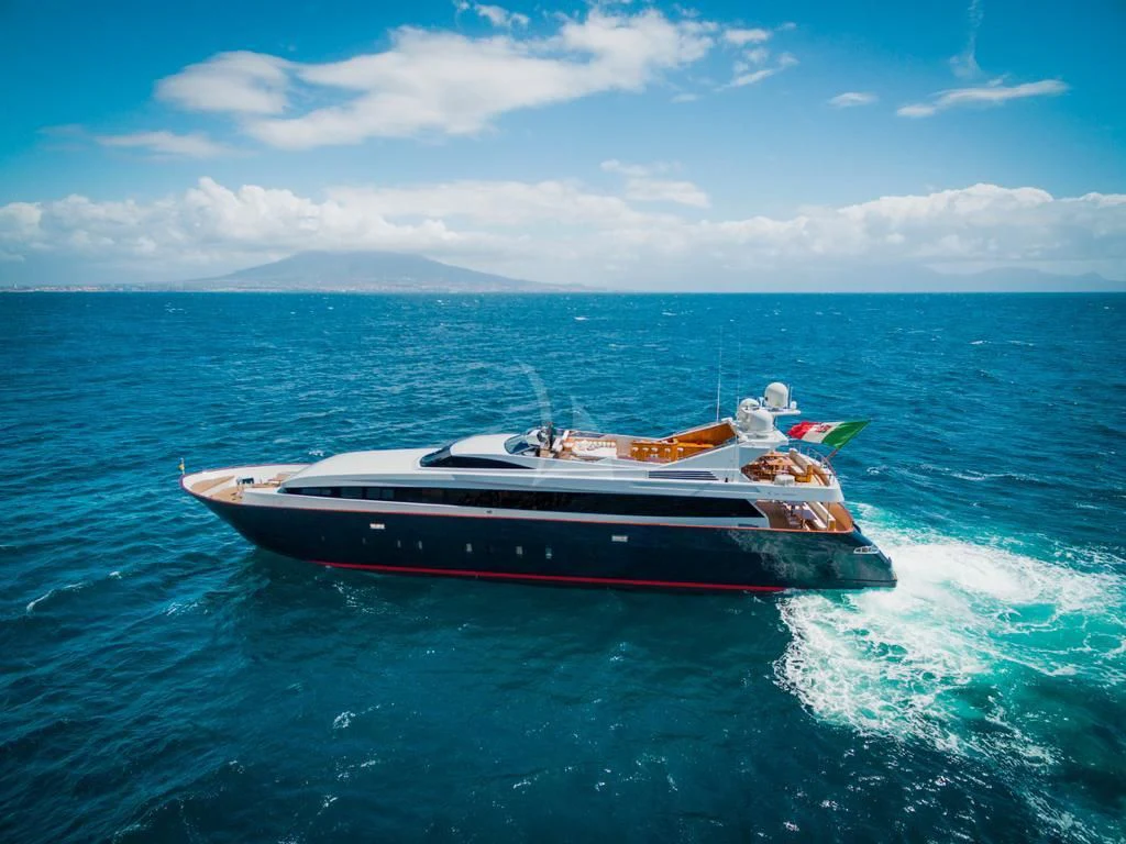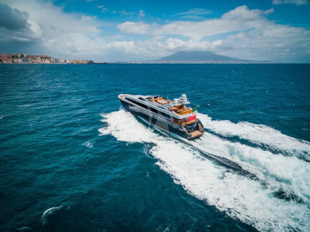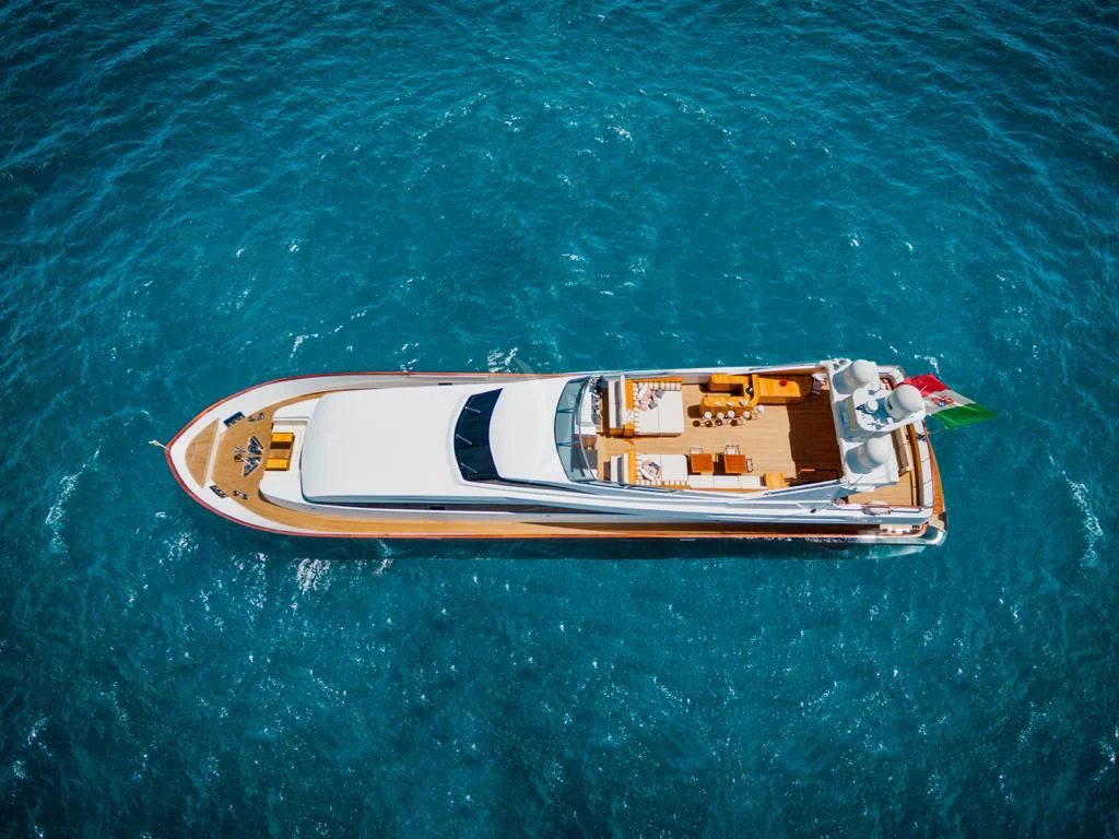 Introducing ANGRA TOO, a majestic motor yacht custom-built by the renowned Italian shipyard Costruzioni Navali Tigullio Castagnola in 2015 and refitted to perfection in 2021. Stretching an impressive 124 feet (38 meters) in length with a beam of over 26 feet (8.1 meters), this vessel embodies luxury and grandeur on water. Its exterior design is a spectacle to behold, boasting the elegance of wood hull material that adds a touch of classic sophistication to its modern features.