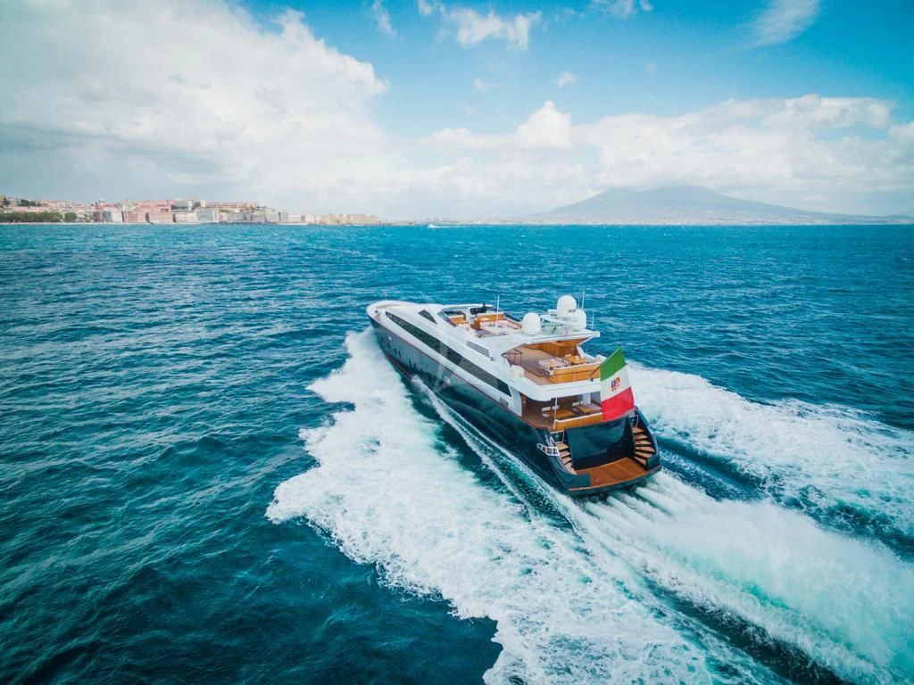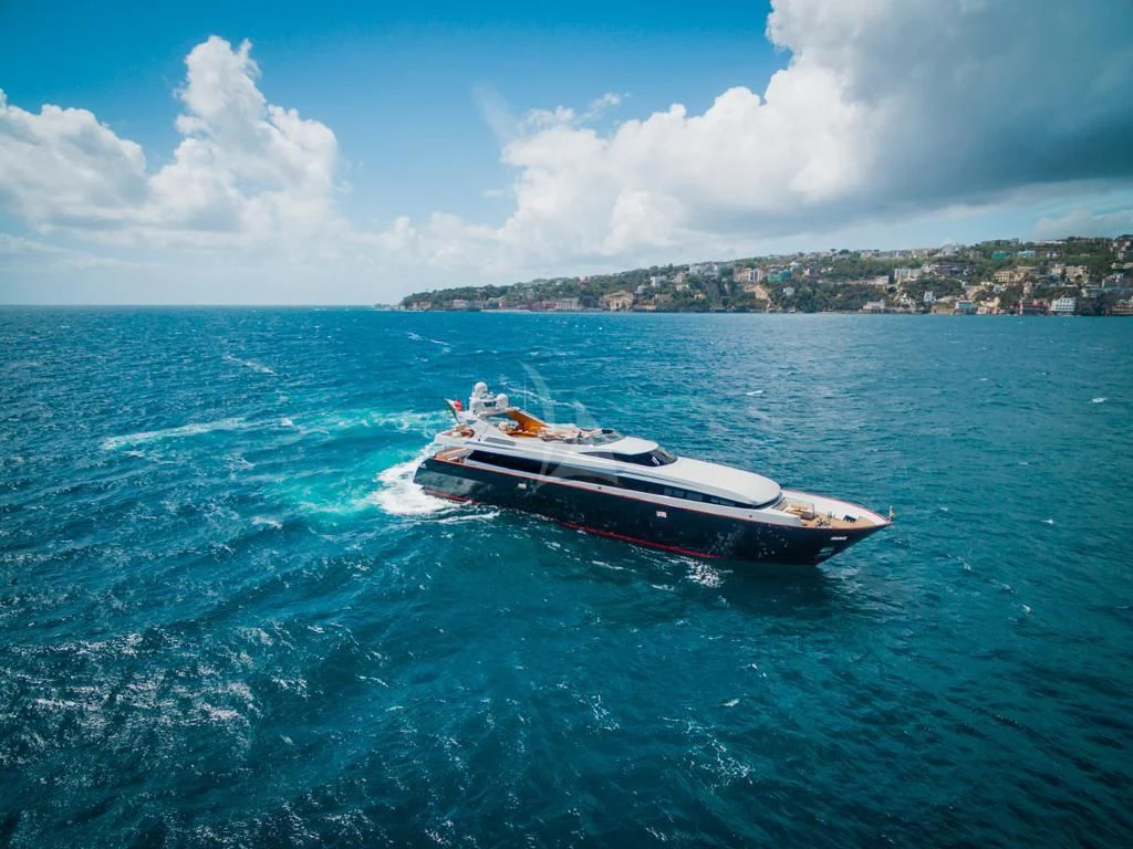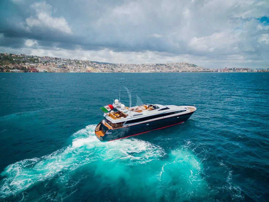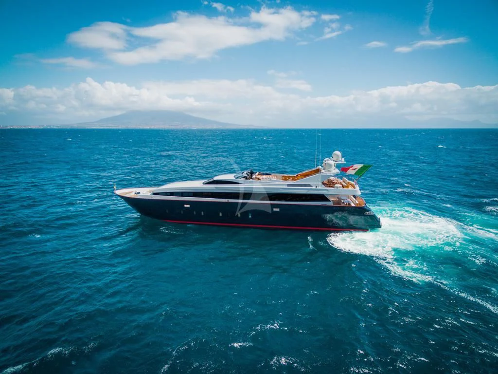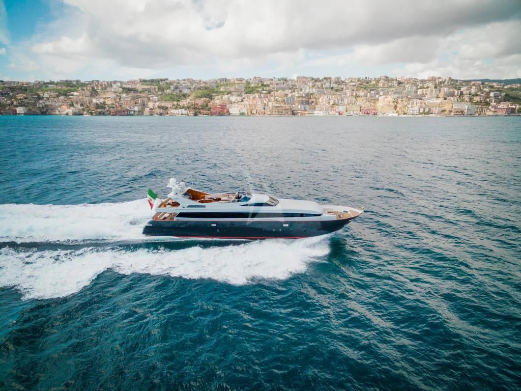 Introducing ANGRA TOO, a majestic motor yacht custom-built by the renowned Italian shipyard Costruzioni Navali Tigullio Castagnola in 2015 and refitted to perfection in 2021. Stretching an impressive 124 feet (38 meters) in length with a beam of over 26 feet (8.1 meters), this vessel embodies luxury and grandeur on water. Its exterior design is a spectacle to behold, boasting the elegance of wood hull material that adds a touch of classic sophistication to its modern features.