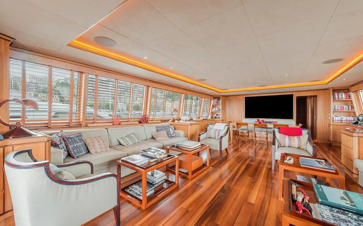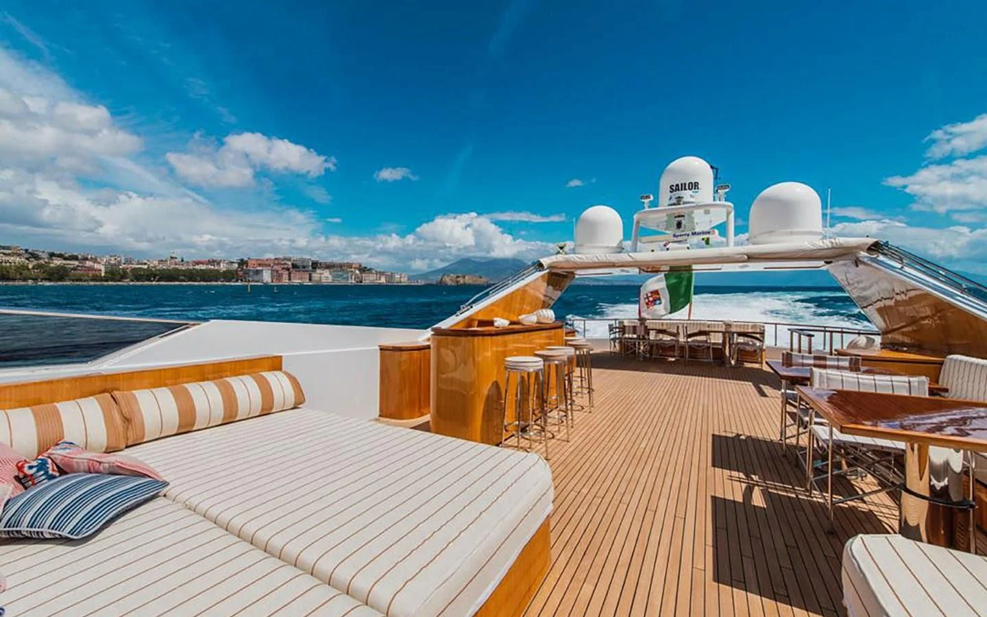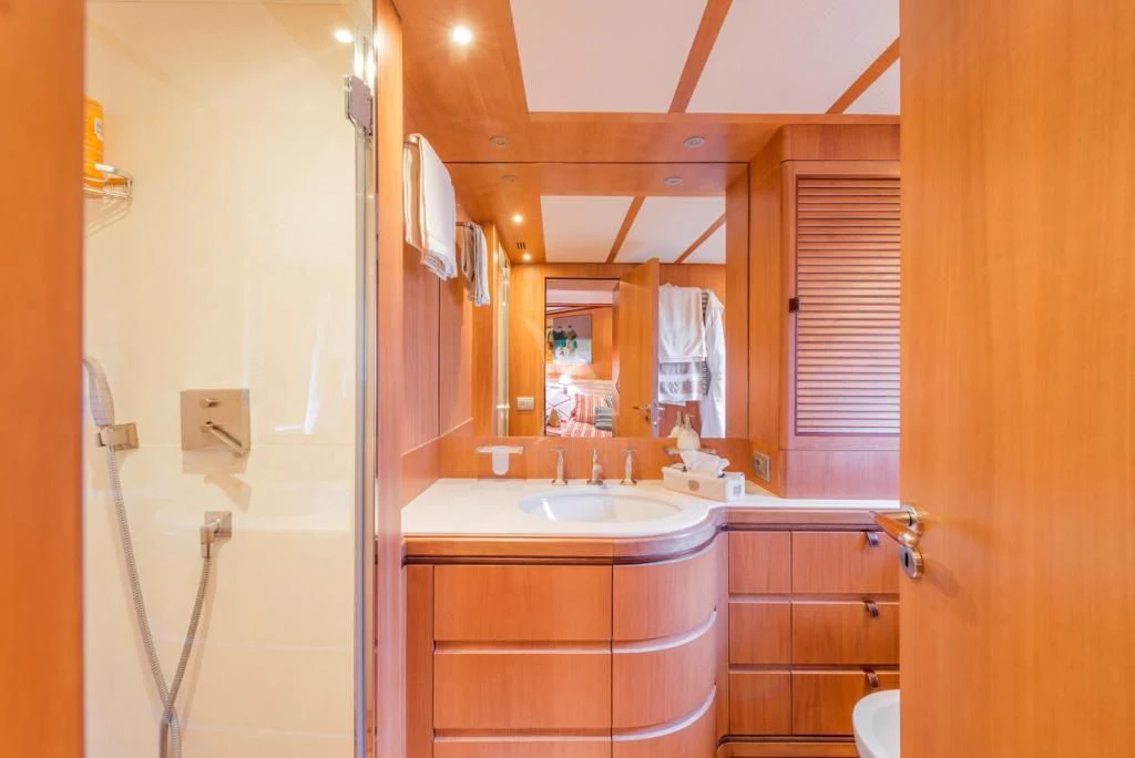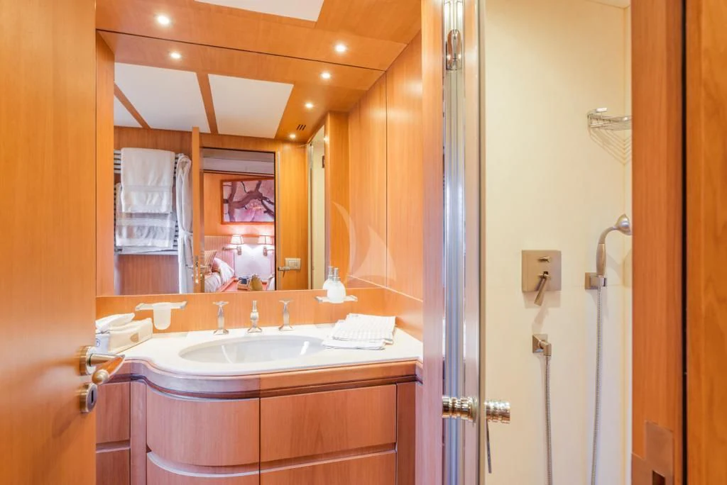 The main salon is an epitome of refined elegance with its tasteful décor and sophisticated ambience; it serves as a perfect backdrop for social gatherings or quiet relaxation alike. A fully-equipped gym caters to fitness enthusiasts who don't want their workout routines interrupted even when at sea. With Wi-Fi connectivity throughout the yacht, staying connected is never an issue regardless of where you choose to unwind.