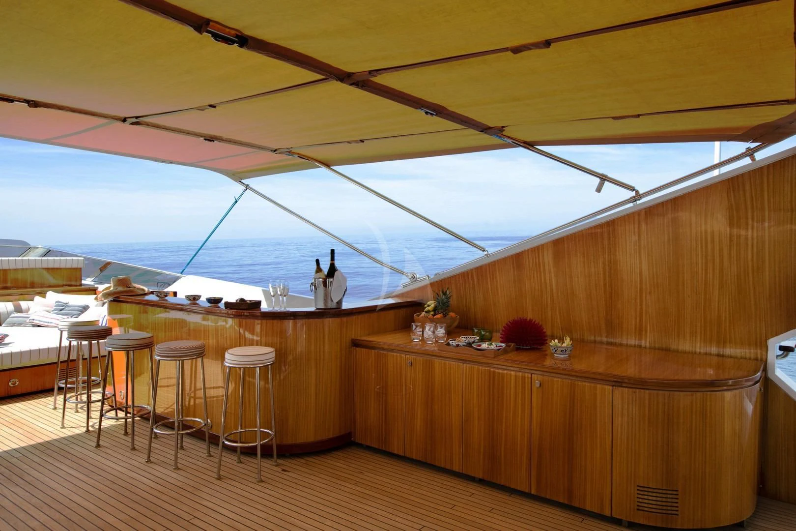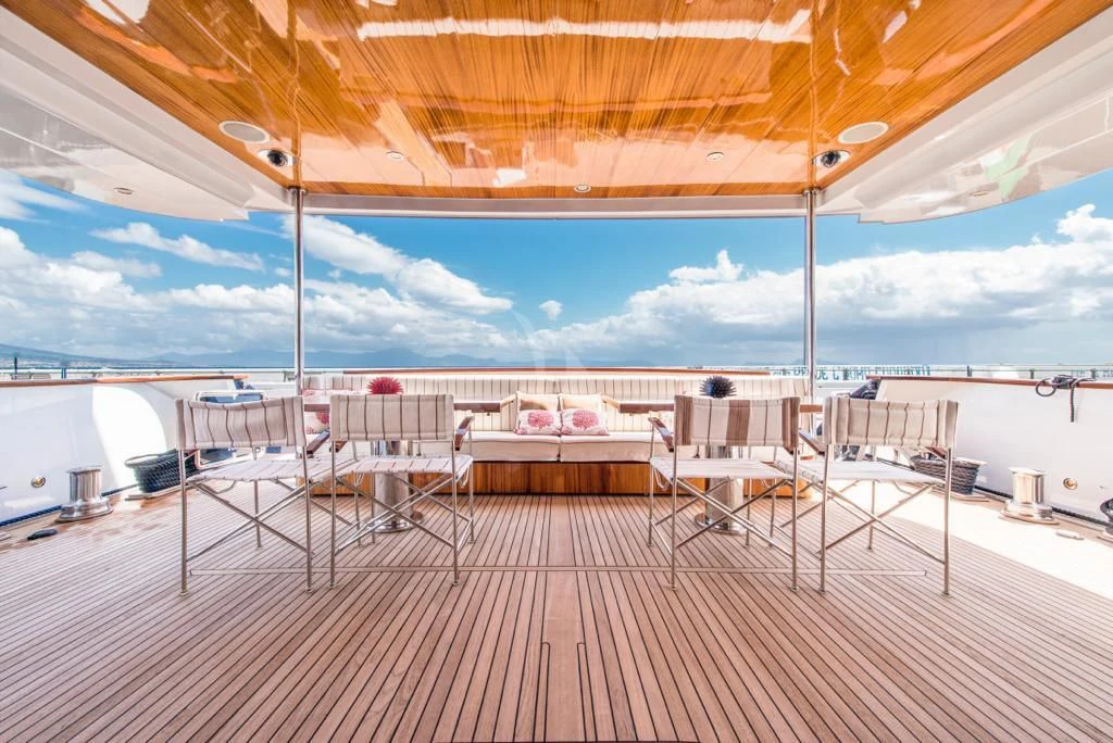 Upon setting foot on ANGRA TOO, you are welcomed by expansive outdoor spaces designed for leisure and entertainment. The flybridge offers panoramic views of the surrounding seascape, while alfresco dining areas provide an intimate setting for memorable meals under the stars. Sun decks beckon guests to bask in the warmth of sun-kissed afternoons or enjoy cool evening breezes. The yacht's cruising speed of 28 knots and maximum speed of 31 knots ensure swift voyages across vast waters without sacrificing comfort, thanks to onboard amenities such as At-Anchor Stabilizers.