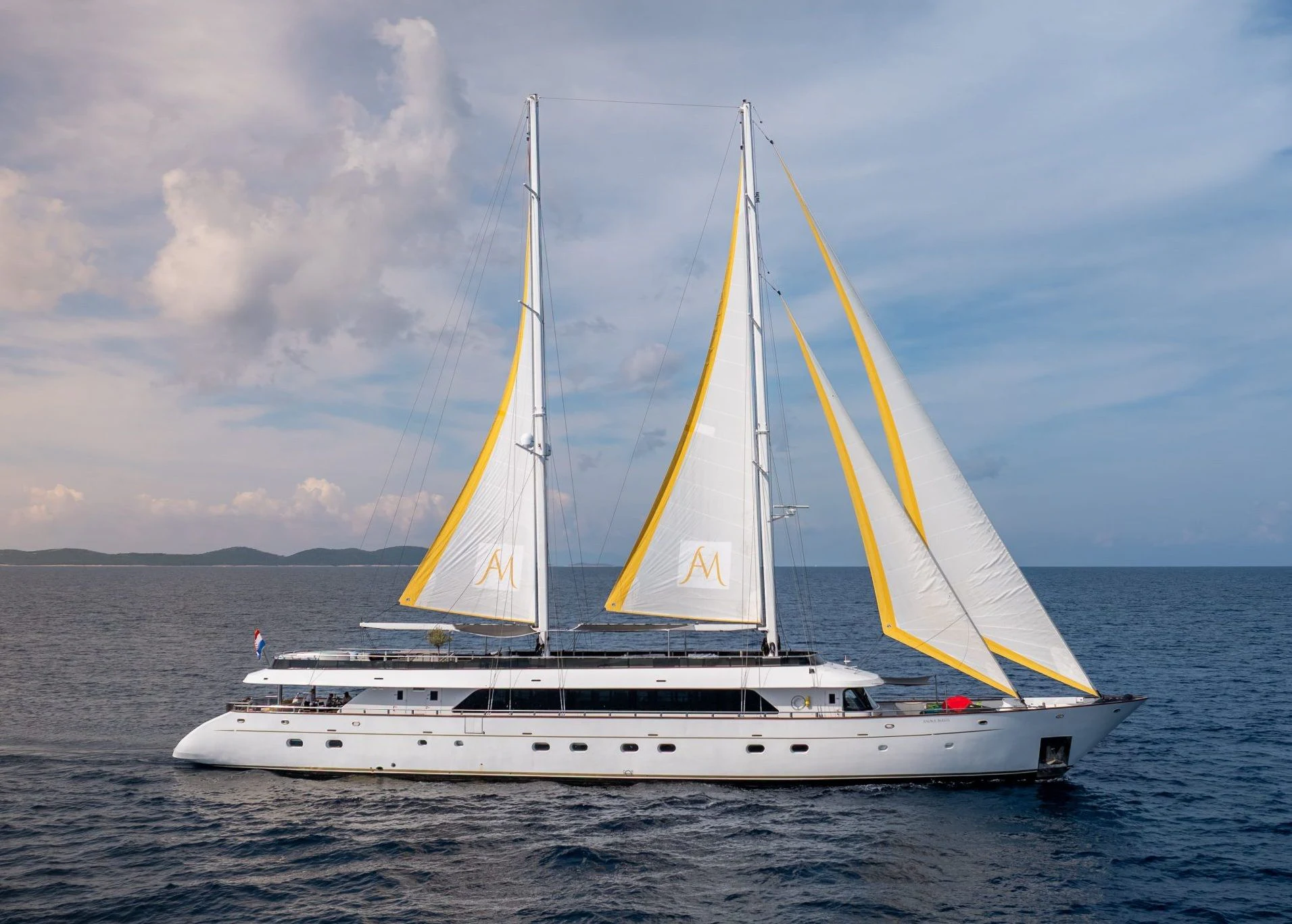 Introducing a captivating masterpiece of nautical design, the ANIMA MARIS. A majestic motorsailer built by Nuic Nautika in 2021, she is a custom model with a gross tonnage of 374. With her impressive length overall (LOA) of 160 feet or 48.01 meters and beam measurement of 26 feet and 3 inches or approximately 8.3 meters, she is an embodiment of grandeur and elegance on the sea.