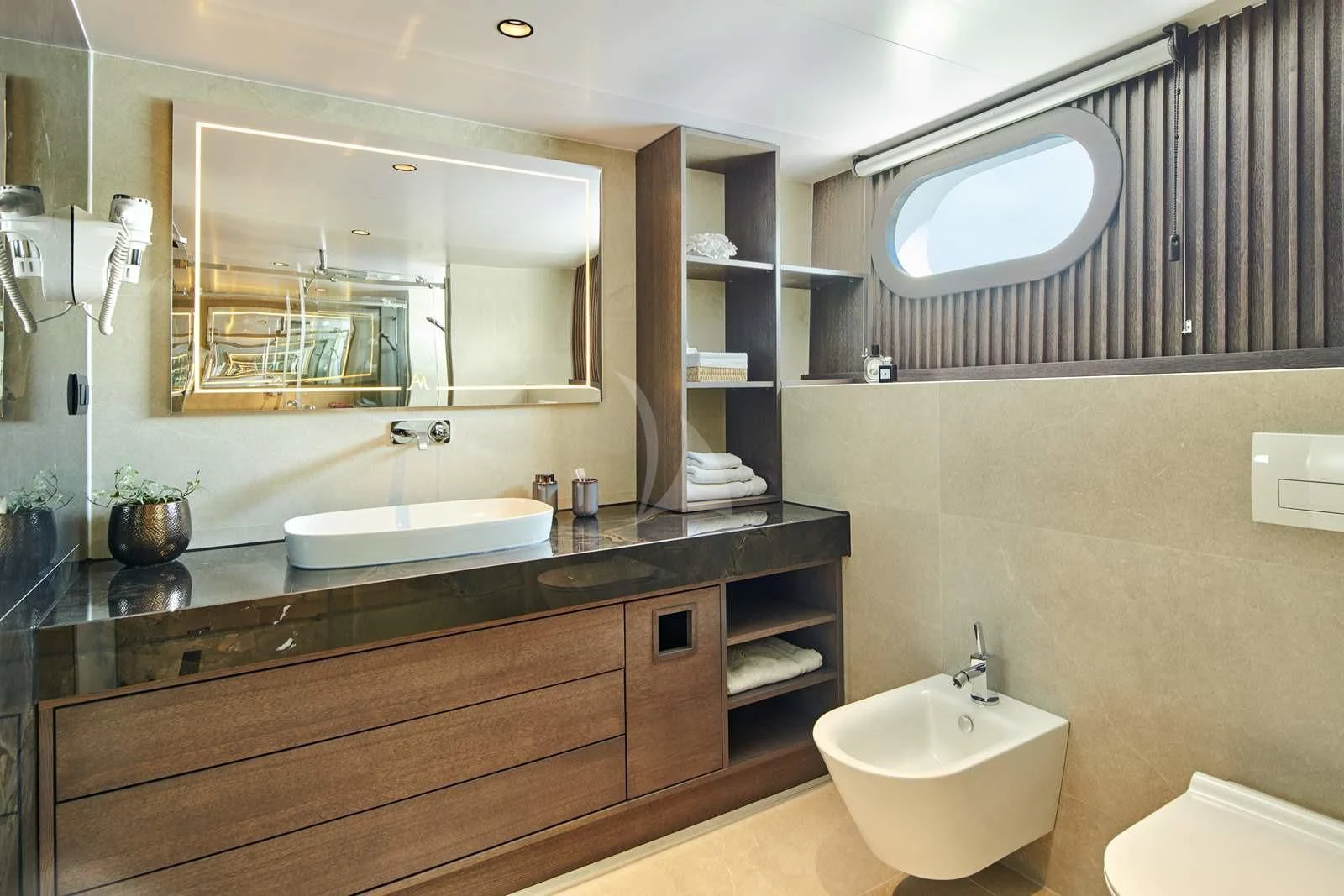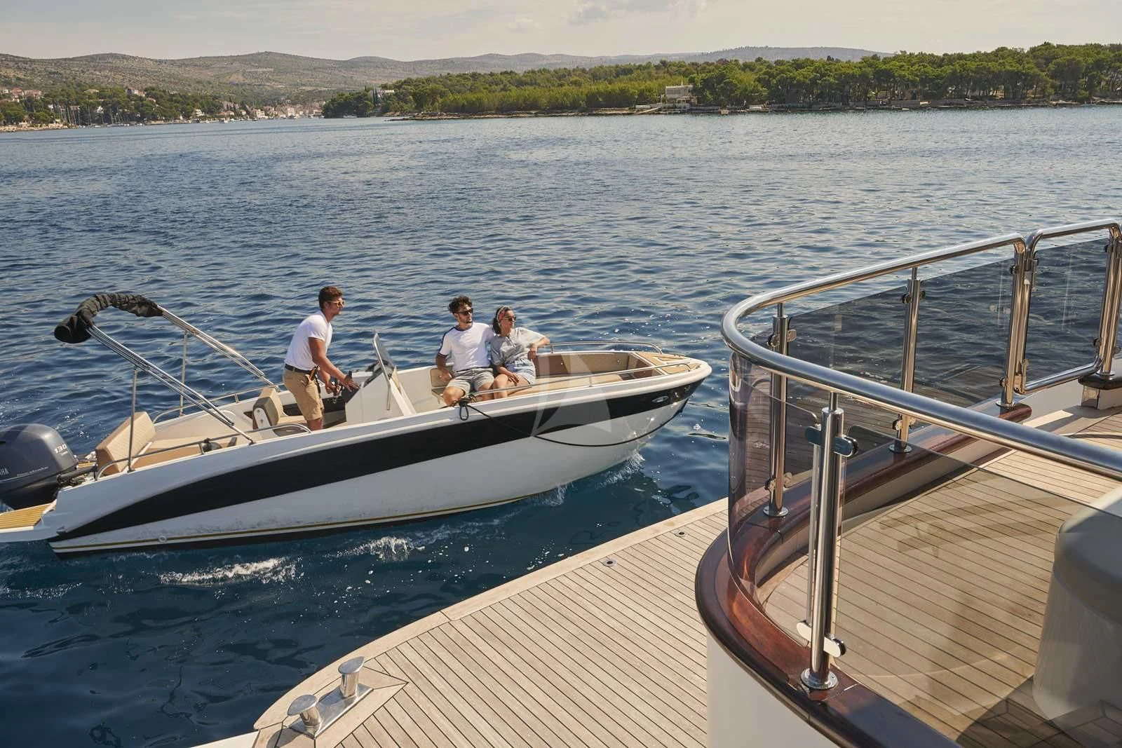 ANIMA MARIS offers more than just comfortable accommodations; she boasts an array of onboard amenities designed for recreation and relaxation alike. Among these is a personal watercraft that adds thrill to every voyage as well as other entertainment options tailored for everyone's taste.