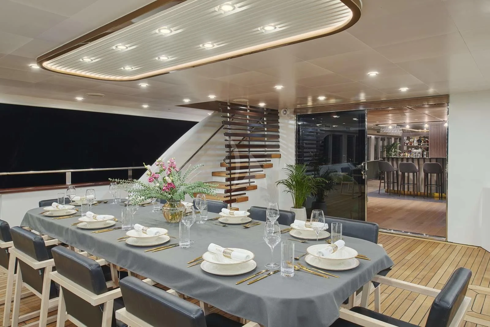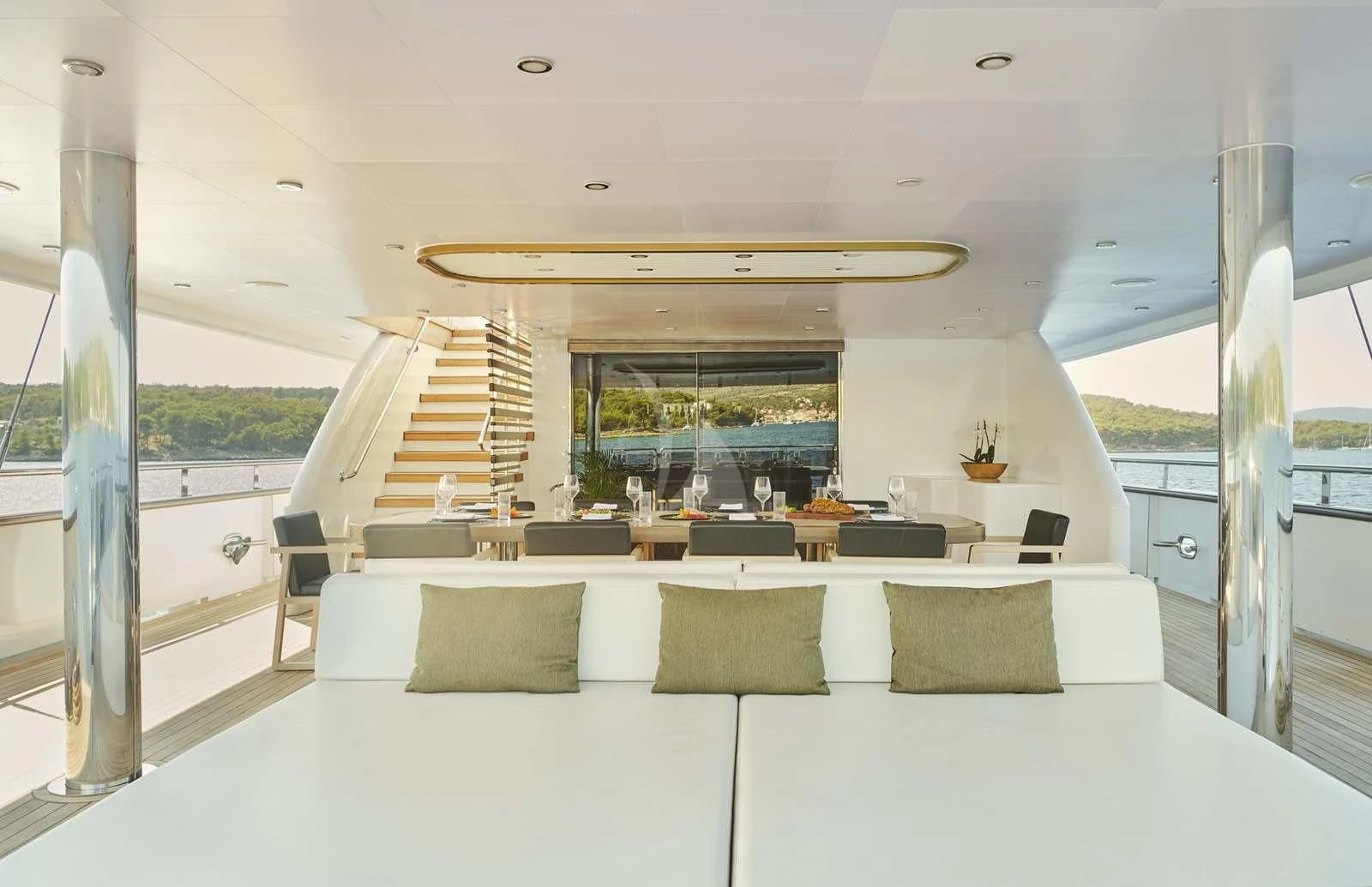 As you step aboard ANIMA MARIS, be prepared to be mesmerized by her exquisite exterior spaces that offer ample opportunities for alfresco dining, sunbathing on sundecks, and lounging areas where guests can relax while taking in breathtaking ocean views. The yacht's exterior designer has meticulously crafted these open-air spaces to provide guests with the ultimate luxury sailing experience.
