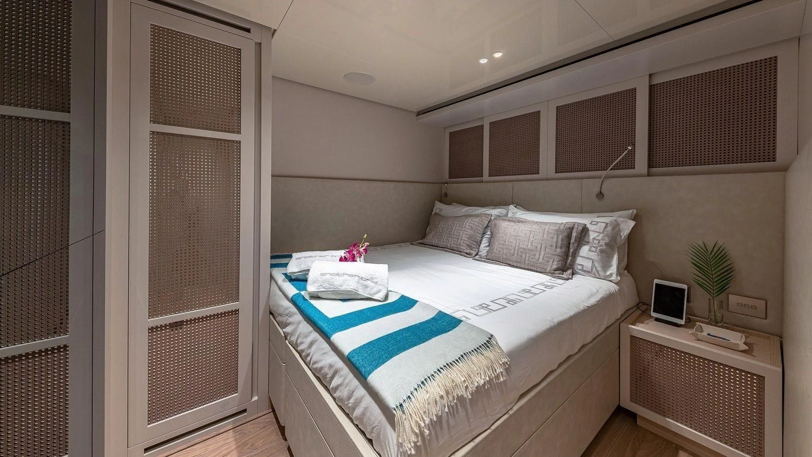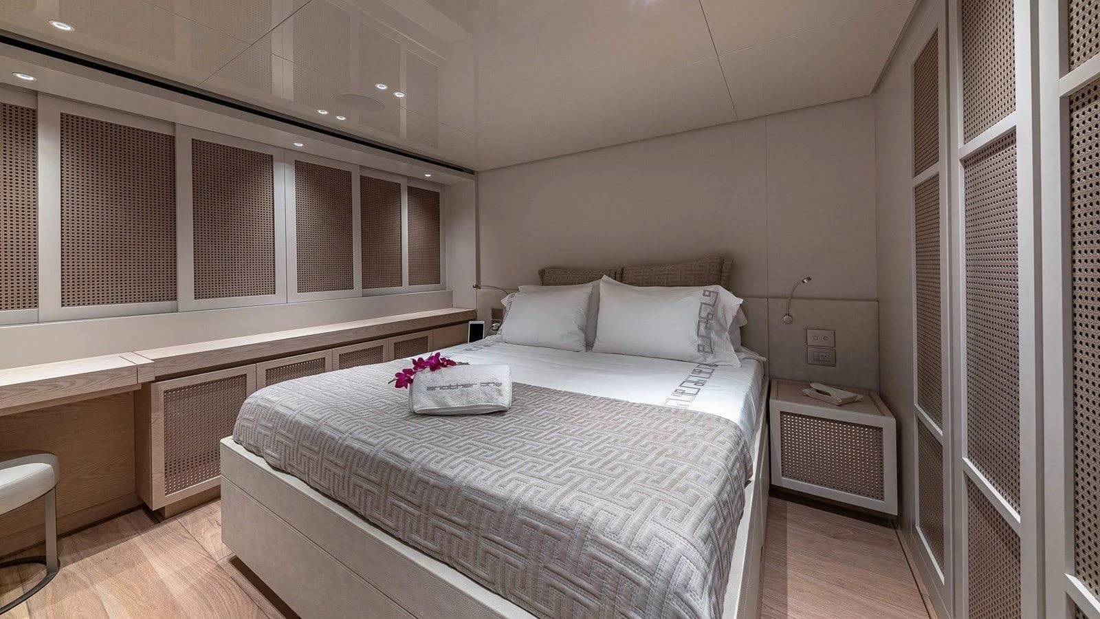 Step inside ANOTHER ONE and you'll find yourself immersed in an ambiance defined by luxury and tranquility. The interior style pays homage to modern elegance without compromising on warmth or comfort - creating an environment that feels both luxurious yet homey for its guests. Accommodating up to nine guests across four beautifully appointed cabins, each room offers exquisite living spaces adorned with high-end finishes and plush furnishings tailored for ultimate comfort. A crew capacity for five ensures top-tier service around-the-clock during your voyage.