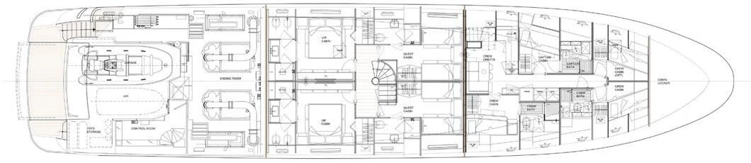 Beyond these amenities lie other remarkable features that set ANYTHING GOES V apart - including state-of-the-art gym facilities that ensure fitness routines remain uninterrupted even at sea; a movie theater providing cinematic experiences within comfort; and a beach club that brings one close to nature's splendor.