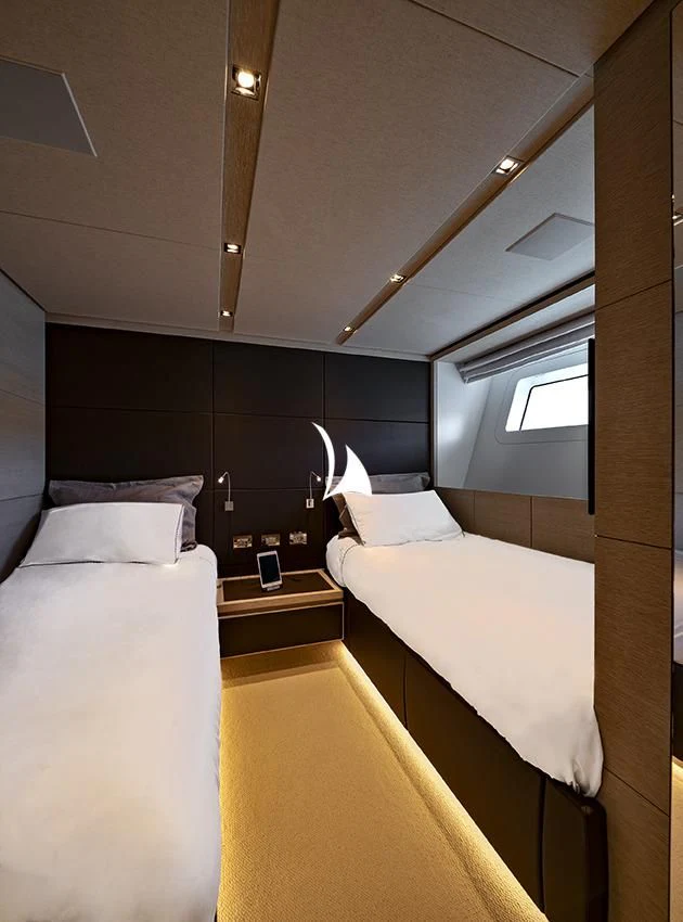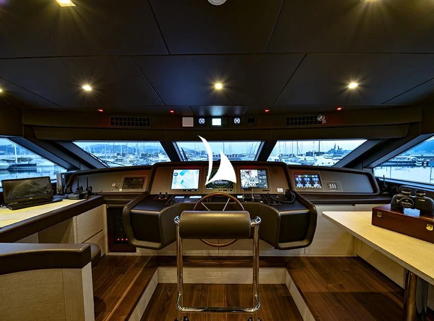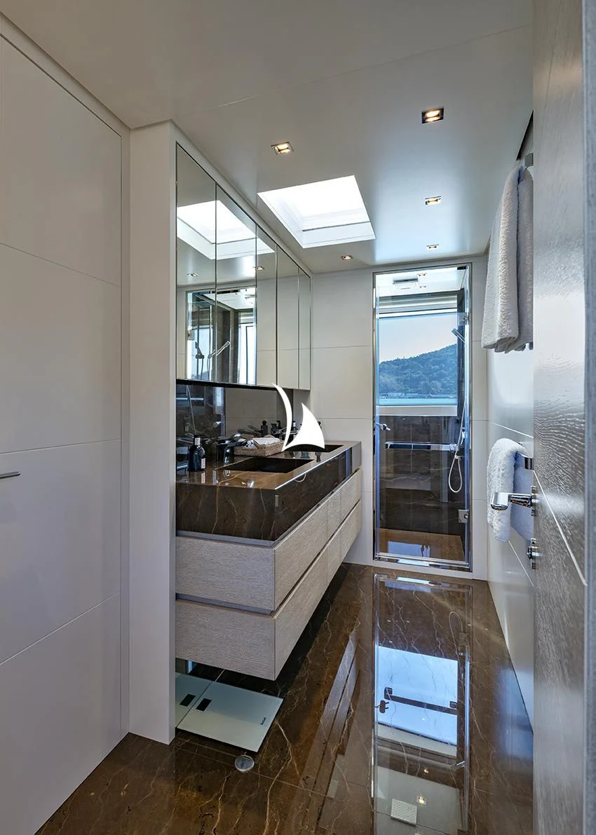 Stepping inside ANYTHING GOES V reveals an interior that exudes luxury and comfort. Five beautifully appointed cabins accommodate up to ten guests, providing serene retreats after a day filled with maritime adventures. The master stateroom stands as a haven of opulence with its plush furnishings and tasteful decor, ensuring utmost privacy and tranquility for its occupants. The additional staterooms are equally enchanting, each echoing the yacht’s overall aesthetic theme while offering cozy accommodations.