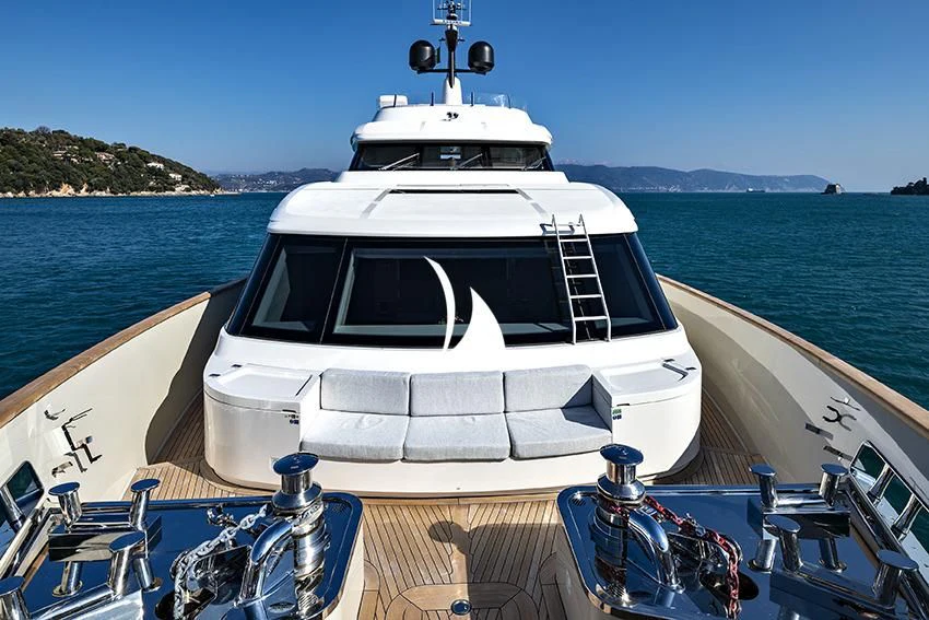 Gently slicing through the azure waters, ANYTHING GOES V is an embodiment of elegance and precision. Constructed by the renowned shipbuilder Sanlorenzo in 2018, this motor yacht is a stunning example of the Sanlorenzo SD 112 model. With her semi-displacement hull made from high-quality GRP, she stretches to an impressive length of 111 feet (34.1 meters), boasting a generous beam of 25 feet (7.66 meters). Her low draft capability allows her to navigate shallow waters with ease while maintaining an exceptional cruising speed of 11 knots and reaching up to a maximum speed of 17 knots.