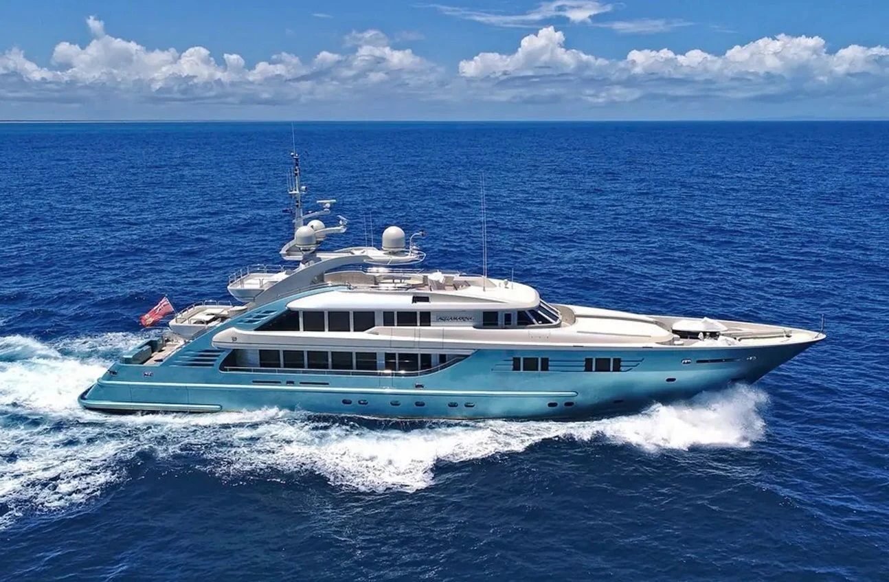 AQUAMARINA, a majestic jewel of the sea, is a custom motor yacht launched in 2007 by the renowned Italian shipyard ISA. Recently refurbished in 2022, she boasts an impressive length of 154 feet (47.5 meters) and a beam width of nearly 29 feet (8.9 meters), offering ample space for luxury living on water. Designed with a steel hull that glides through the waves at cruising speeds of up to 14 knots, AQUAMARINA is powered by an MTU engine model 12v4000 M70 that delivers an astounding power output of 2333 hp /1739 kW.
