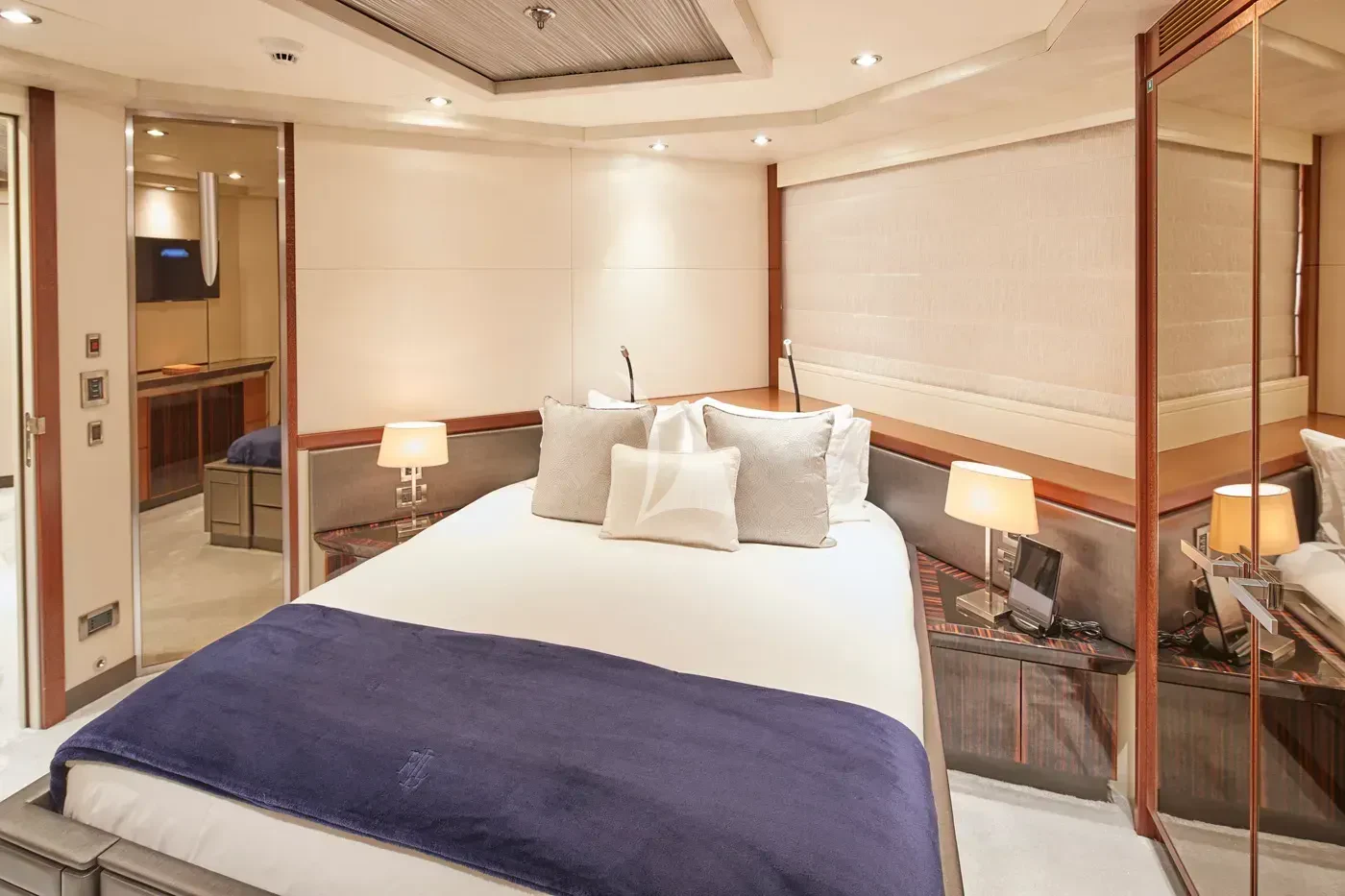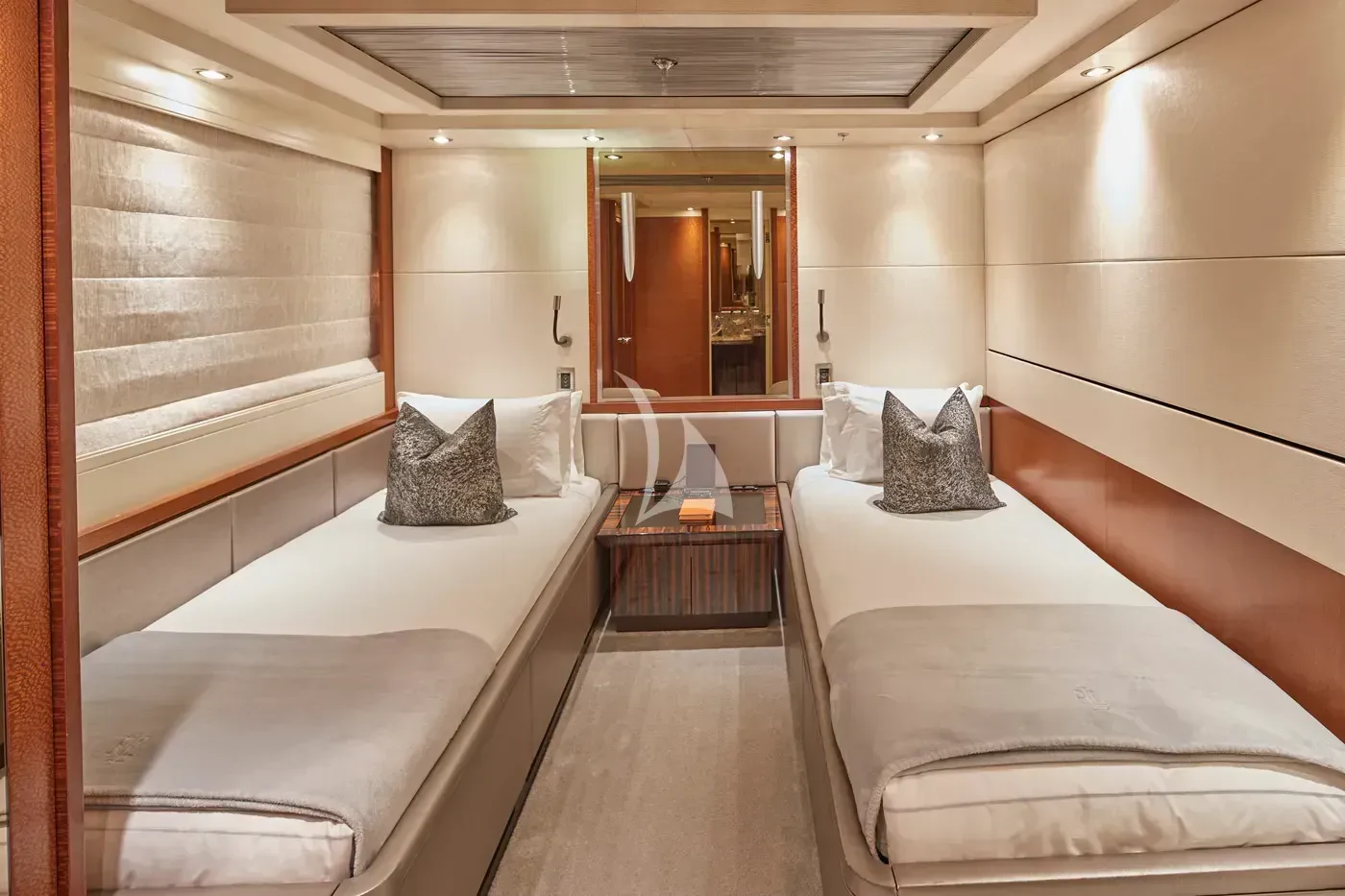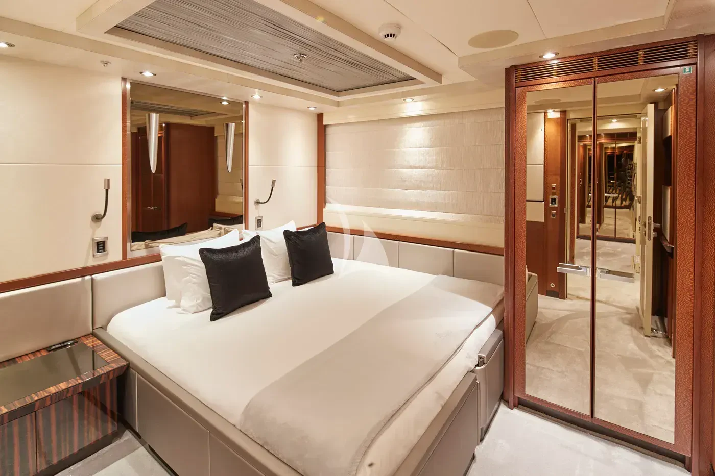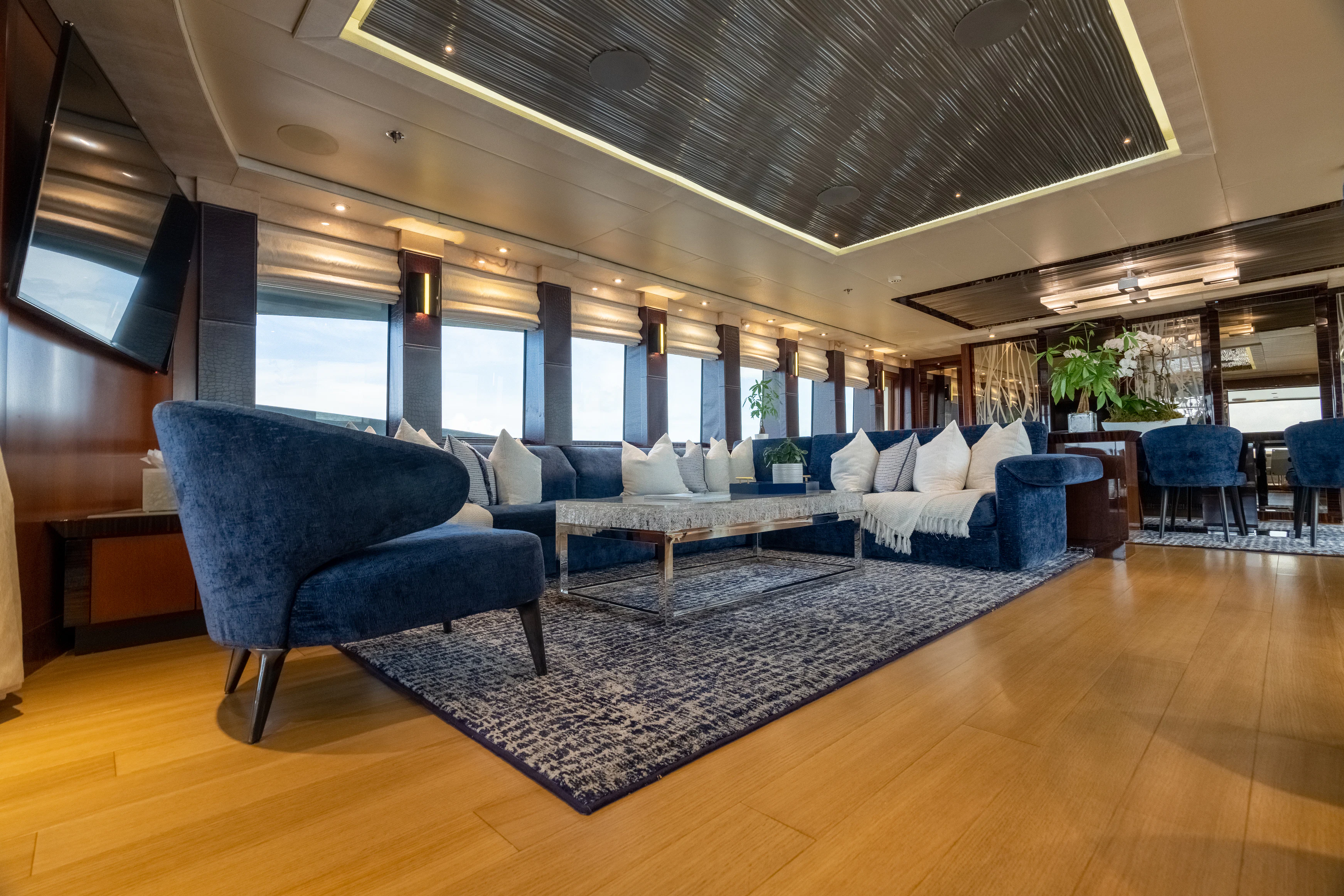 The interior of AQUANOVA exudes elegance and sophistication at every turn. It comfortably accommodates up to twelve guests across five well-appointed cabins, ensuring each guest experiences unrivaled comfort during their stay onboard. The master stateroom stands out with its plush furnishings, exquisite décor, and state-of-the-art amenities. Alongside this grand suite are additional staterooms that offer equally luxurious accommodations for guests. Each space within AQUANOVA has been thoughtfully designed to create a harmonious blend between aesthetics and functionality.