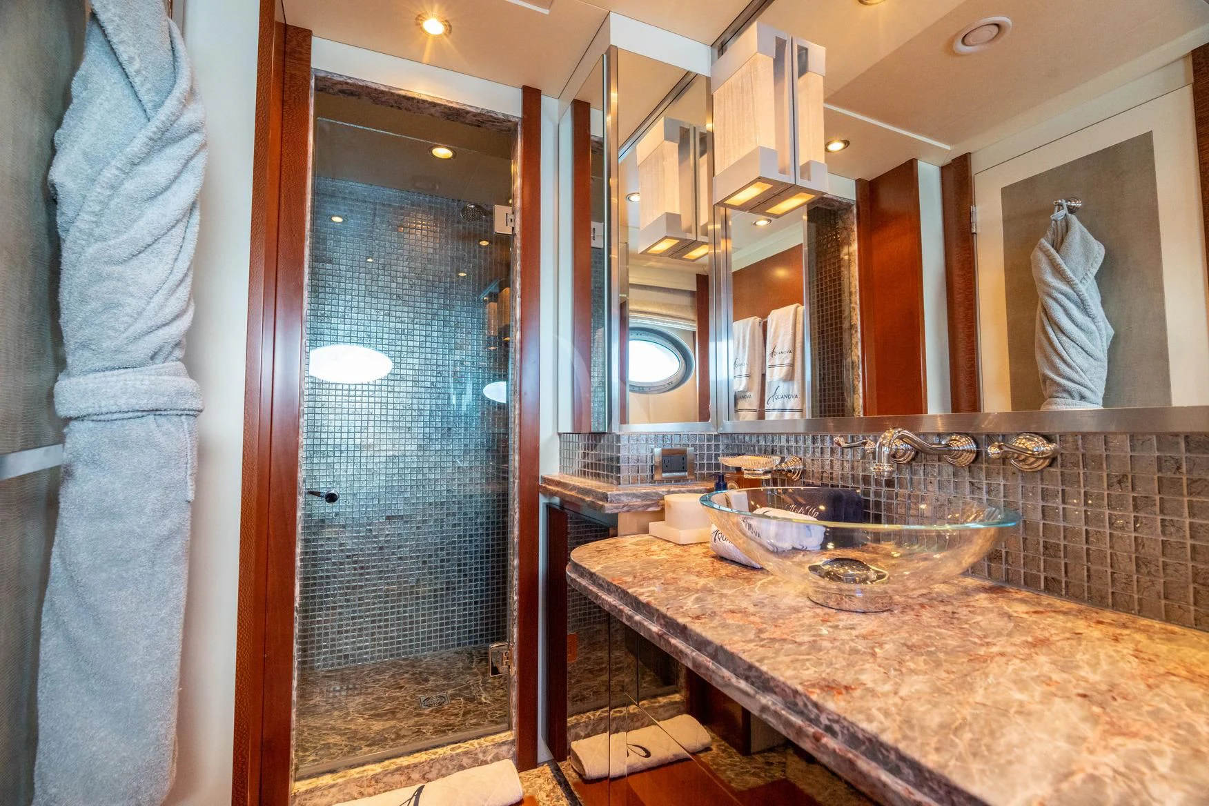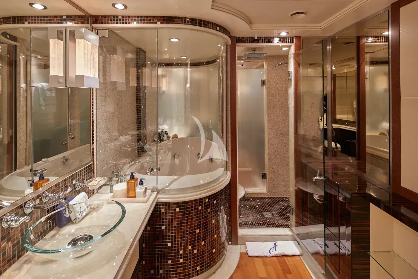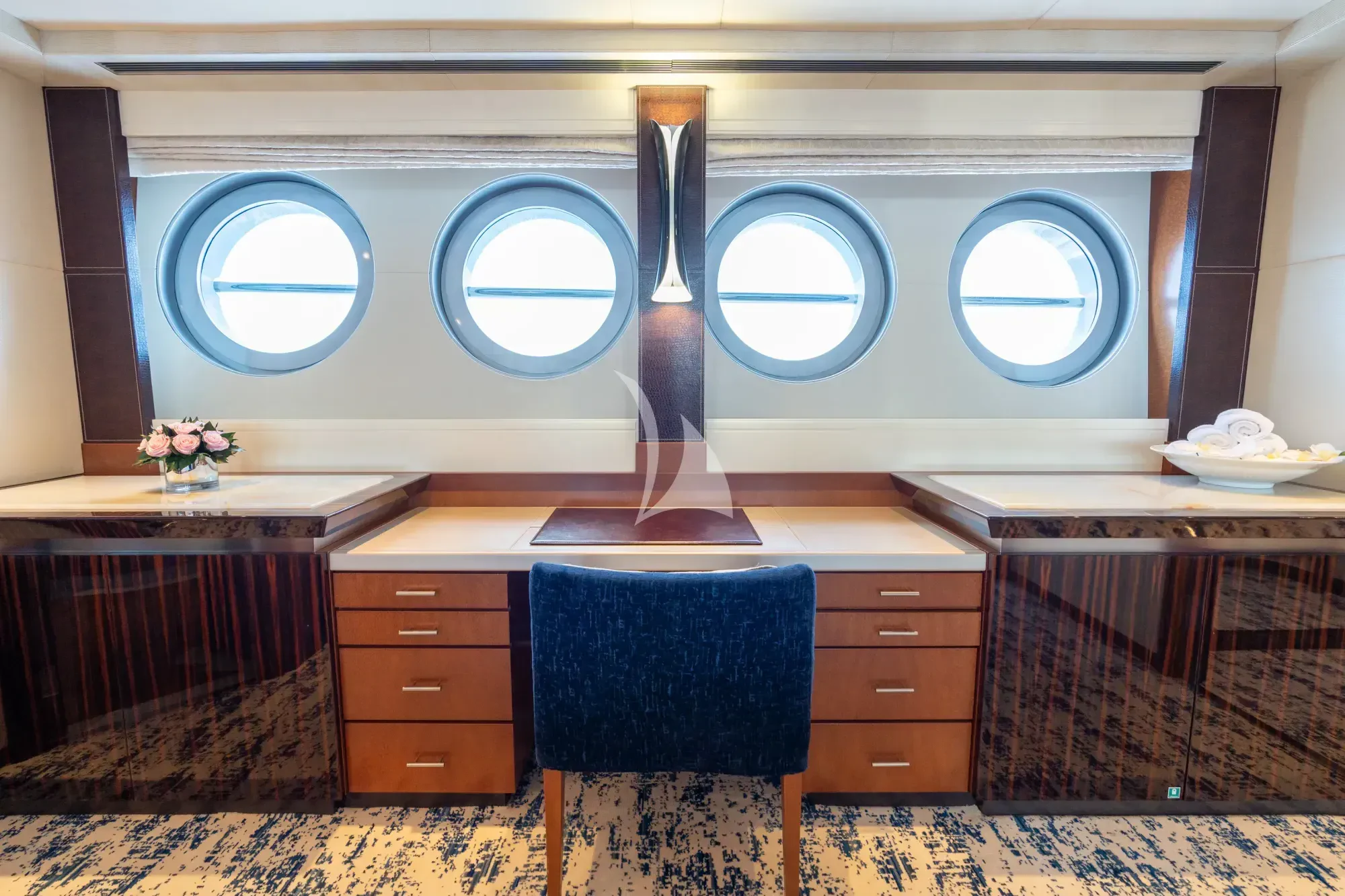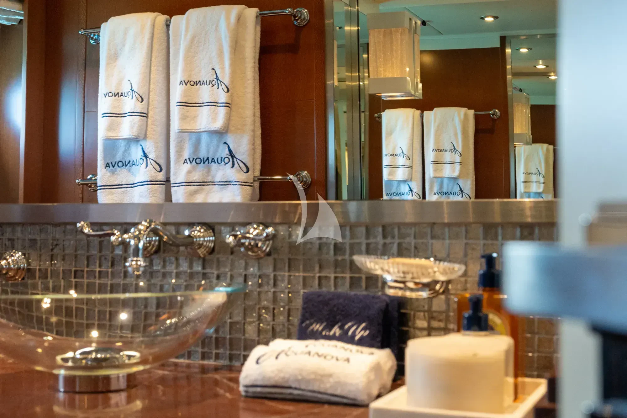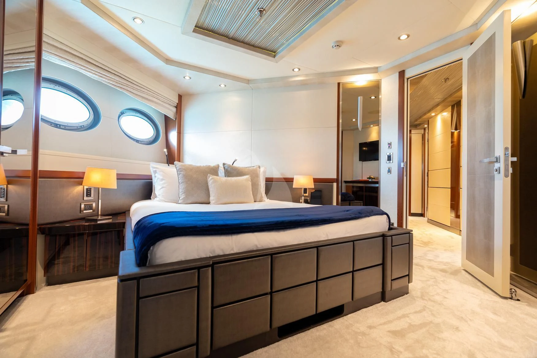 The interior of AQUANOVA exudes elegance and sophistication at every turn. It comfortably accommodates up to twelve guests across five well-appointed cabins, ensuring each guest experiences unrivaled comfort during their stay onboard. The master stateroom stands out with its plush furnishings, exquisite décor, and state-of-the-art amenities. Alongside this grand suite are additional staterooms that offer equally luxurious accommodations for guests. Each space within AQUANOVA has been thoughtfully designed to create a harmonious blend between aesthetics and functionality.