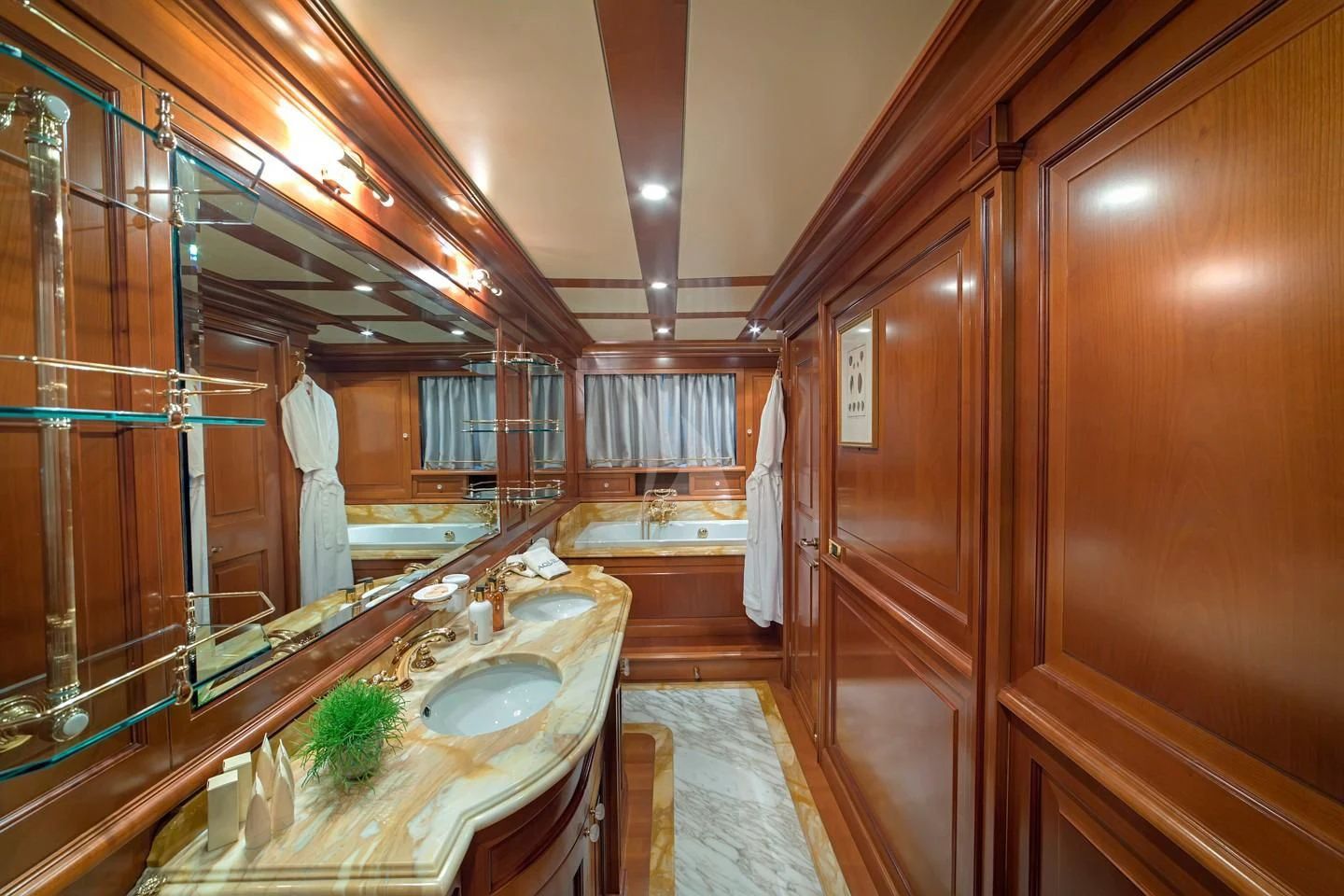 Step inside AQUILA and you are welcomed into a world where opulence meets comfort. The interior style perfectly balances classic elegance with contemporary chic, creating an ambiance that is both inviting and luxurious. The color palette is soothing yet sophisticated, featuring soft neutrals accented by rich tones for depth and warmth. Unique design elements add character to each space while maintaining harmony throughout the yacht.