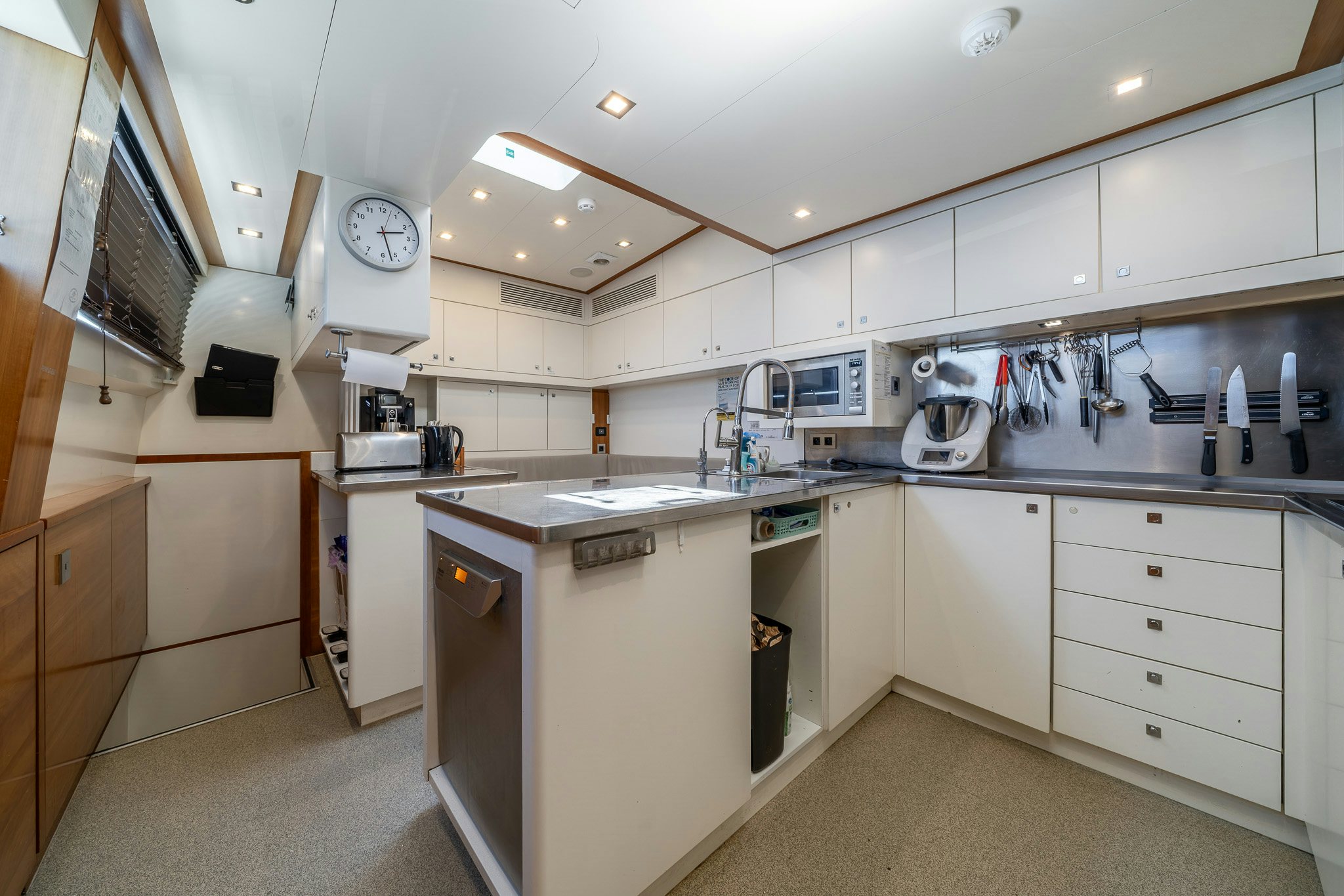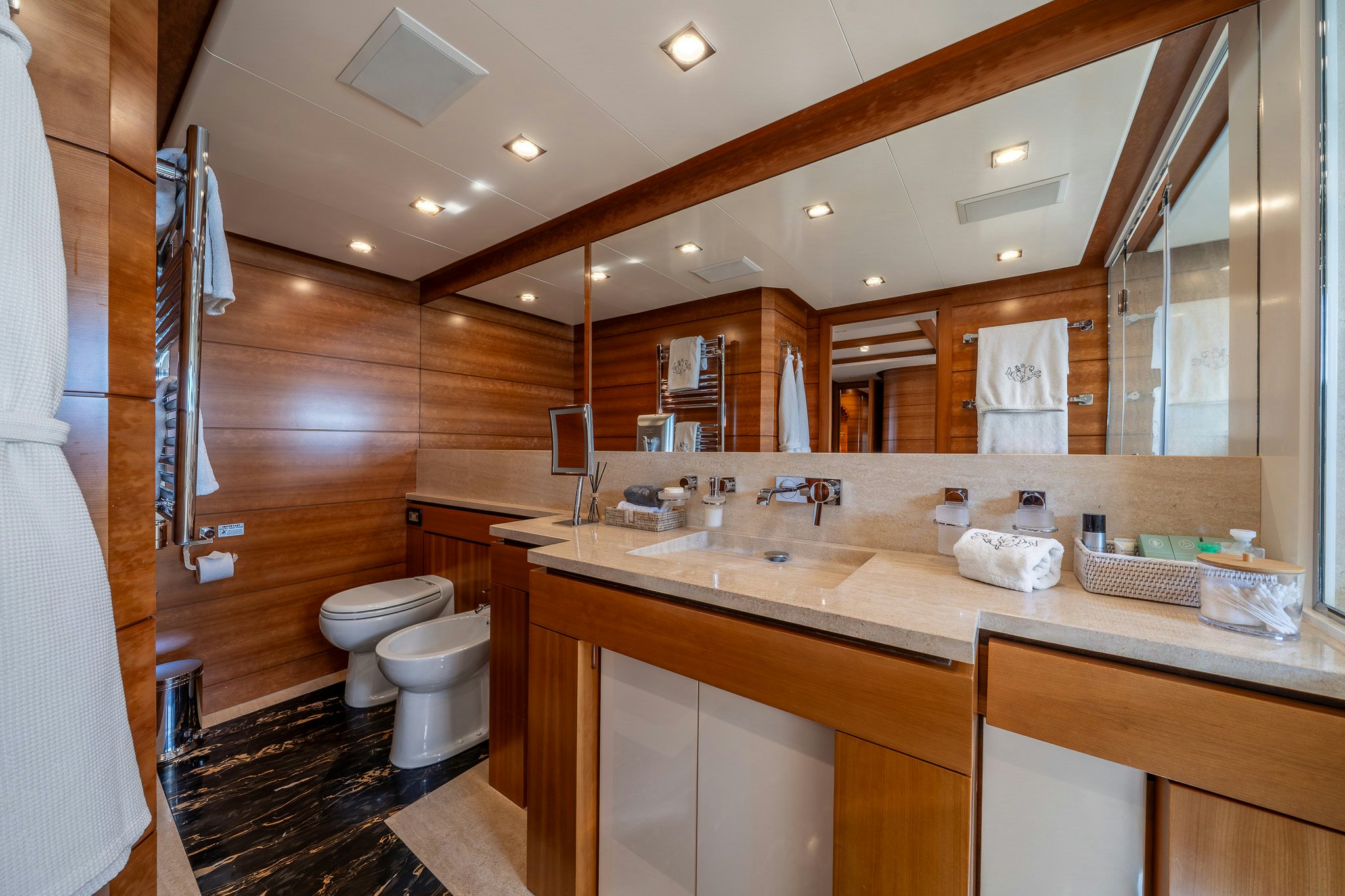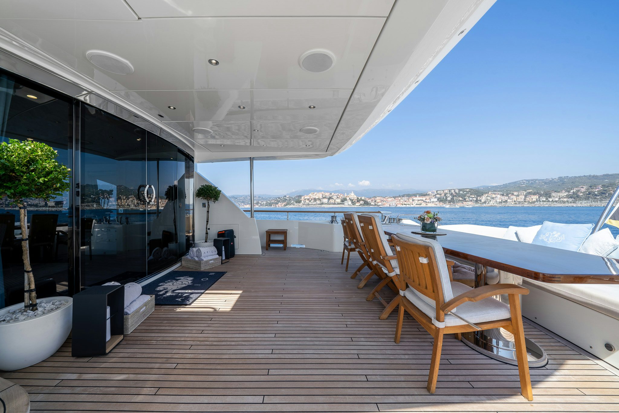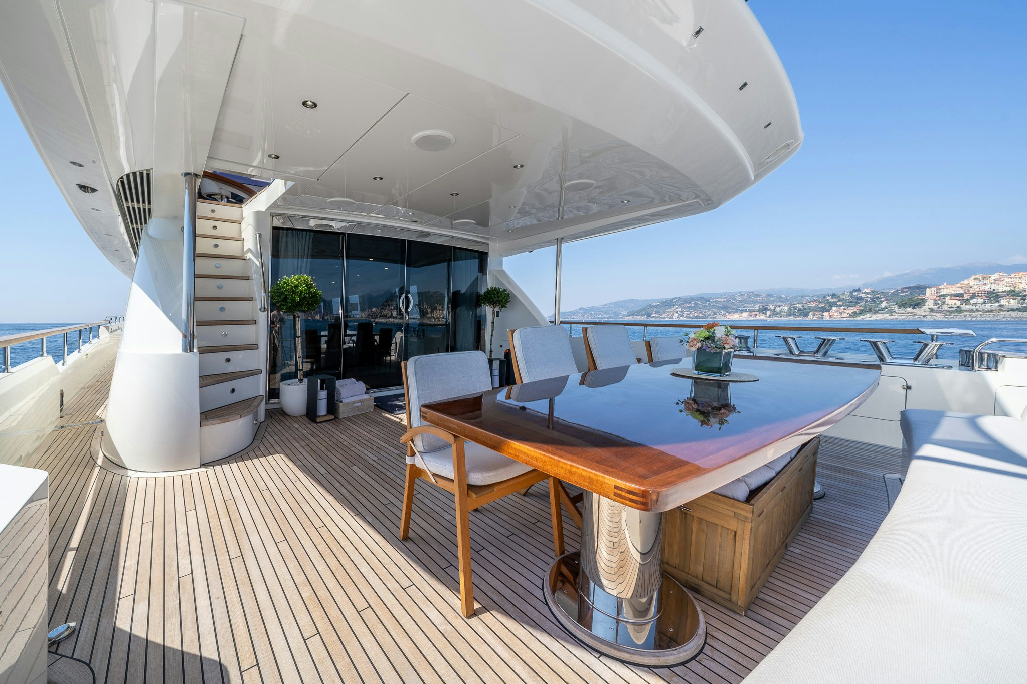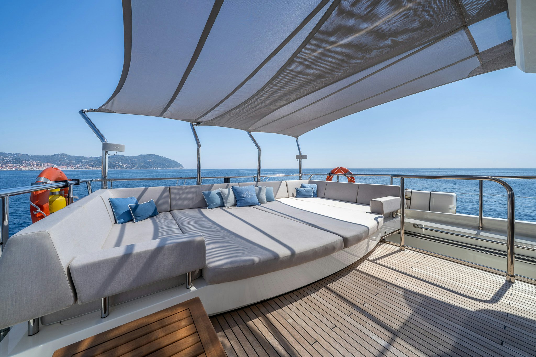 This semi-displacement performance yacht was built for versatility. She cruises at 22 knots and reaches an impressive 26 knots, allowing you to breakfast in Monaco, enjoy lunch in Corsica and dine in Sardinia, all in a single day. For those who prefer a slower pace, she performs just as comfortably on relaxed passages. Newly fitted Veem gyro stabilizers ensure a smooth ride and stability both underway and at anchor.
