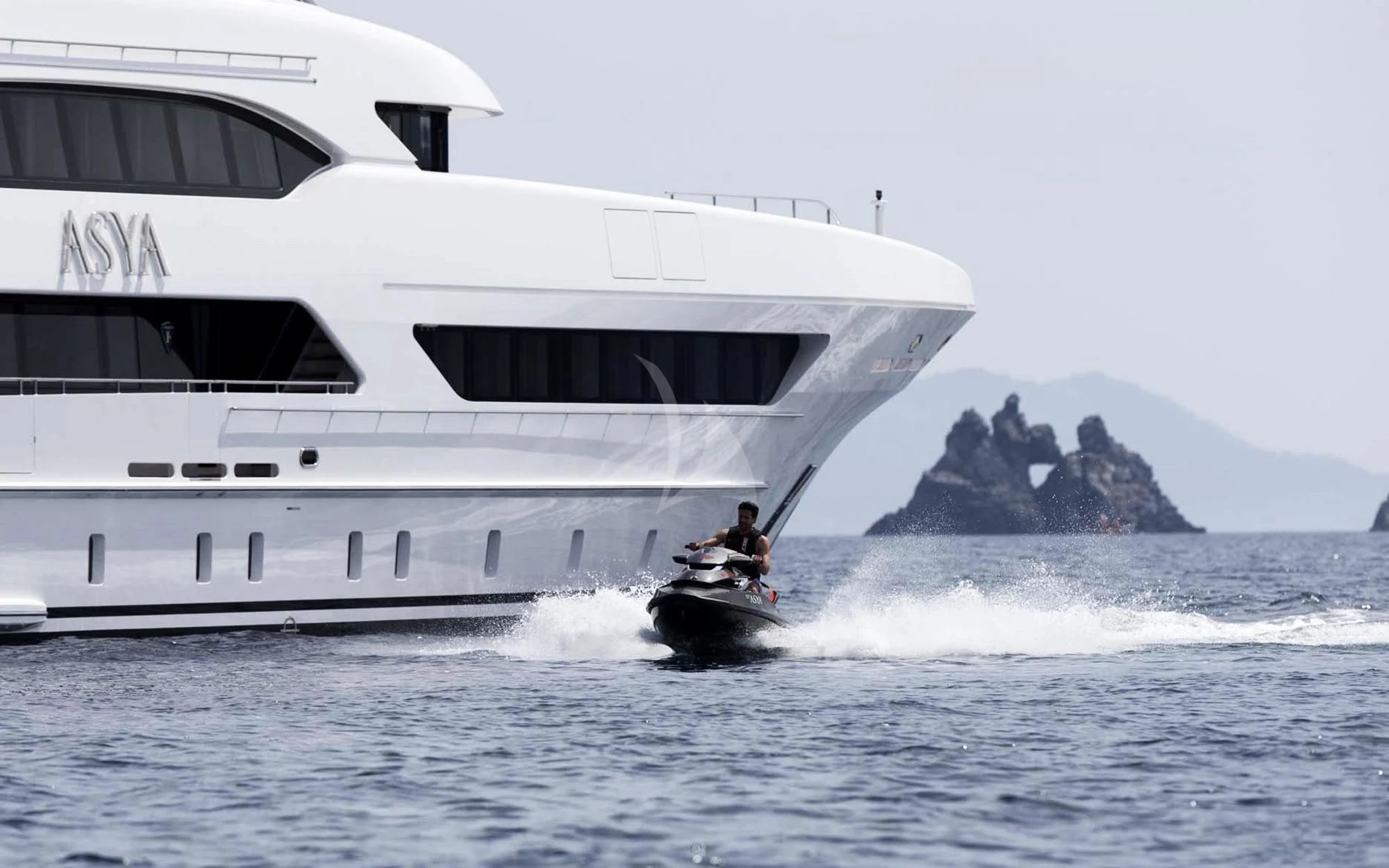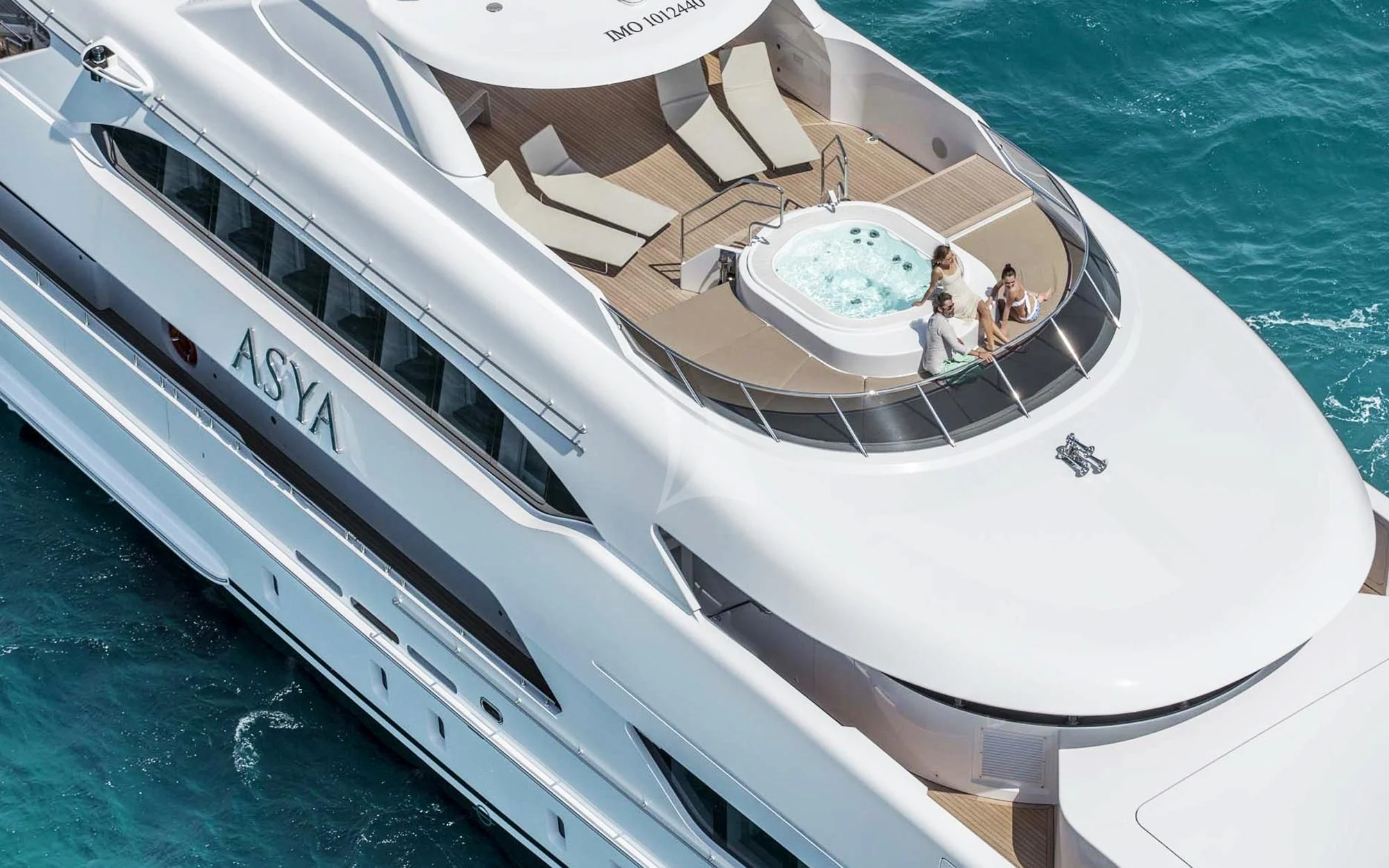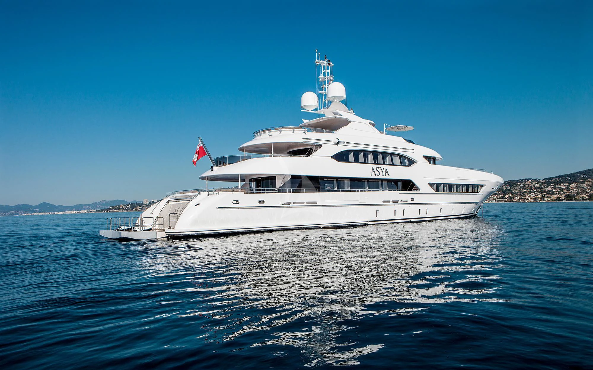 ASYA is the second in the restyled 47m class, a breed of yachts whose exterior design by the talented Frank Laupman of Omega Architects combines elegant traditional lines with contemporary flair, a marriage emphasized by the continuous glass windows and matching black paintwork on the main deck and upper decks.