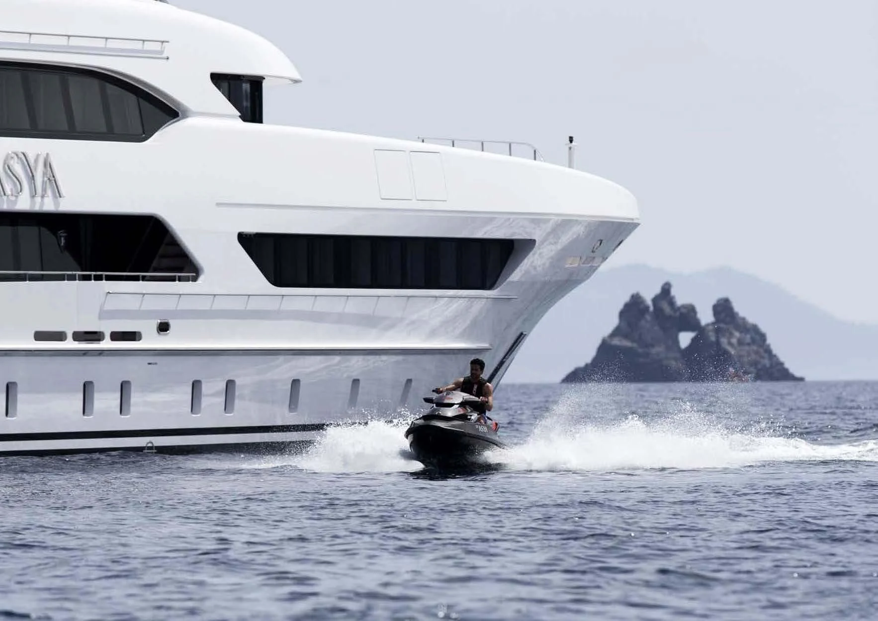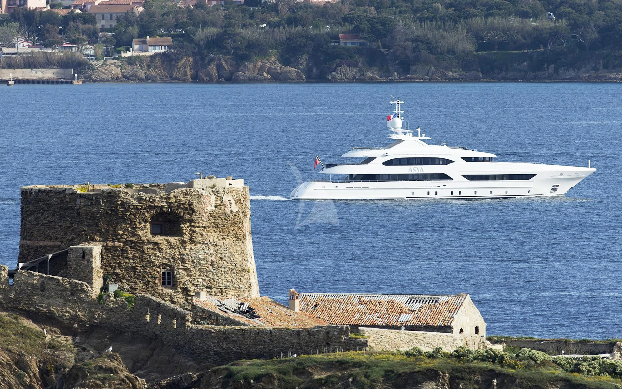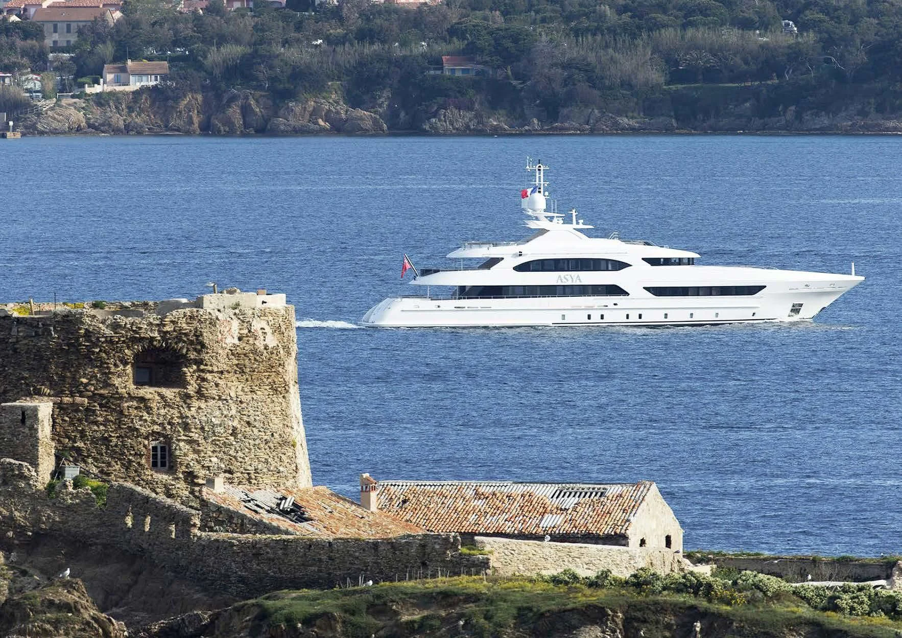 ASYA is the second in the restyled 47m class, a breed of yachts whose exterior design by the talented Frank Laupman of Omega Architects combines elegant traditional lines with contemporary flair, a marriage emphasized by the continuous glass windows and matching black paintwork on the main deck and upper decks.
