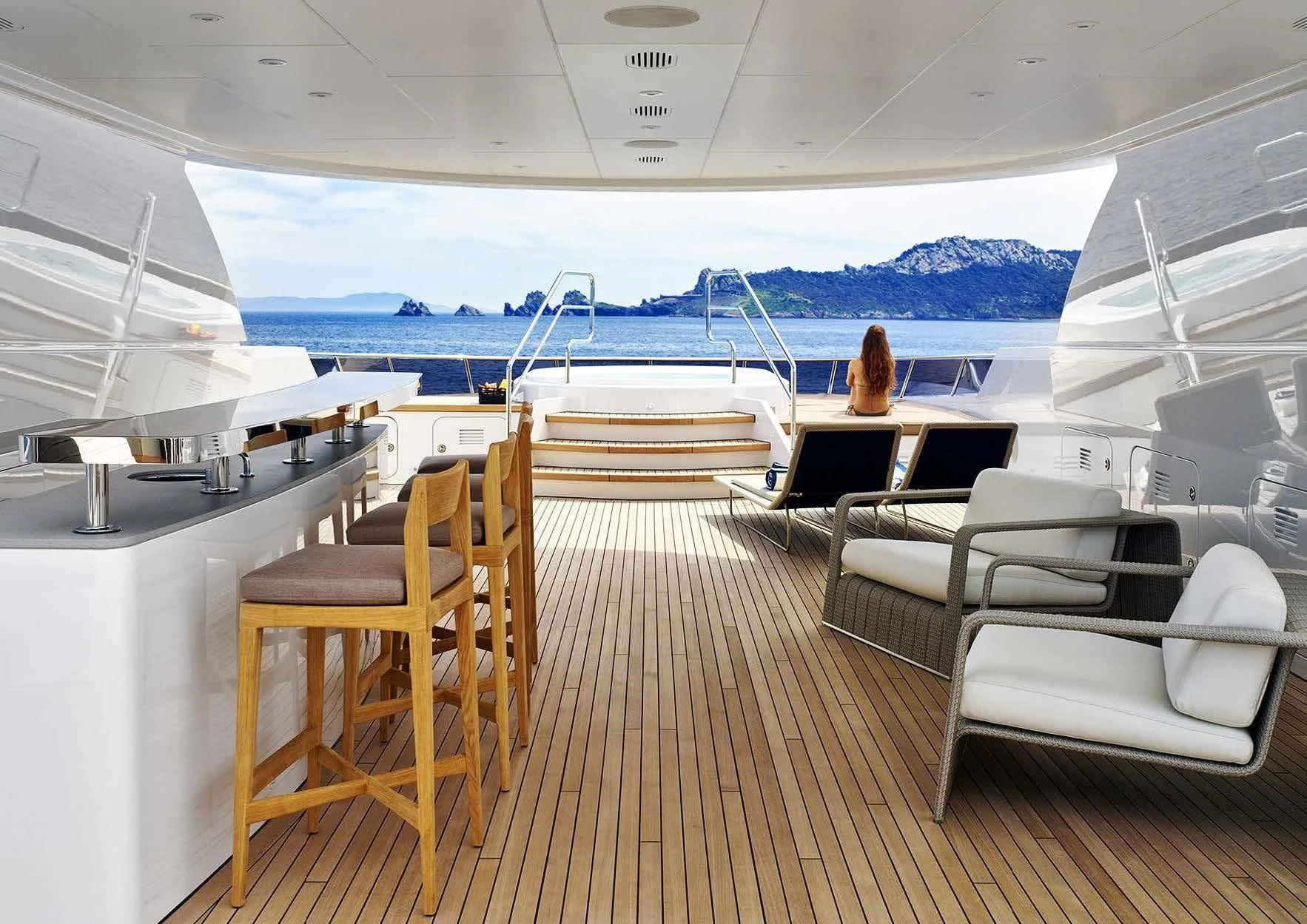 She can accommodate up to 12 guests in 5 beautifully appointed staterooms; each holding a modern and refreshing style. Apart from generous interior spaces, there are also plenty of outdoor guest areas for ideal relaxation.