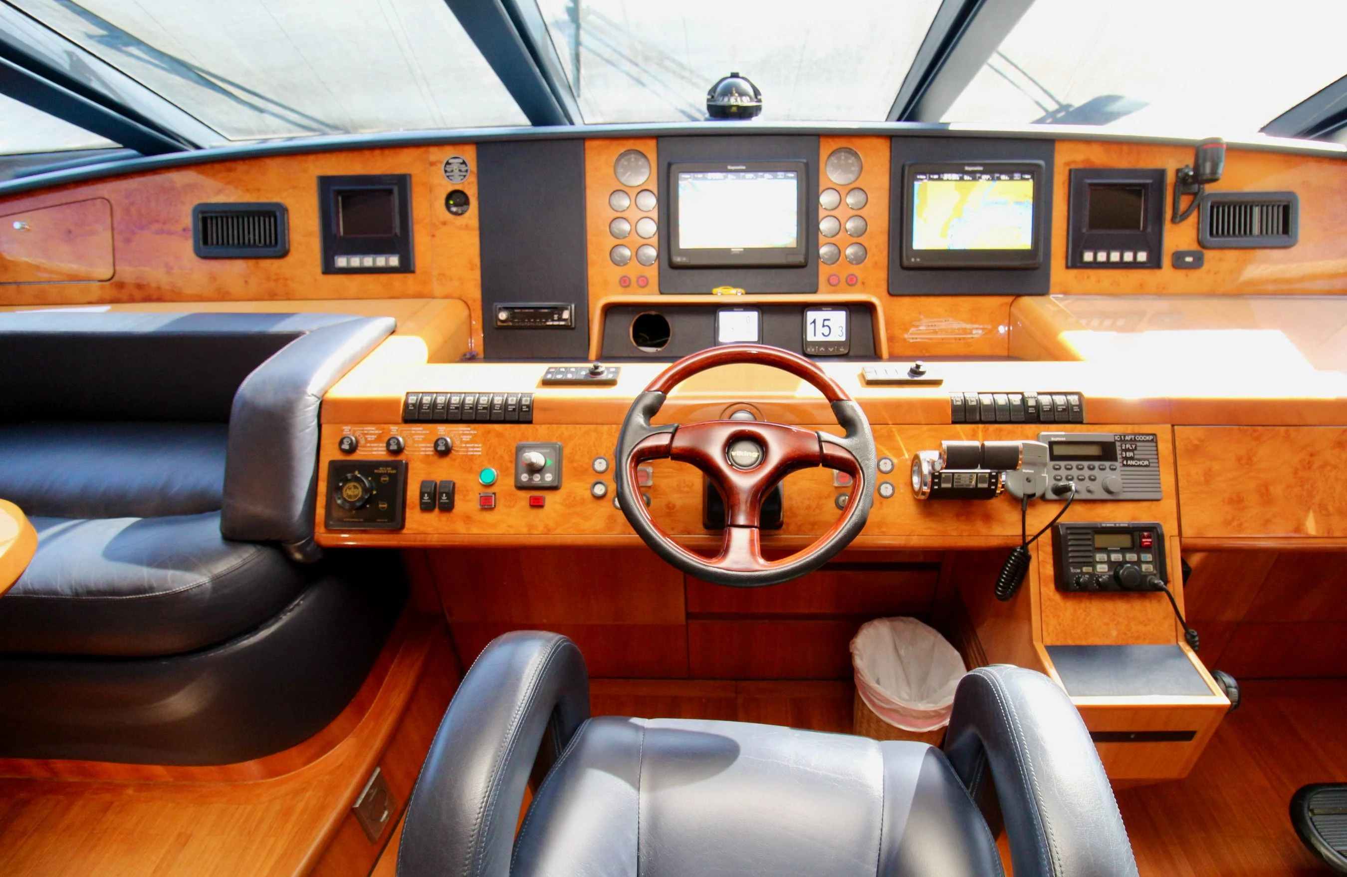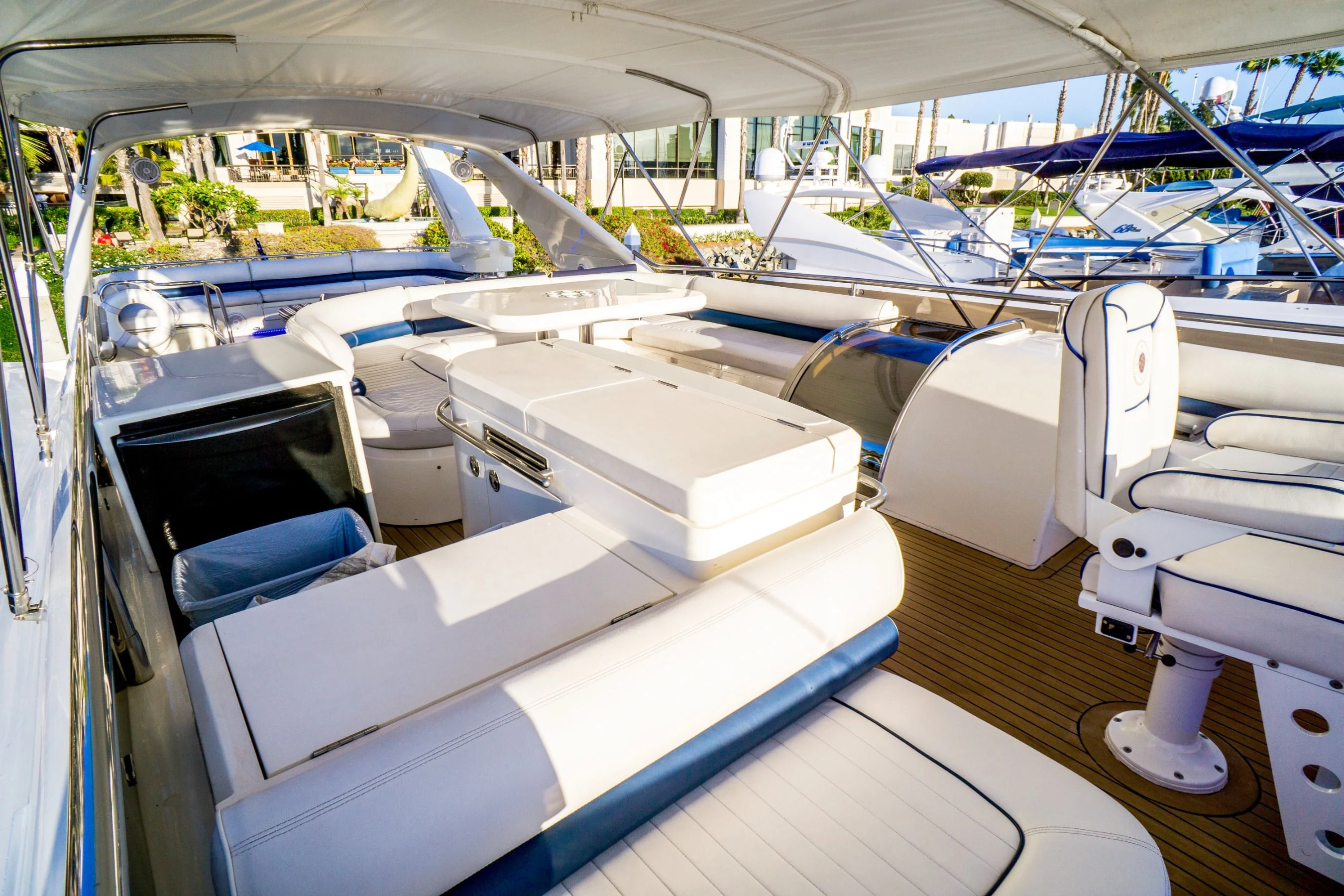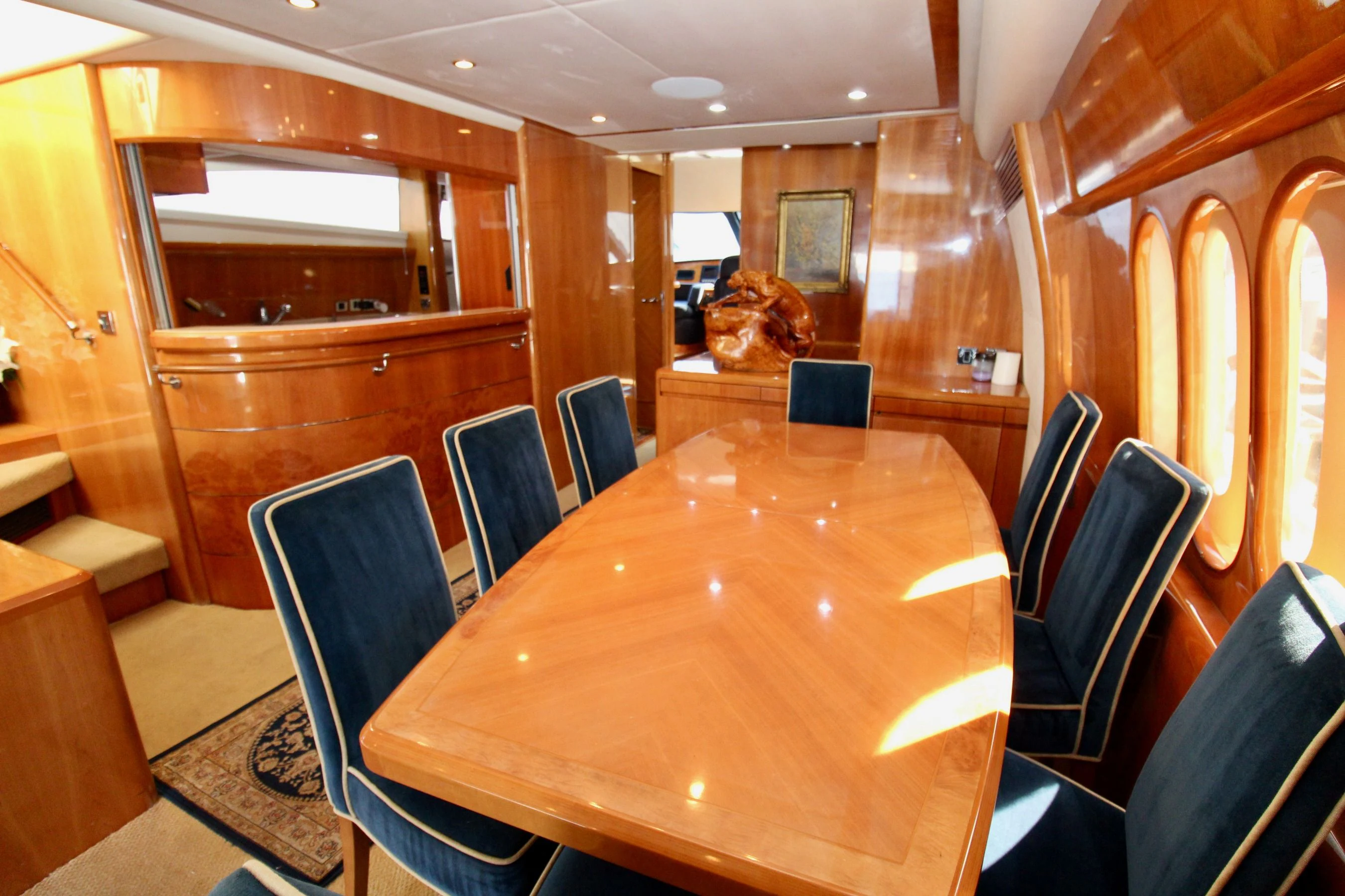 The exterior design of AVICCI is nothing short of breathtaking - her GRP hull material reflecting the shimmering azure waters she gracefully glides through. Her flybridge subcategory suggests a generous deck area that offers panoramic views of the surroundings. On this sun-drenched space, guests can unwind in plush seating areas or soak up the sun's rays on comfortable loungers. The pièce de résistance is undoubtedly the inviting Jacuzzi - an oasis of relaxation that adds an undeniable touch of luxury to your yachting experience.