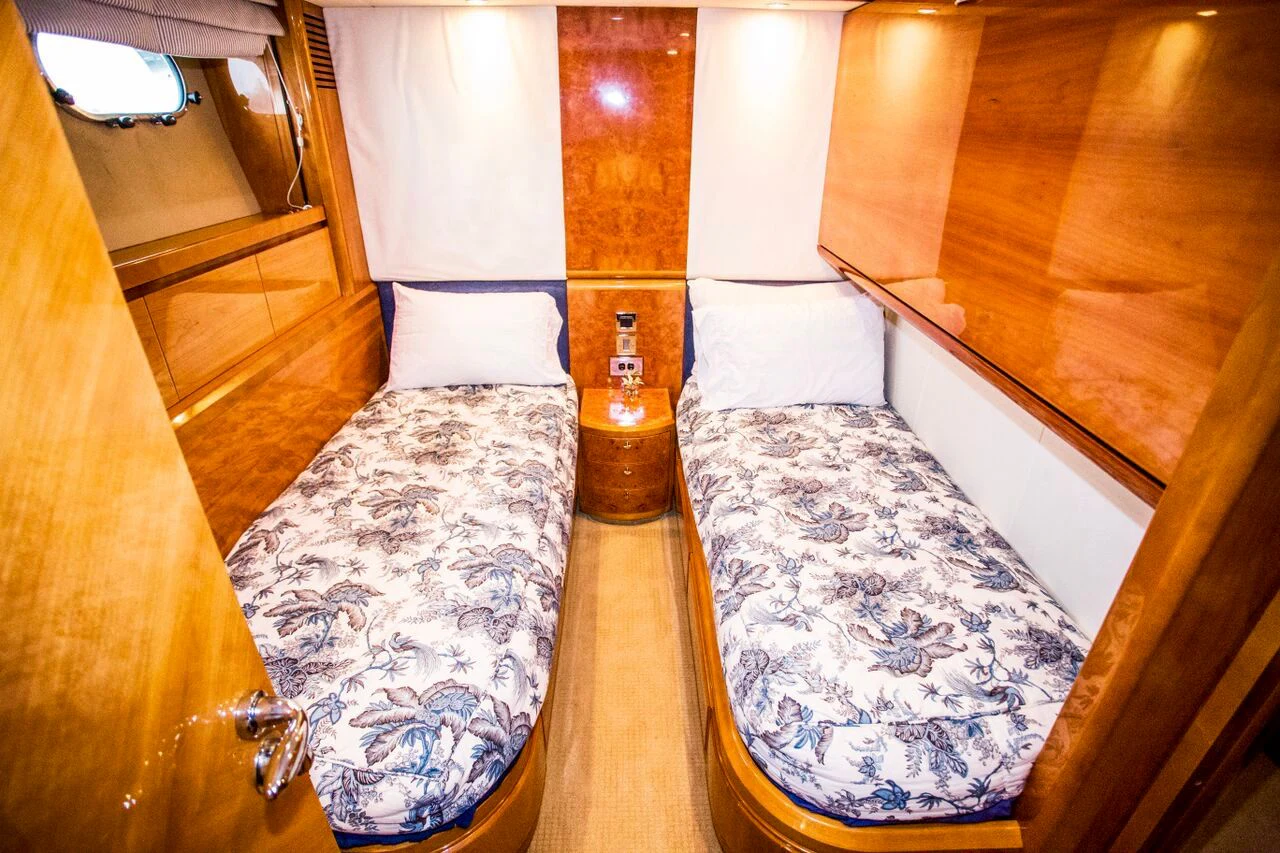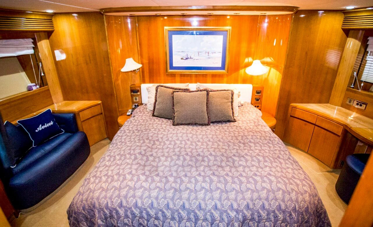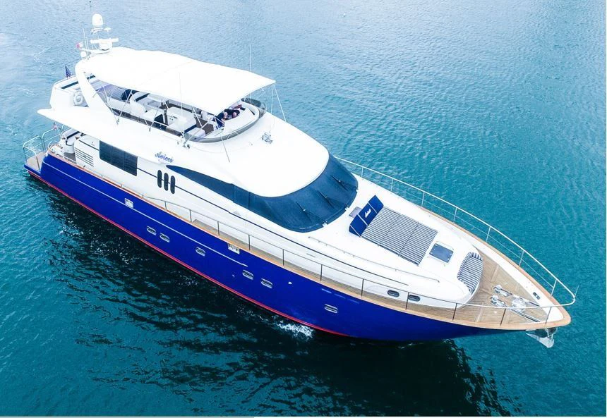 Welcome aboard the majestic AVICCI, a timeless masterpiece crafted by Viking Yachts in 2002 and meticulously refitted in 2015. This stunning motor yacht, an exquisite model of the Viking 84 series, stretches to an impressive length overall (LOA) of 84 feet or about 25.6 meters. She boasts a beam of approximately 20 feet and drafts at around three feet, offering ample space for leisurely pursuits on water.