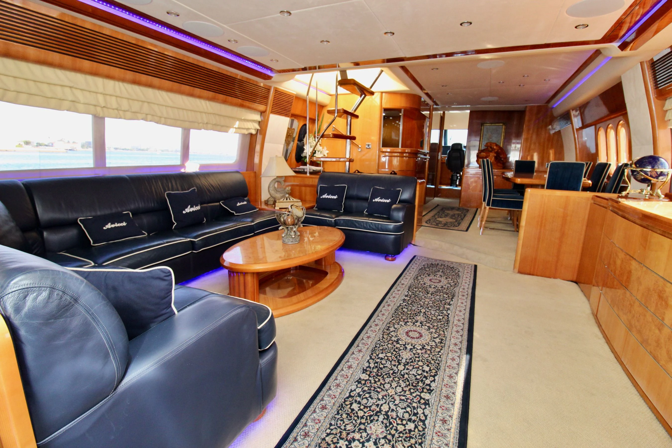 AVICCI also impresses with her practical features such as her expansive fuel capacity - holding up to approximately 2219 gallons – ensuring you have plenty enough for long-haul journeys without frequent refueling stops. Additionally, she carries about 503 gallons worth freshwater reservoirs onboard.